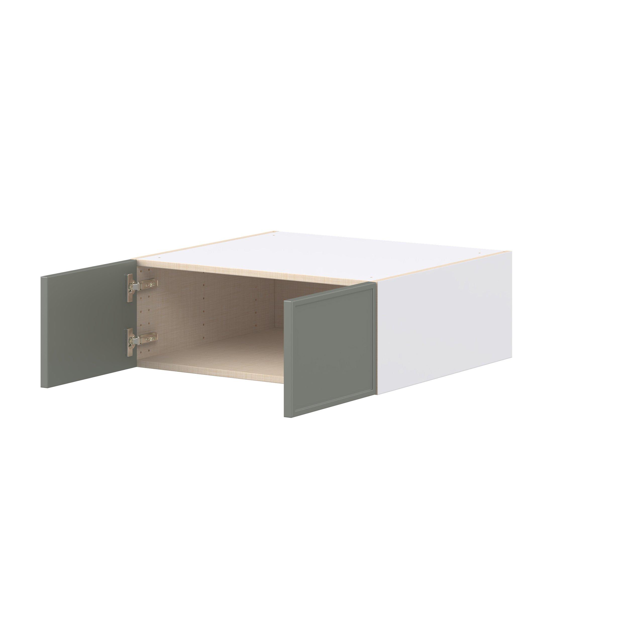 Enjoy a modern twist on a classic with Linden slim shaker cabinets. Available in premium-painted fresh washed linen and earthy moss green finishes, this collection exudes warmth and creates an inviting atmosphere Crafted from one-piece MDF Studio Design Collection Linden 27 in. Painted Moss Green Bridge Wall Cabinet is designed to resist hairline cracks while the easy-to-clean finish stands up to stains and moisture. Featuring 5-piece doors and dovetail drawer joints, these cabinets offer durability and elegance. This collection combines style with everyday storage solutions.