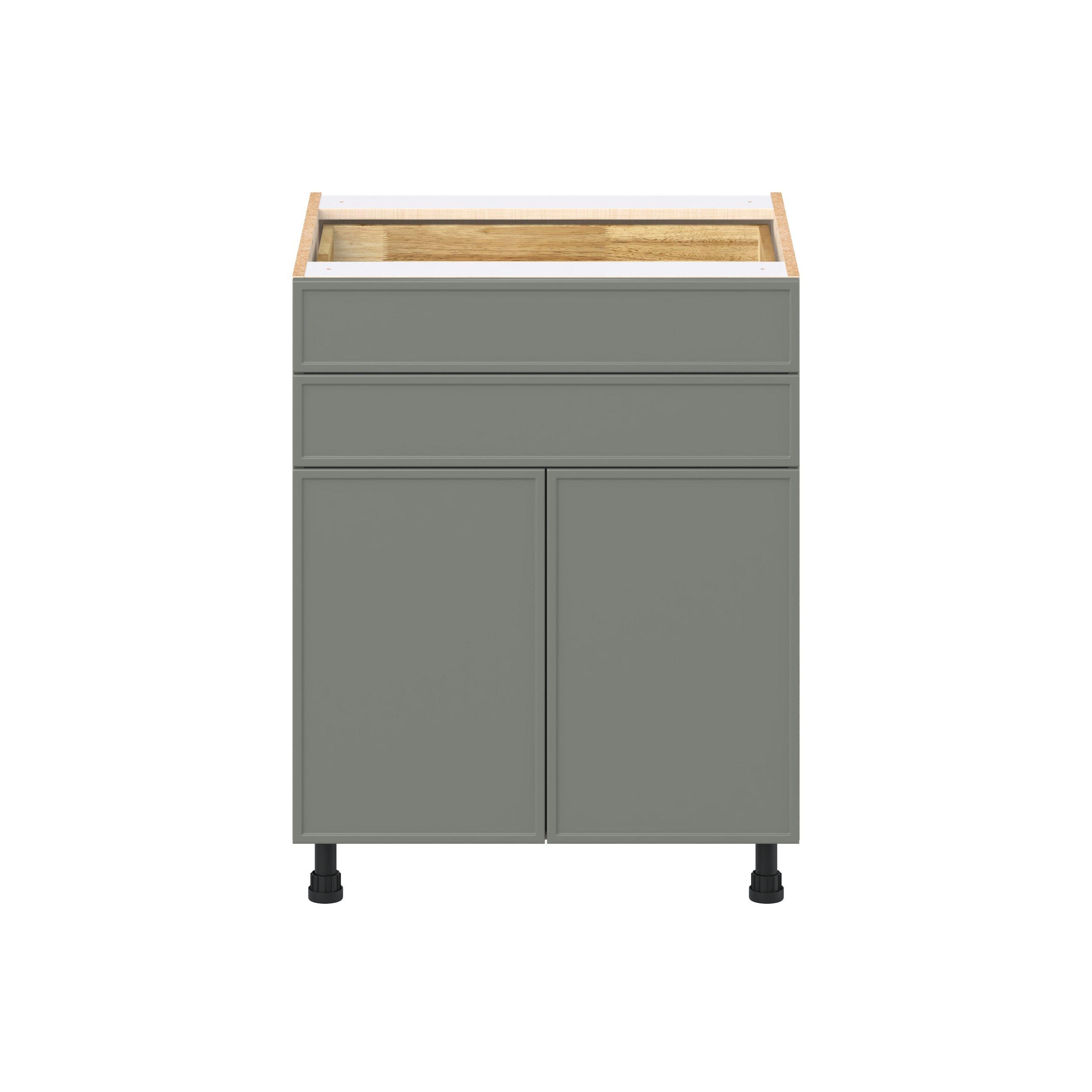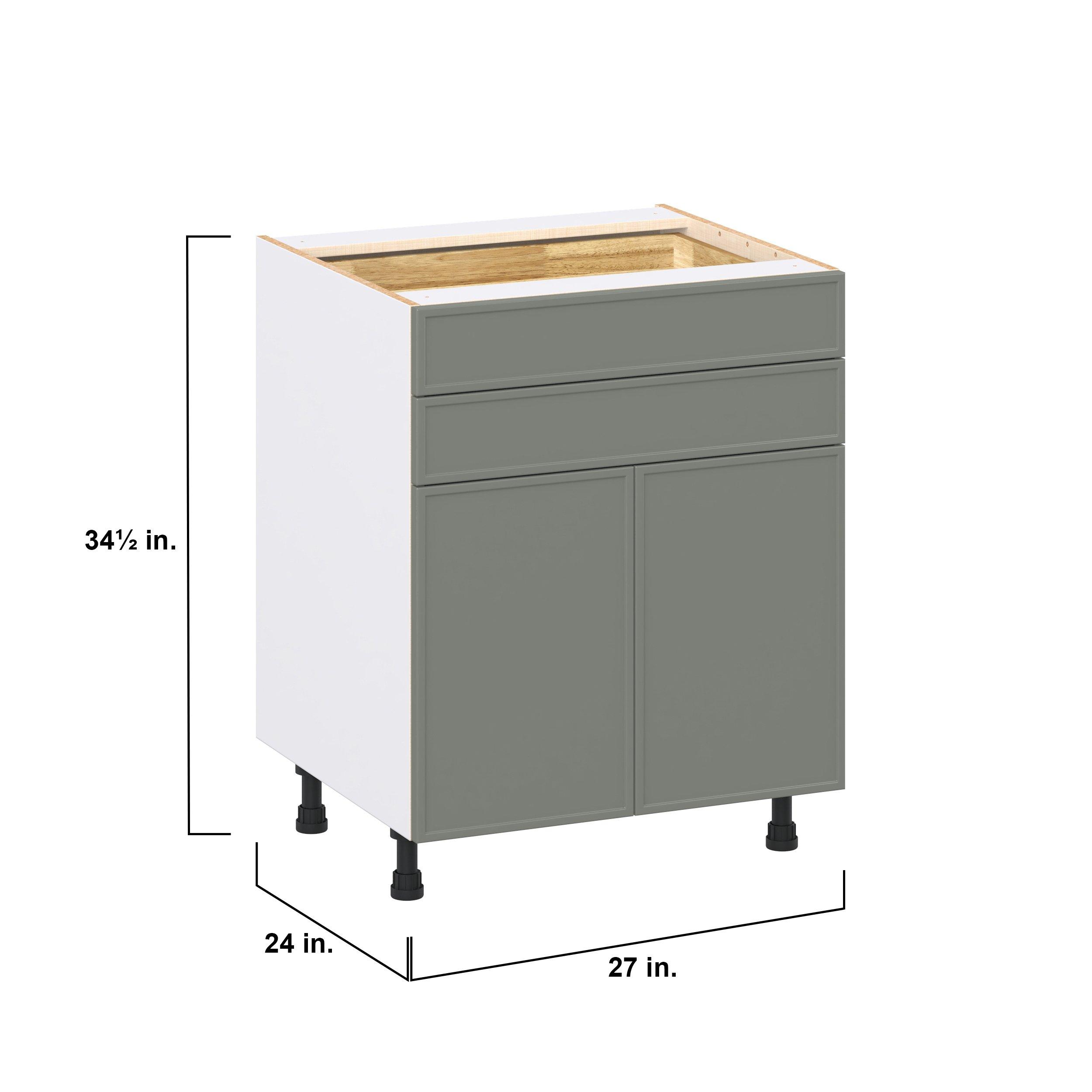 Enjoy a modern twist on a classic with Linden slim shaker cabinets. Available in premium-painted fresh washed linen and earthy moss green finishes, this collection exudes warmth and creates an inviting atmosphere Crafted from one-piece MDF Studio Design Collection Linden 27 in. Painted Moss Green Door and Drawer Base Cabinet is designed to resist hairline cracks while the easy-to-clean finish stands up to stains and moisture. Featuring 5-piece doors and dovetail drawer joints, these cabinets offer durability and elegance. This collection combines style with everyday storage solutions.