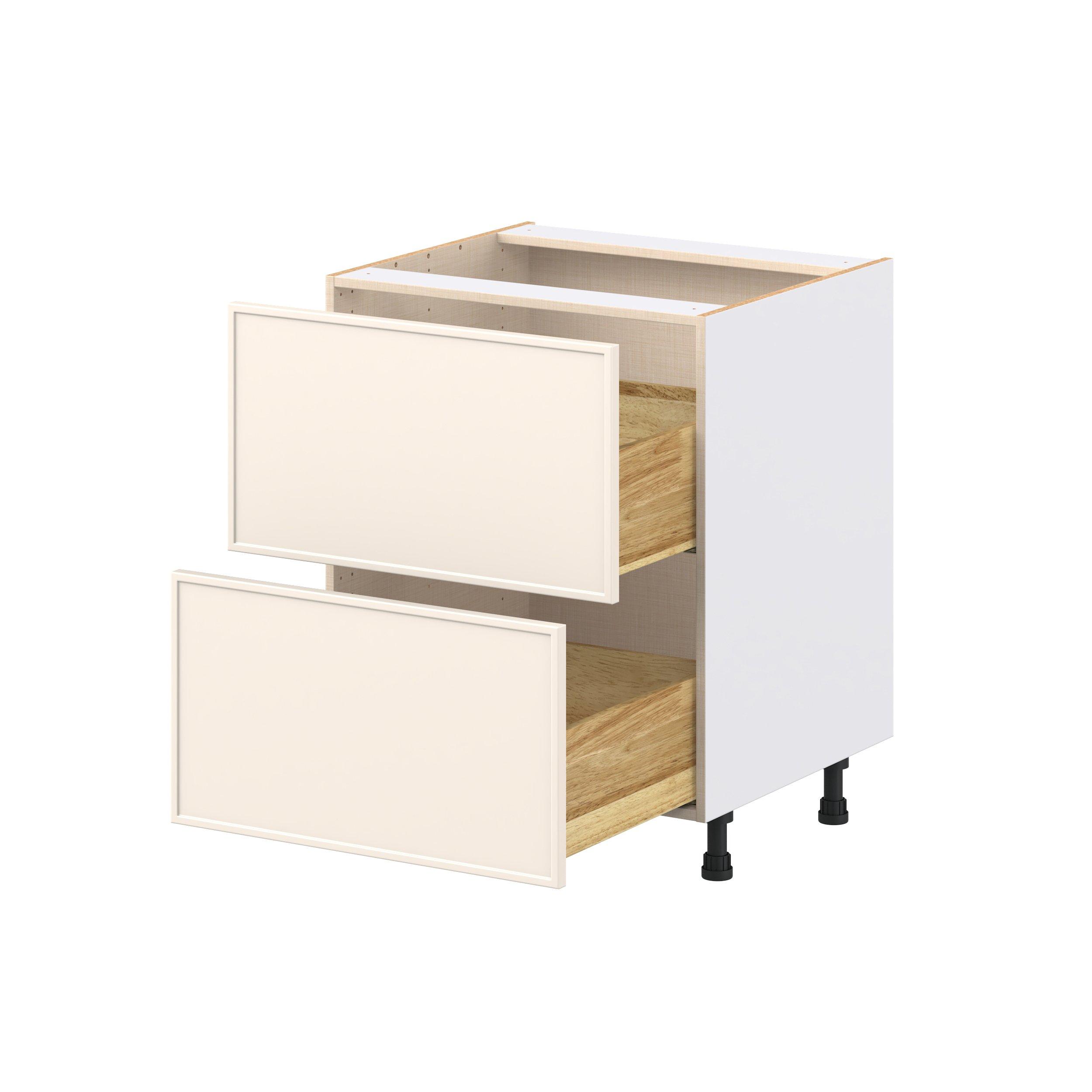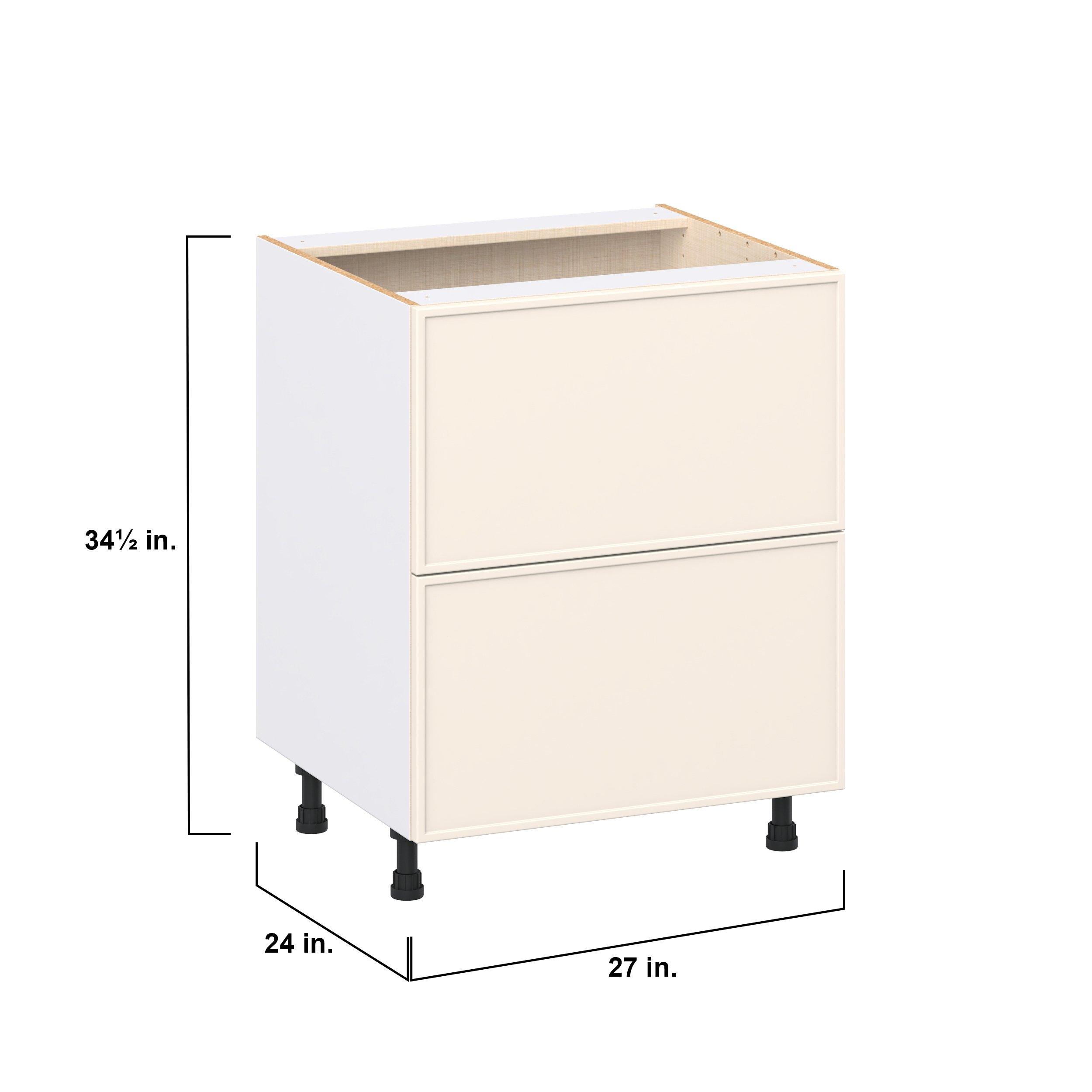Enjoy a modern twist on a classic with Linden slim shaker cabinets. Available in premium-painted fresh washed linen and earthy moss green finishes, this collection exudes warmth and creates an inviting atmosphere Crafted from one-piece MDF Studio Design Collection Linden 27 in. Painted Washed Linen Drawer Base Cabinet is designed to resist hairline cracks while the easy-to-clean finish stands up to stains and moisture. Featuring 5-piece doors and dovetail drawer joints, these cabinets offer durability and elegance. This collection combines style with everyday storage solutions.