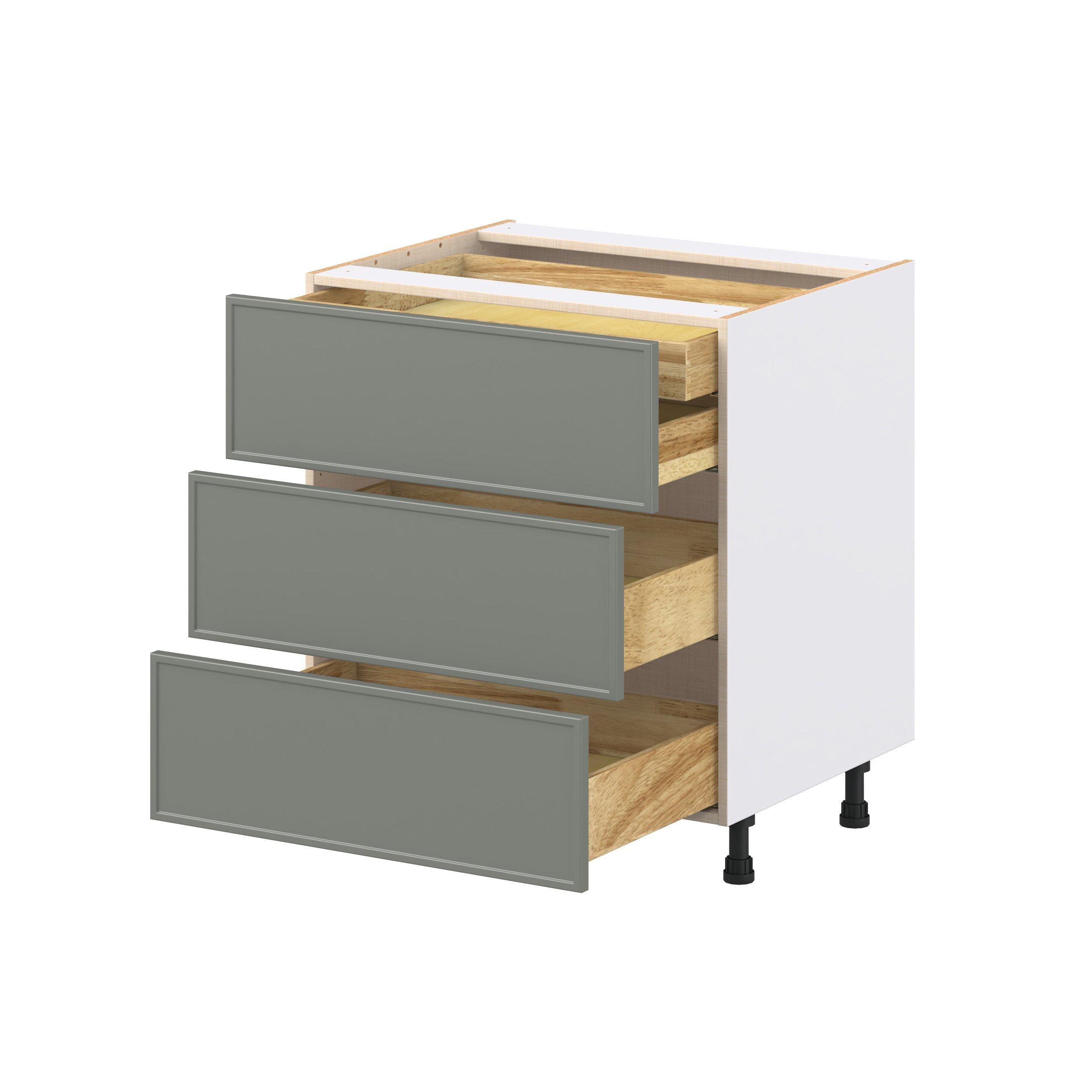 Enjoy a modern twist on a classic with Linden slim shaker cabinets. Available in premium-painted fresh washed linen and earthy moss green finishes, this collection exudes warmth and creates an inviting atmosphere Crafted from one-piece MDF Studio Design Collection Linden 30 in. Painted Moss Green Base Cabinet with Inner Pull-Out Drawer is designed to resist hairline cracks while the easy-to-clean finish stands up to stains and moisture. Featuring 5-piece doors and dovetail drawer joints, these cabinets offer durability and elegance. This collection combines style with everyday storage solutions.