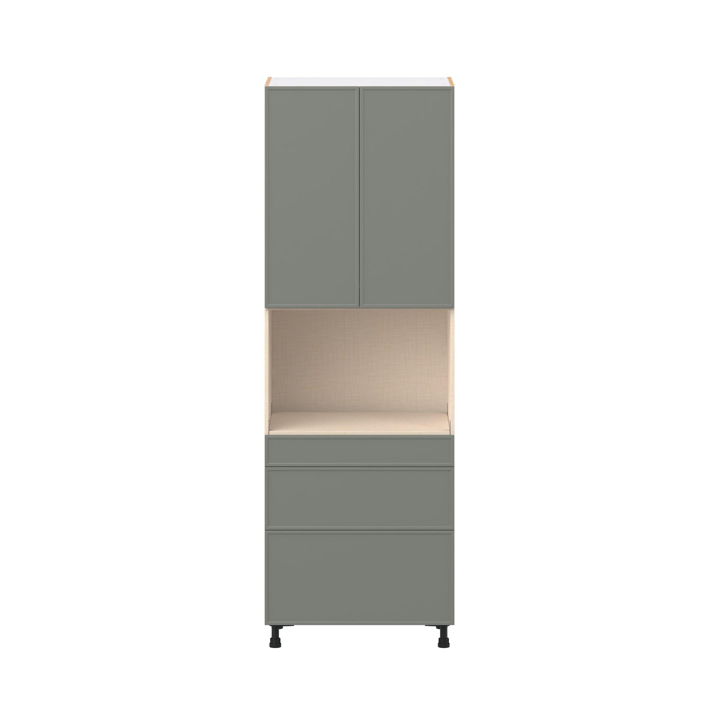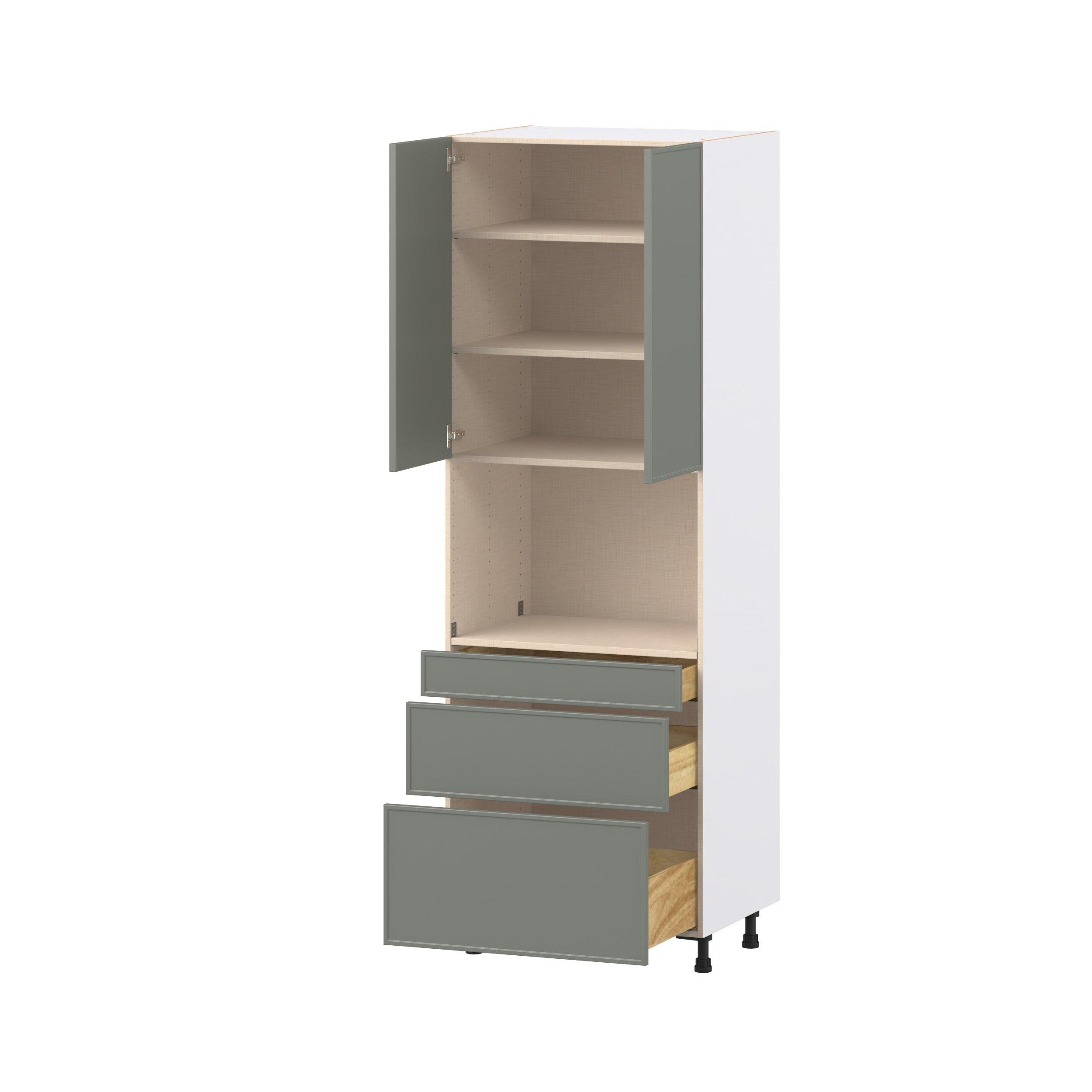 Enjoy a modern twist on a classic with Linden slim shaker cabinets. Available in premium-painted fresh washed linen and earthy moss green finishes, this collection exudes warmth and creates an inviting atmosphere Crafted from one-piece MDF Studio Design Collection Linden 30 in. Painted Moss Green Door and Drawer Microwave Pantry Cabinet is designed to resist hairline cracks while the easy-to-clean finish stands up to stains and moisture. Featuring 5-piece doors and dovetail drawer joints, these cabinets offer durability and elegance. This collection combines style with everyday storage solutions.