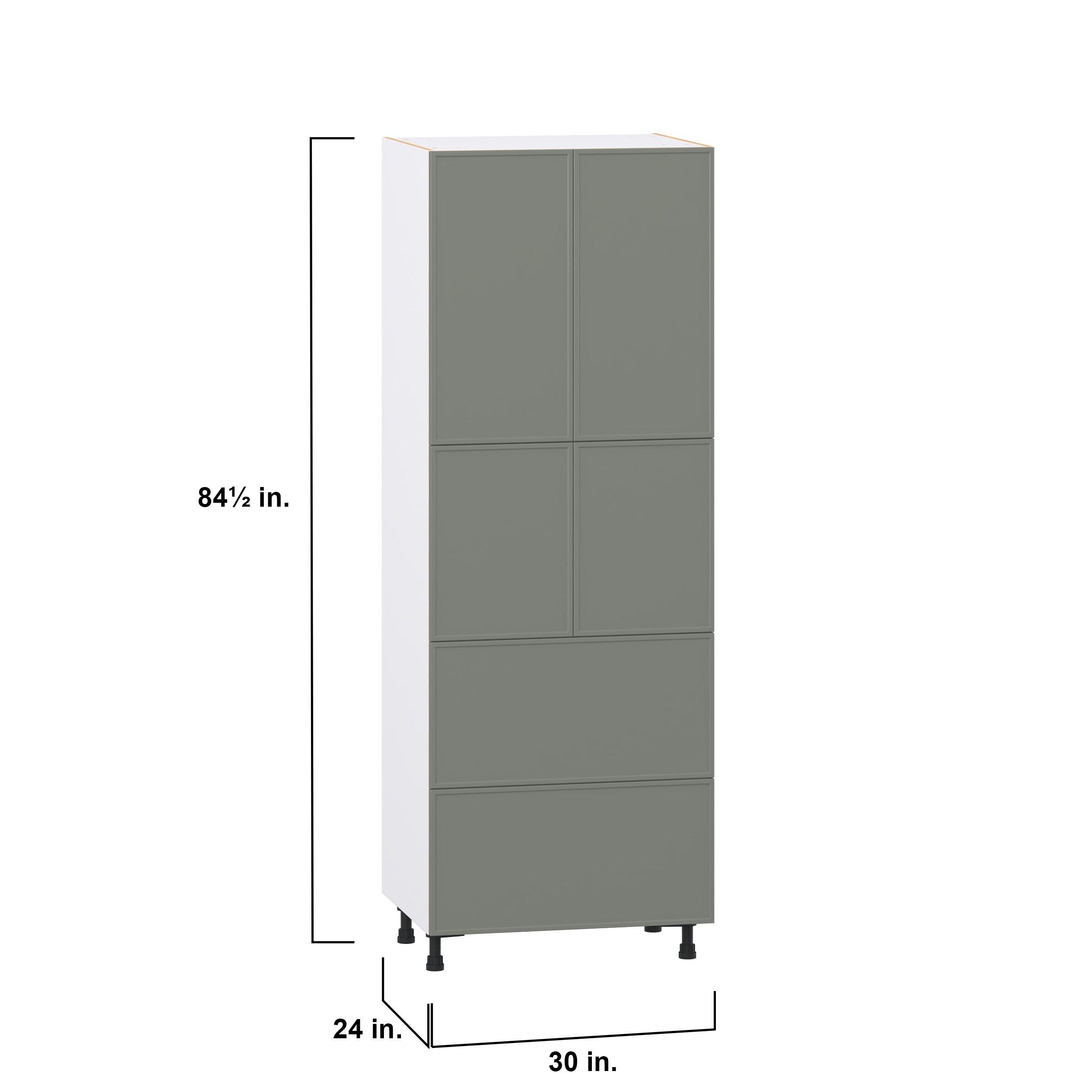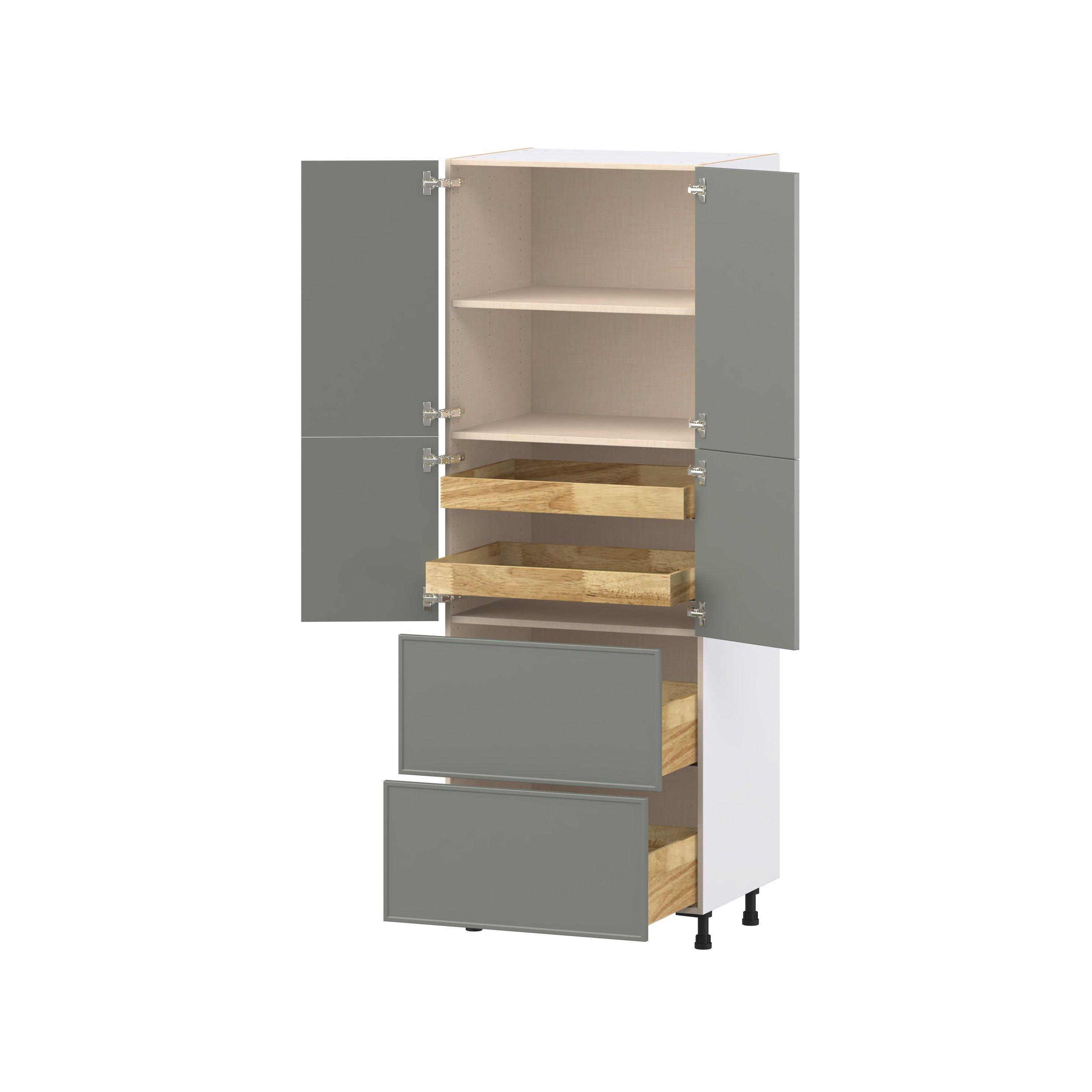 Enjoy a modern twist on a classic with Linden slim shaker cabinets. Available in premium-painted fresh washed linen and earthy moss green finishes, this collection exudes warmth and creates an inviting atmosphere Crafted from one-piece MDF Studio Design Collection Linden 30 in. Painted Moss Green Door and Drawer Pantry Cabinet with Inner Pull-Out is designed to resist hairline cracks while the easy-to-clean finish stands up to stains and moisture. Featuring 5-piece doors and dovetail drawer joints, these cabinets offer durability and elegance. This collection combines style with everyday storage solutions.