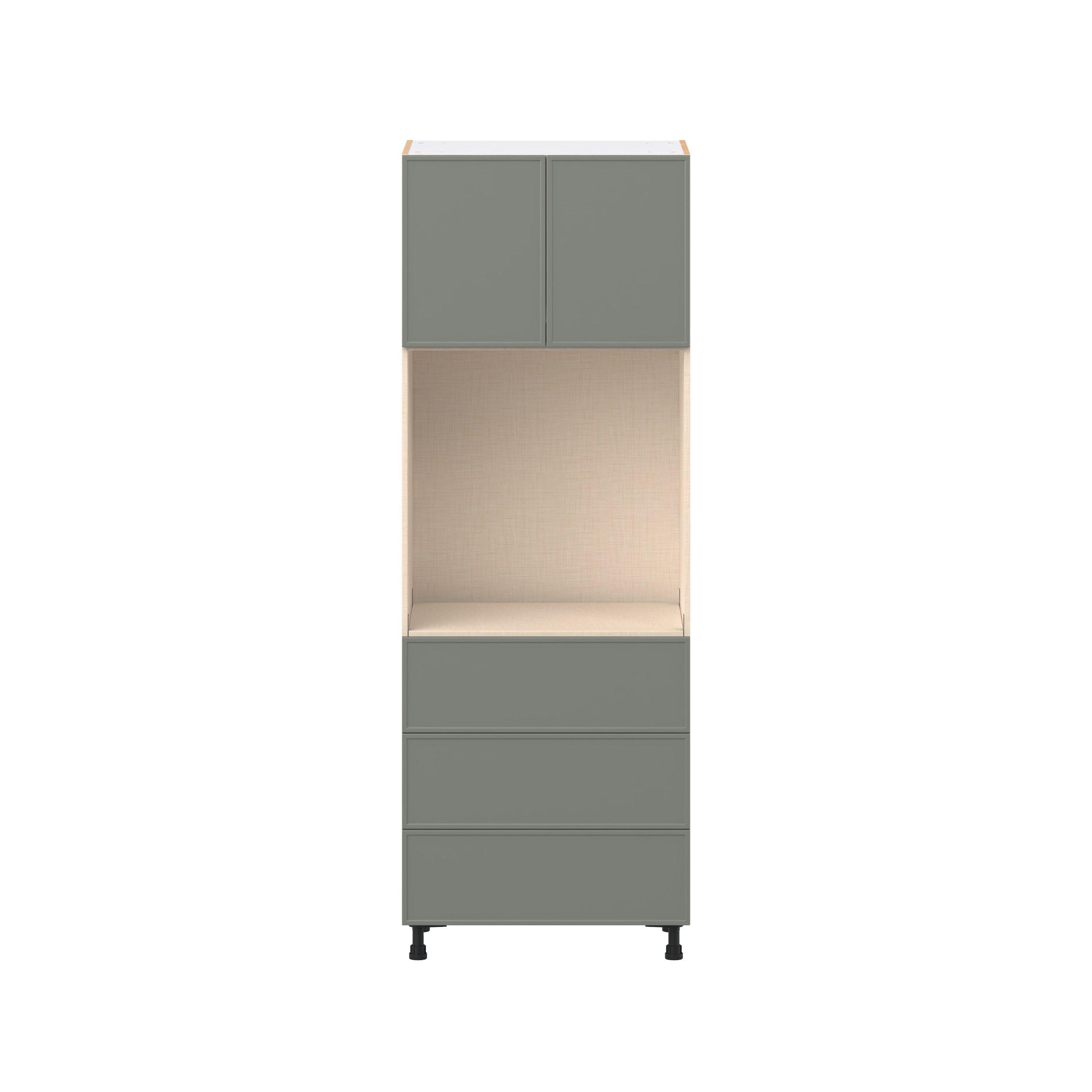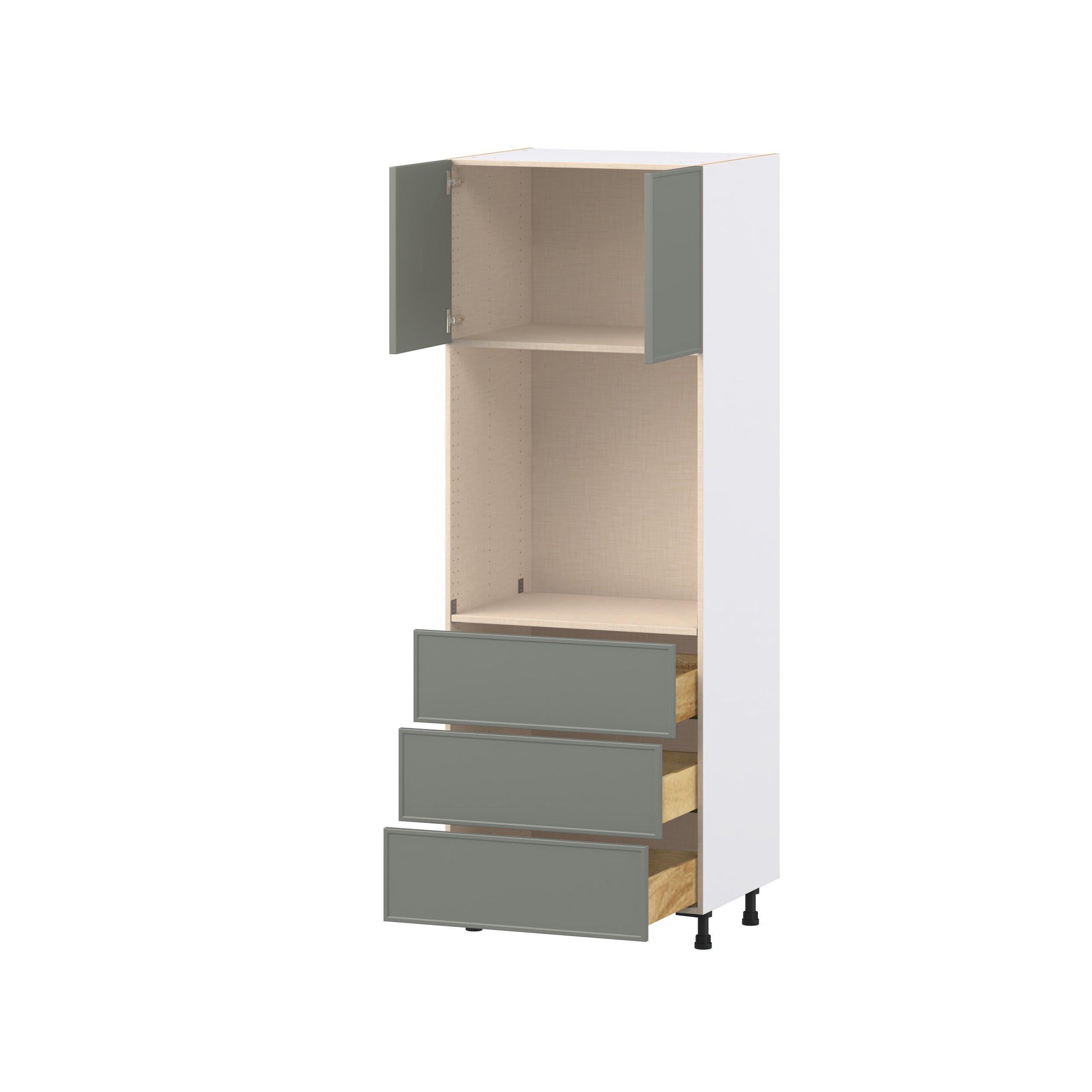 Enjoy a modern twist on a classic with Linden slim shaker cabinets. Available in premium-painted fresh washed linen and earthy moss green finishes, this collection exudes warmth and creates an inviting atmosphere Crafted from one-piece MDF Studio Design Collection Linden 30 in. Painted Moss Green Door and Drawer Single Oven Pantry Cabinet is designed to resist hairline cracks while the easy-to-clean finish stands up to stains and moisture. Featuring 5-piece doors and dovetail drawer joints, these cabinets offer durability and elegance. This collection combines style with everyday storage solutions.