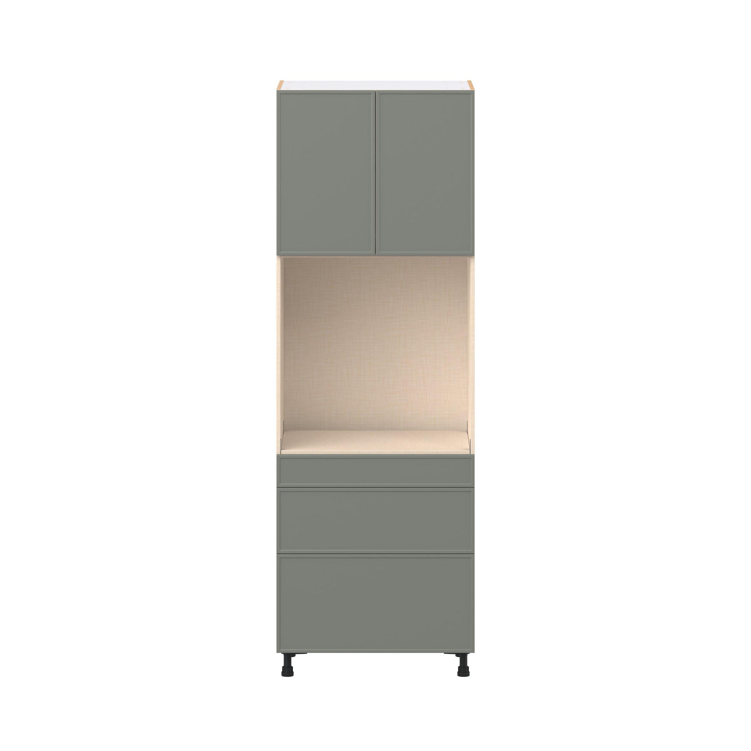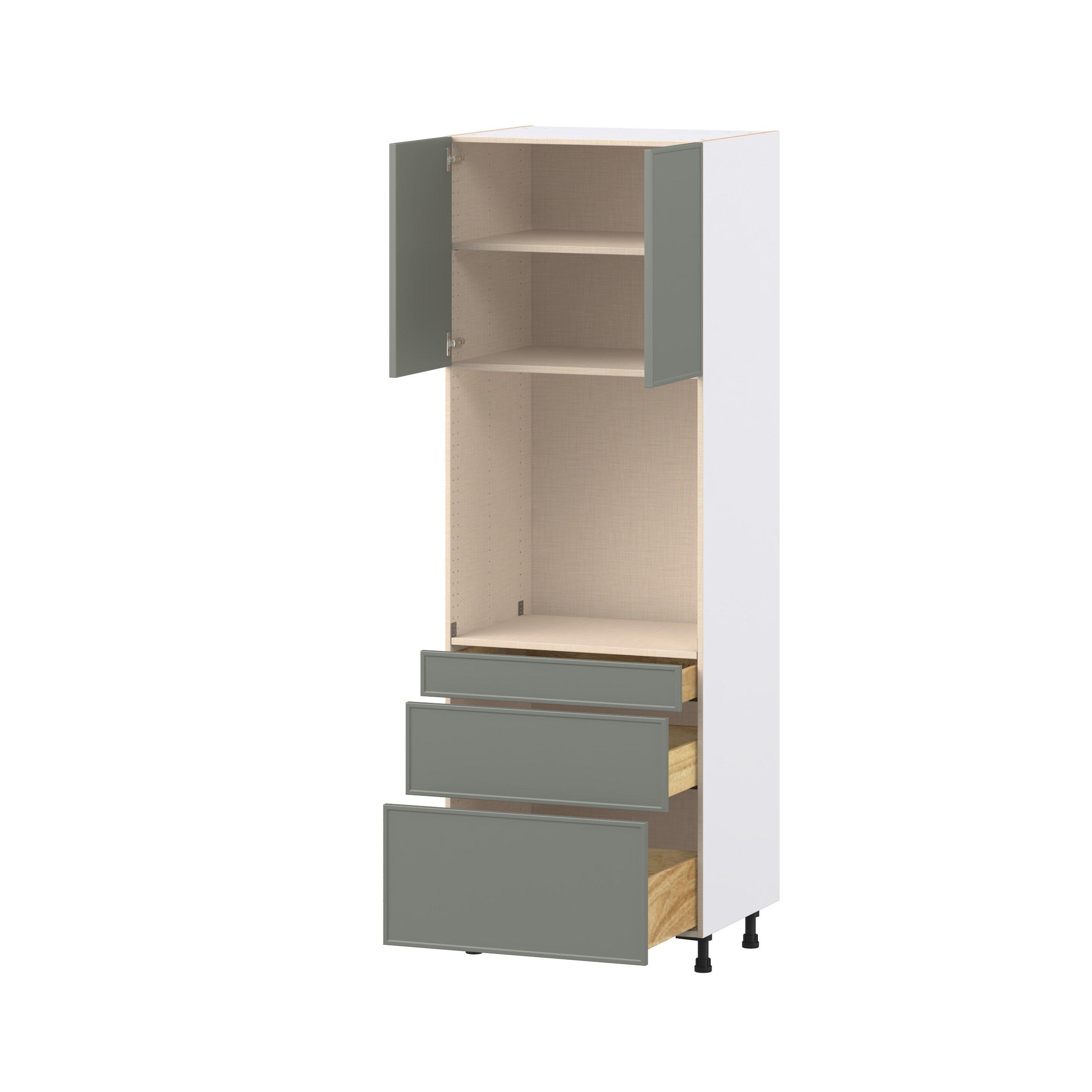Enjoy a modern twist on a classic with Linden slim shaker cabinets. Available in premium-painted fresh washed linen and earthy moss green finishes, this collection exudes warmth and creates an inviting atmosphere Crafted from one-piece MDF Studio Design Collection Linden 30 in. Painted Moss Green Door and Drawer Single Oven Pantry Cabinet is designed to resist hairline cracks while the easy-to-clean finish stands up to stains and moisture. Featuring 5-piece doors and dovetail drawer joints, these cabinets offer durability and elegance. This collection combines style with everyday storage solutions.