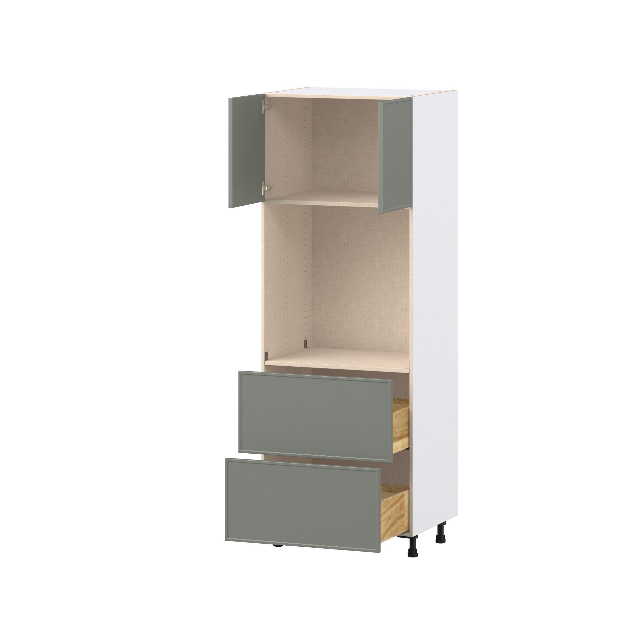 Enjoy a modern twist on a classic with Linden slim shaker cabinets. Available in premium-painted fresh washed linen and earthy moss green finishes, this collection exudes warmth and creates an inviting atmosphere Crafted from one-piece MDF Studio Design Collection Linden 30 in. Painted Moss Green Door and Drawer Single Oven Pantry Cabinet is designed to resist hairline cracks while the easy-to-clean finish stands up to stains and moisture. Featuring 5-piece doors and dovetail drawer joints, these cabinets offer durability and elegance. This collection combines style with everyday storage solutions.