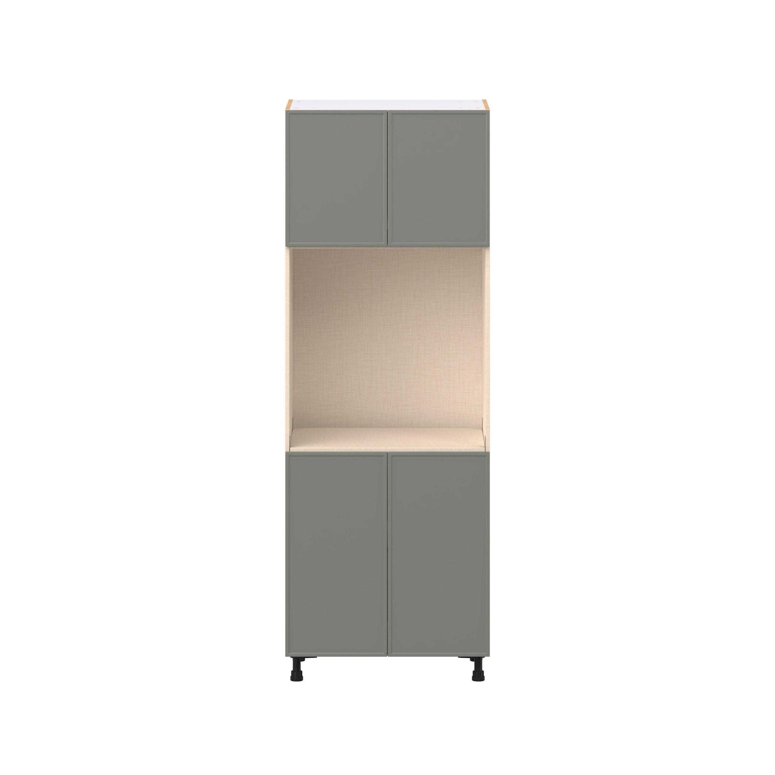 Enjoy a modern twist on a classic with Linden slim shaker cabinets. Available in premium-painted fresh washed linen and earthy moss green finishes, this collection exudes warmth and creates an inviting atmosphere Crafted from one-piece MDF Studio Design Collection Linden 30 in. Painted Moss Green Door Single Oven Pantry Cabinet is designed to resist hairline cracks while the easy-to-clean finish stands up to stains and moisture. Featuring 5-piece doors and dovetail drawer joints, these cabinets offer durability and elegance. This collection combines style with everyday storage solutions.