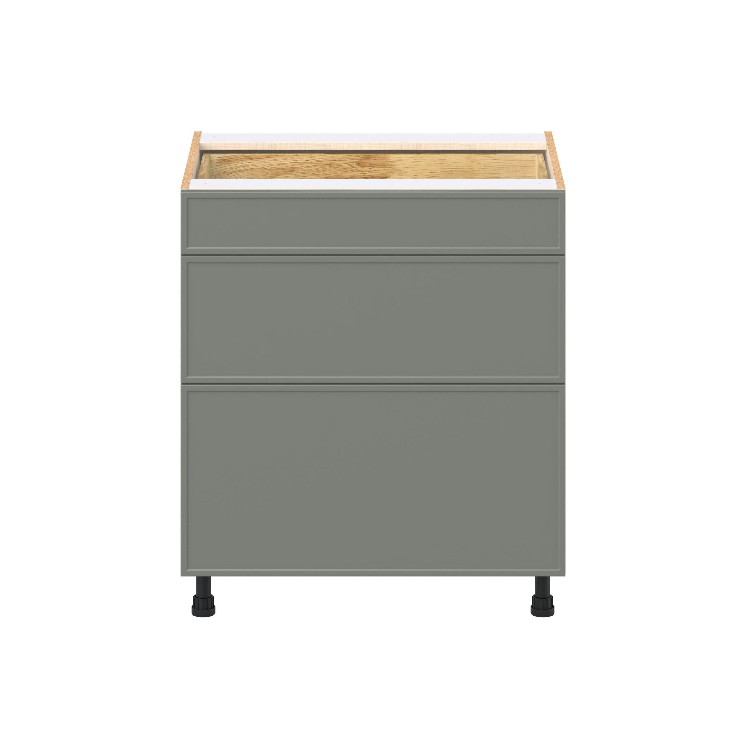 Enjoy a modern twist on a classic with Linden slim shaker cabinets. Available in premium-painted fresh washed linen and earthy moss green finishes, this collection exudes warmth and creates an inviting atmosphere Crafted from one-piece MDF Studio Design Collection Linden 30 in. Painted Moss Green Drawer Base Cabinet is designed to resist hairline cracks while the easy-to-clean finish stands up to stains and moisture. Featuring 5-piece doors and dovetail drawer joints, these cabinets offer durability and elegance. This collection combines style with everyday storage solutions.