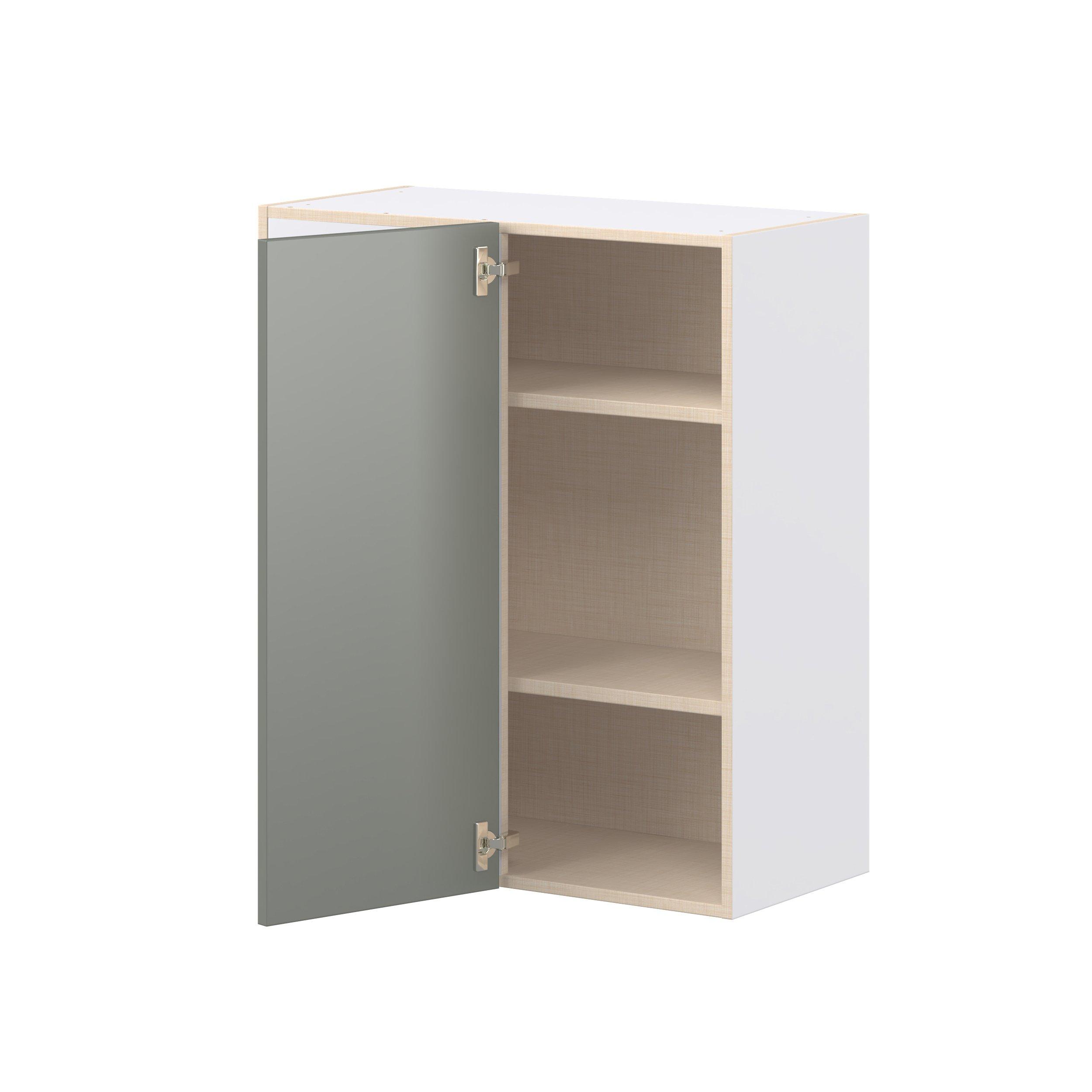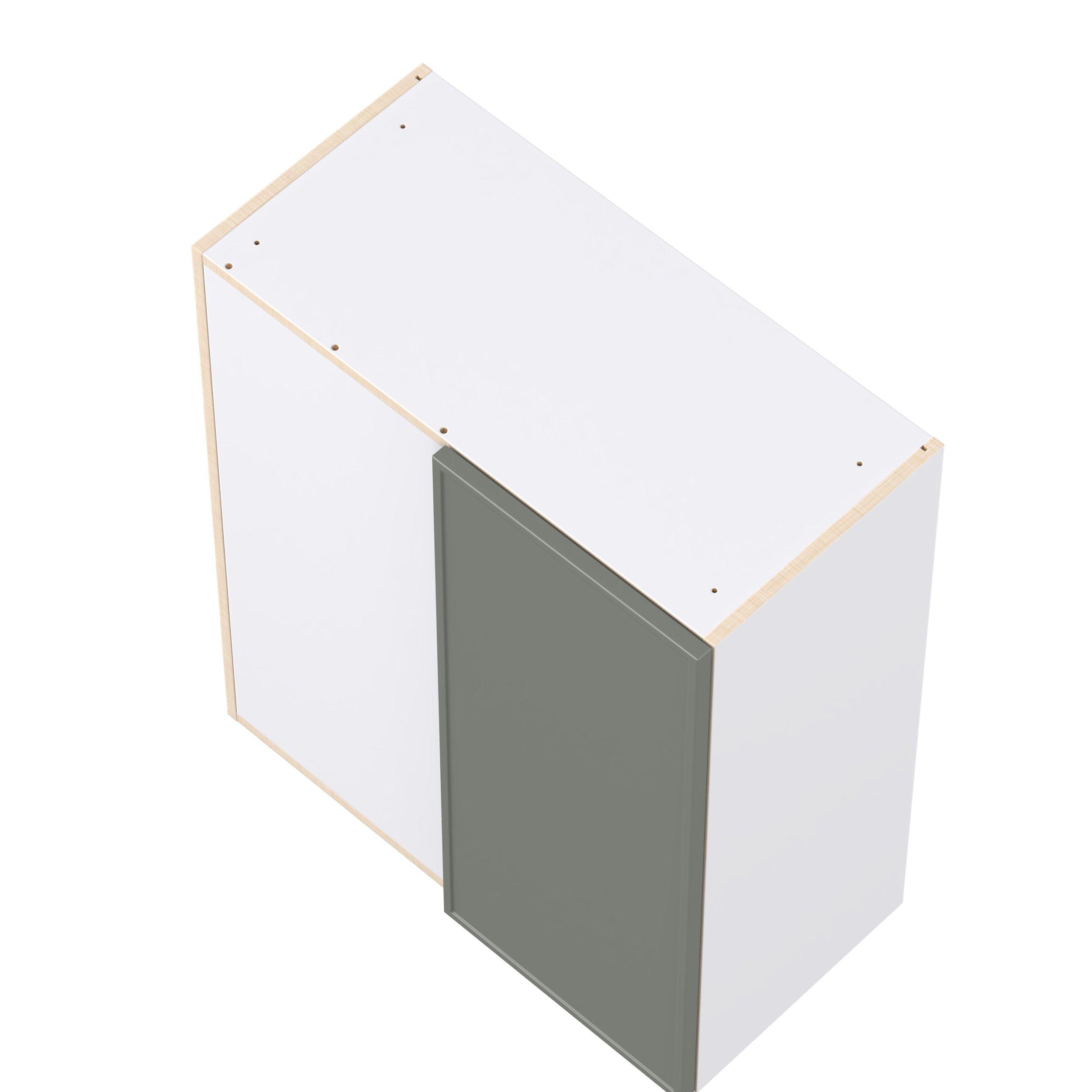 Enjoy a modern twist on a classic with Linden slim shaker cabinets. Available in premium-painted fresh washed linen and earthy moss green finishes, this collection exudes warmth and creates an inviting atmosphere Crafted from one-piece MDF Studio Design Collection Linden 30 in. Painted Moss Green Left Blind Corner Wall Cabinet is designed to resist hairline cracks while the easy-to-clean finish stands up to stains and moisture. Featuring 5-piece doors and dovetail drawer joints, these cabinets offer durability and elegance. This collection combines style with everyday storage solutions.