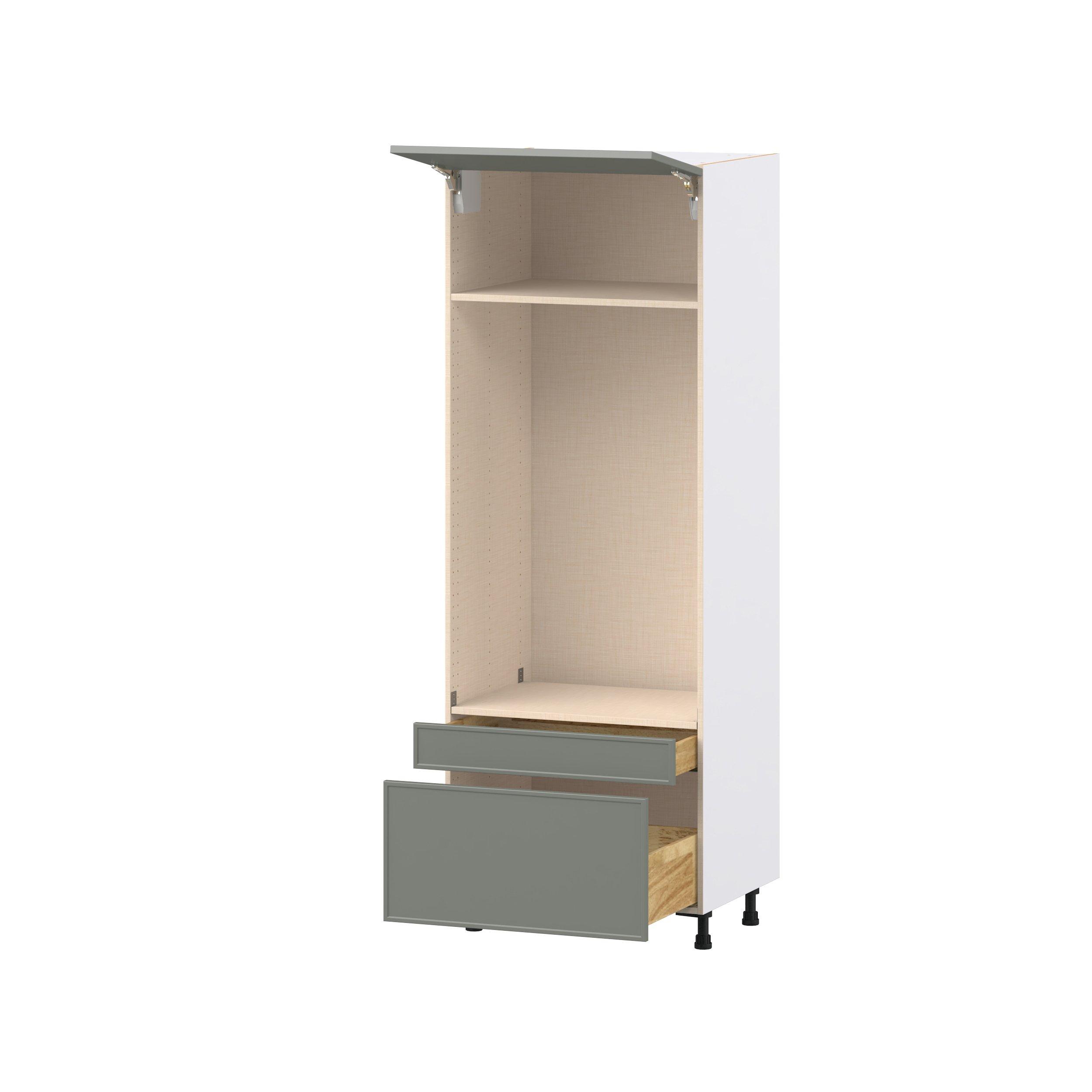 Enjoy a modern twist on a classic with Linden slim shaker cabinets. Available in premium-painted fresh washed linen and earthy moss green finishes, this collection exudes warmth and creates an inviting atmosphere Crafted from one-piece MDF Studio Design Collection Linden 30 in. Painted Moss Green Lift Up Door and Drawer Microwave/Oven Pantry Cabinet is designed to resist hairline cracks while the easy-to-clean finish stands up to stains and moisture. Featuring 5-piece doors and dovetail drawer joints, these cabinets offer durability and elegance. This collection combines style with everyday storage solutions.