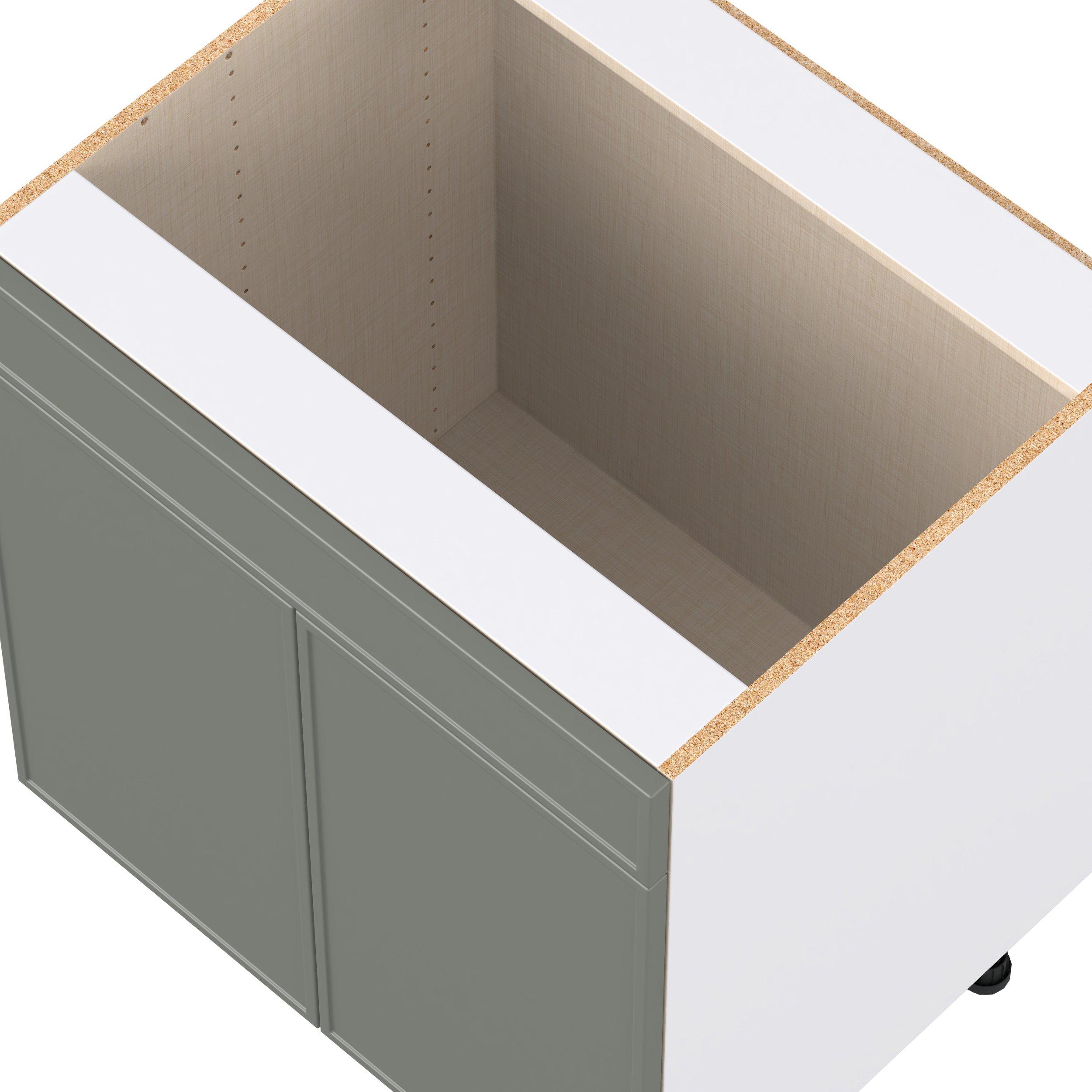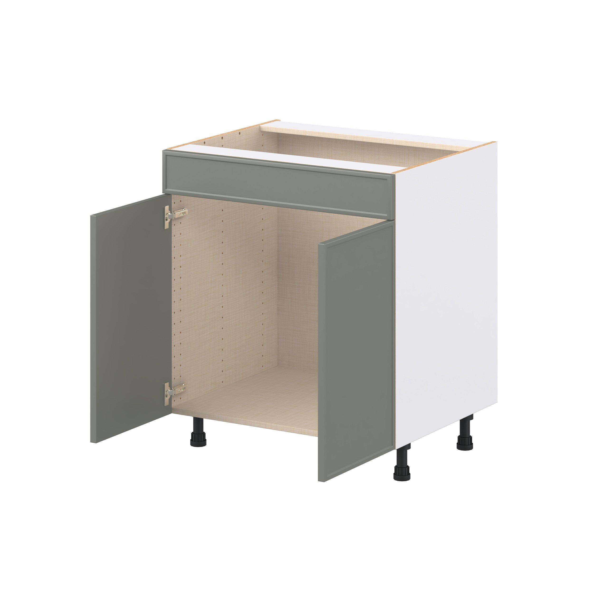 Enjoy a modern twist on a classic with Linden slim shaker cabinets. Available in premium-painted fresh washed linen and earthy moss green finishes, this collection exudes warmth and creates an inviting atmosphere Crafted from one-piece MDF Studio Design Collection Linden 30 in. Painted Moss Green Sink Base Cabinet with False Front is designed to resist hairline cracks while the easy-to-clean finish stands up to stains and moisture. Featuring 5-piece doors and dovetail drawer joints, these cabinets offer durability and elegance. This collection combines style with everyday storage solutions.