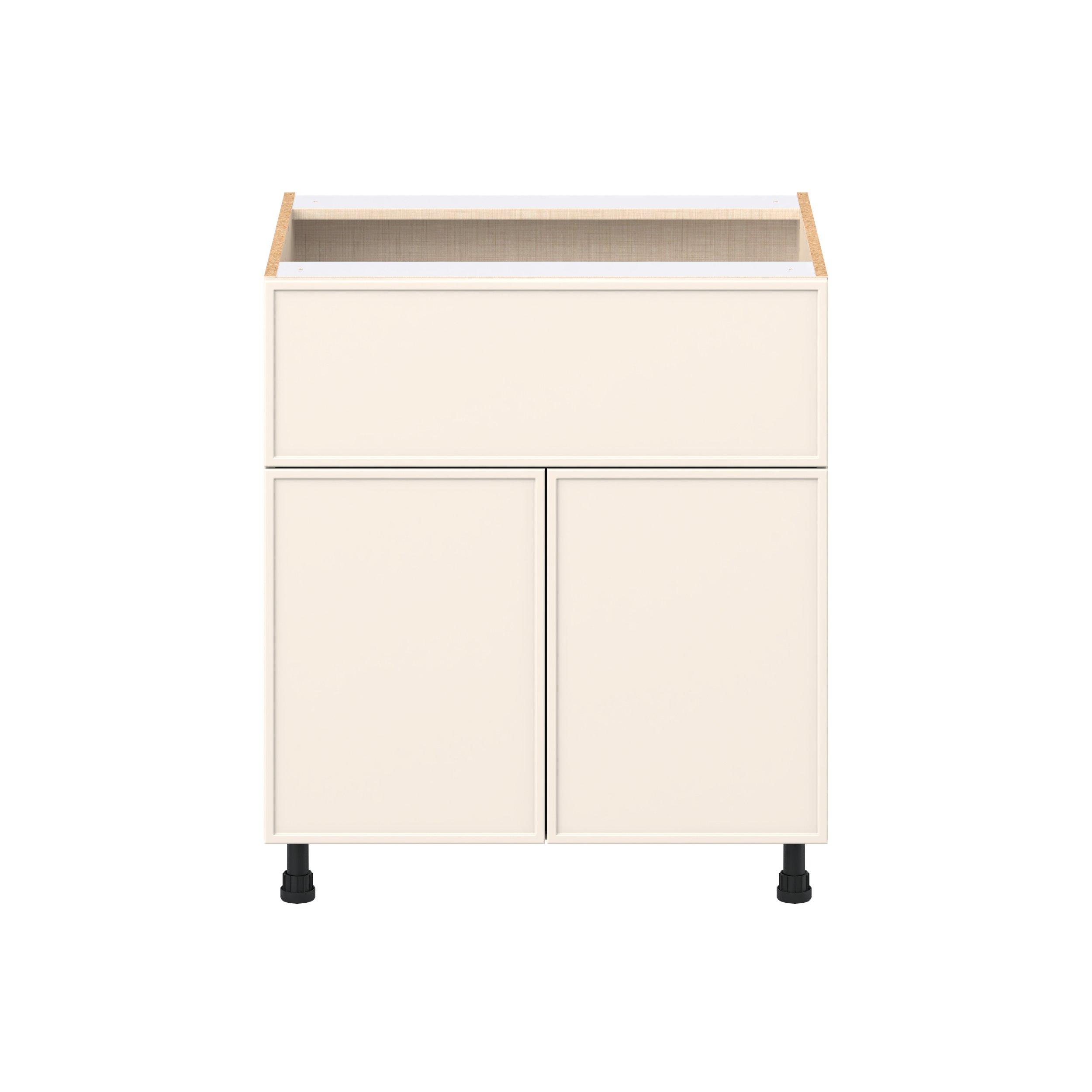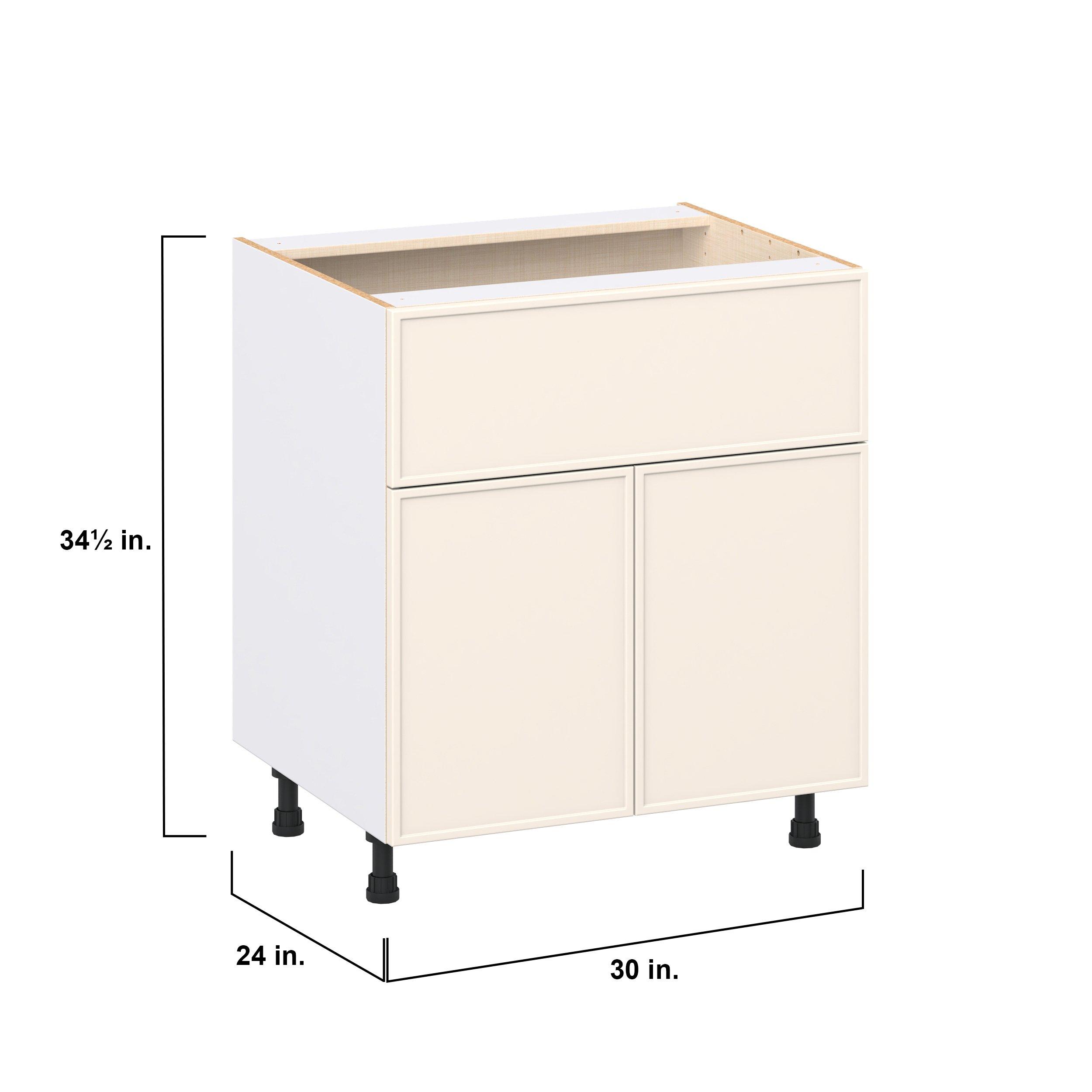 Enjoy a modern twist on a classic with Linden slim shaker cabinets. Available in premium-painted fresh washed linen and earthy moss green finishes, this collection exudes warmth and creates an inviting atmosphere Crafted from one-piece MDF Studio Design Collection Linden 30 in. Painted Washed Linen Door and Drawer Base Cabinet is designed to resist hairline cracks while the easy-to-clean finish stands up to stains and moisture. Featuring 5-piece doors and dovetail drawer joints, these cabinets offer durability and elegance. This collection combines style with everyday storage solutions.
