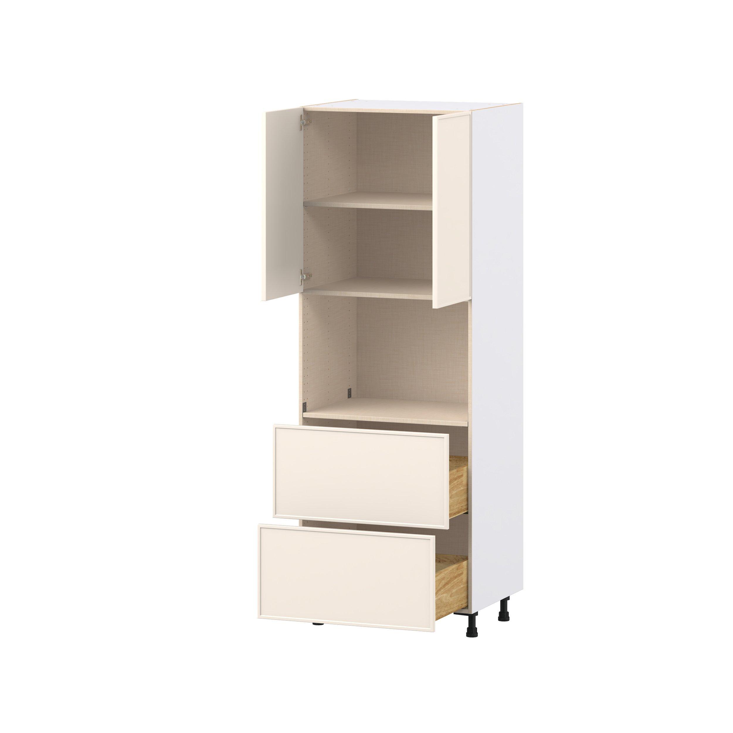 Enjoy a modern twist on a classic with Linden slim shaker cabinets. Available in premium-painted fresh washed linen and earthy moss green finishes, this collection exudes warmth and creates an inviting atmosphere Crafted from one-piece MDF Studio Design Collection Linden 30 in. Painted Washed Linen Door and Drawer Microwave Pantry Cabinet is designed to resist hairline cracks while the easy-to-clean finish stands up to stains and moisture. Featuring 5-piece doors and dovetail drawer joints, these cabinets offer durability and elegance. This collection combines style with everyday storage solutions.