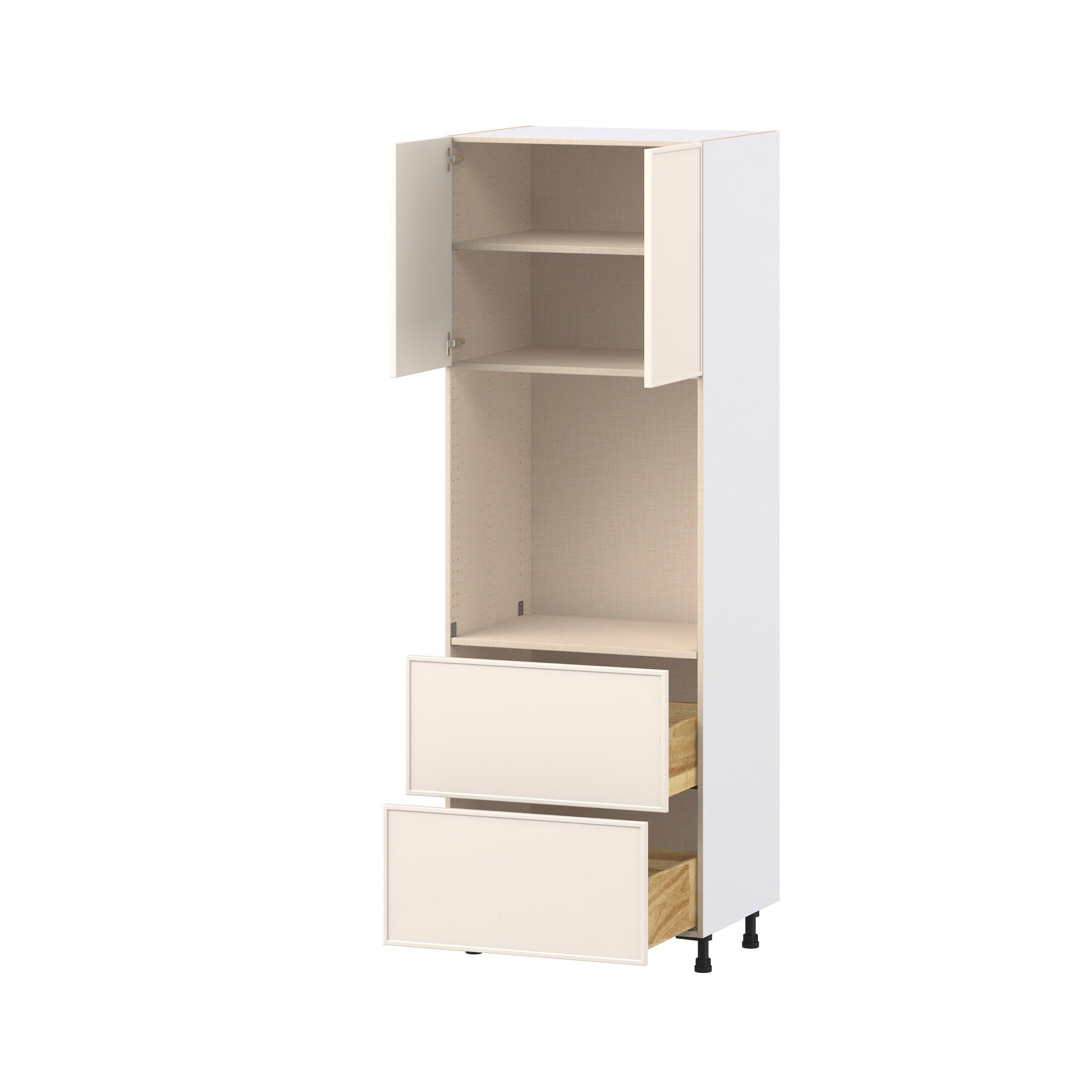 Enjoy a modern twist on a classic with Linden slim shaker cabinets. Available in premium-painted fresh washed linen and earthy moss green finishes, this collection exudes warmth and creates an inviting atmosphere Crafted from one-piece MDF Studio Design Collection Linden 30 in. Painted Washed Linen Door and Drawer Single Oven Pantry Cabinet is designed to resist hairline cracks while the easy-to-clean finish stands up to stains and moisture. Featuring 5-piece doors and dovetail drawer joints, these cabinets offer durability and elegance. This collection combines style with everyday storage solutions.