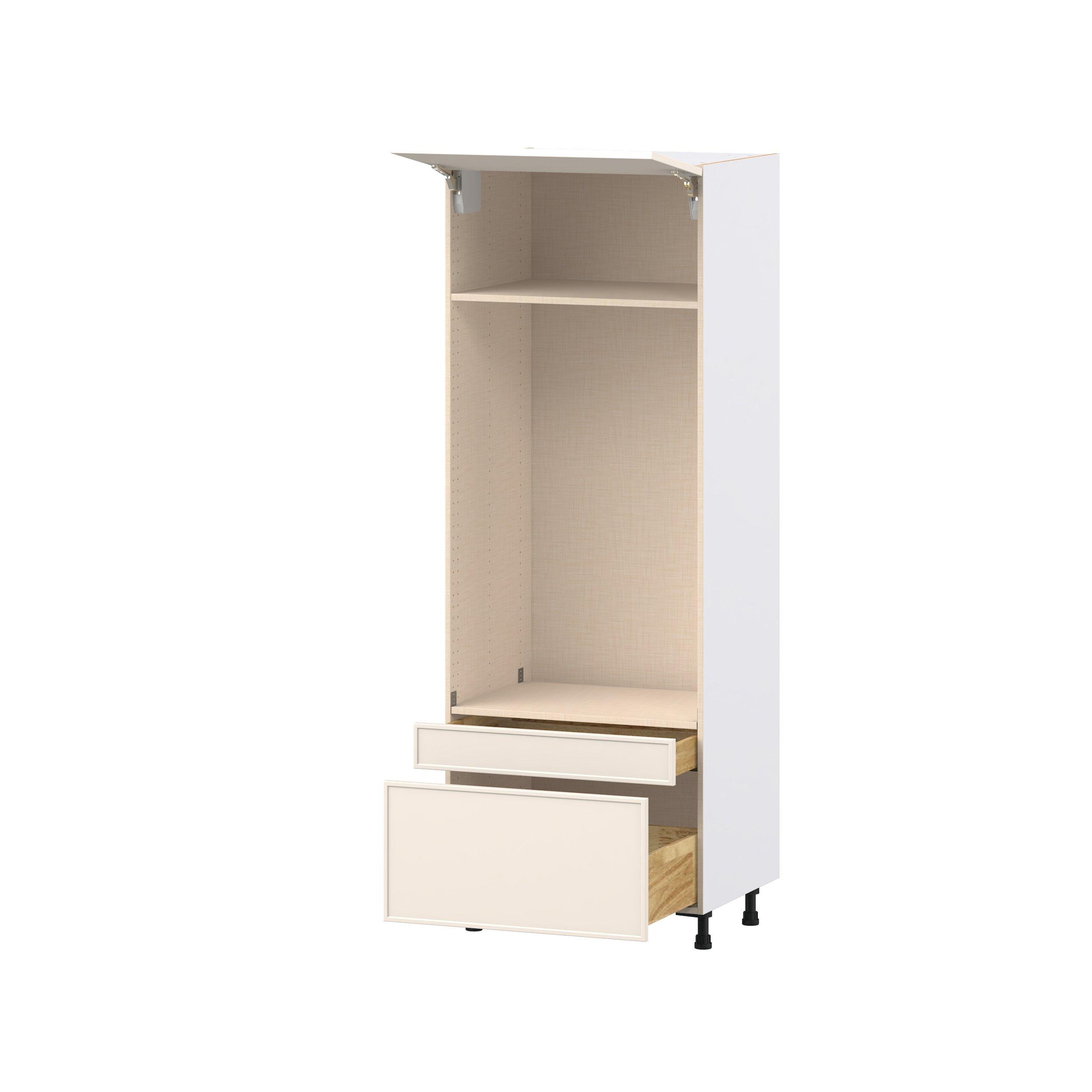 Enjoy a modern twist on a classic with Linden slim shaker cabinets. Available in premium-painted fresh washed linen and earthy moss green finishes, this collection exudes warmth and creates an inviting atmosphere Crafted from one-piece MDF Studio Design Collection Linden 30 in. Painted Washed Linen Lift Up Door and Drawer Microwave/Oven Pantry Cabinet is designed to resist hairline cracks while the easy-to-clean finish stands up to stains and moisture. Featuring 5-piece doors and dovetail drawer joints, these cabinets offer durability and elegance. This collection combines style with everyday storage solutions.