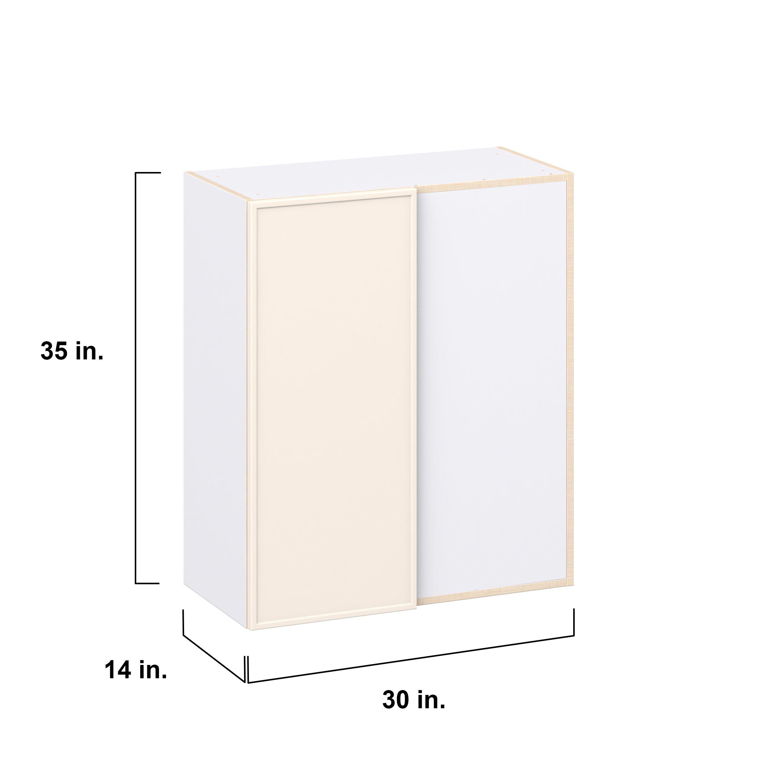 Enjoy a modern twist on a classic with Linden slim shaker cabinets. Available in premium-painted fresh washed linen and earthy moss green finishes, this collection exudes warmth and creates an inviting atmosphere Crafted from one-piece MDF Studio Design Collection Linden 30 in. Washed Linen Right Blind Corner Wall Cabinet is designed to resist hairline cracks while the easy-to-clean finish stands up to stains and moisture. Featuring 5-piece doors and dovetail drawer joints, these cabinets offer durability and elegance. This collection combines style with everyday storage solutions.
