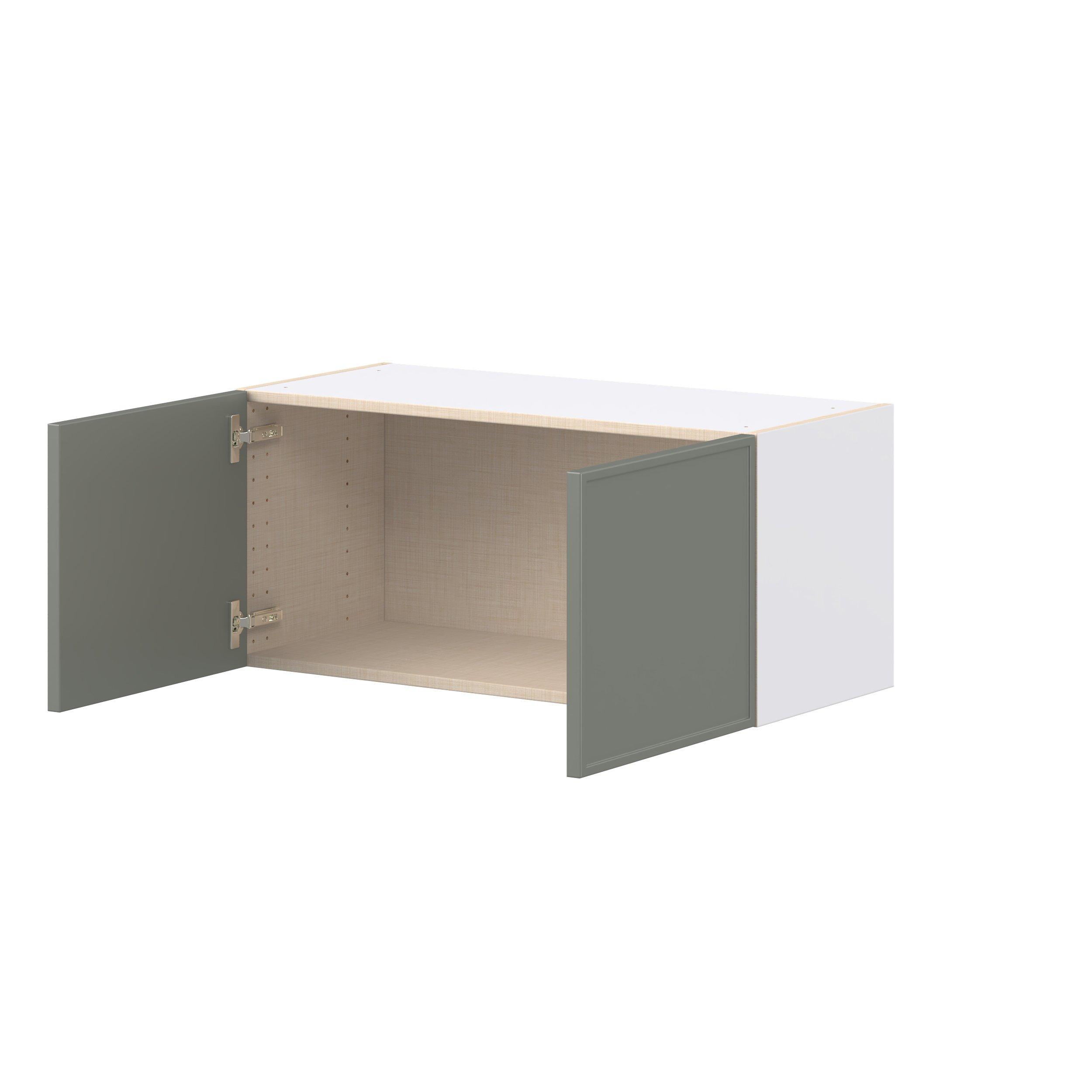 Enjoy a modern twist on a classic with Linden slim shaker cabinets. Available in premium-painted fresh washed linen and earthy moss green finishes, this collection exudes warmth and creates an inviting atmosphere Crafted from one-piece MDF Studio Design Collection Linden 33 in. Painted Moss Green Bridge Wall Cabinet is designed to resist hairline cracks while the easy-to-clean finish stands up to stains and moisture. Featuring 5-piece doors and dovetail drawer joints, these cabinets offer durability and elegance. This collection combines style with everyday storage solutions.