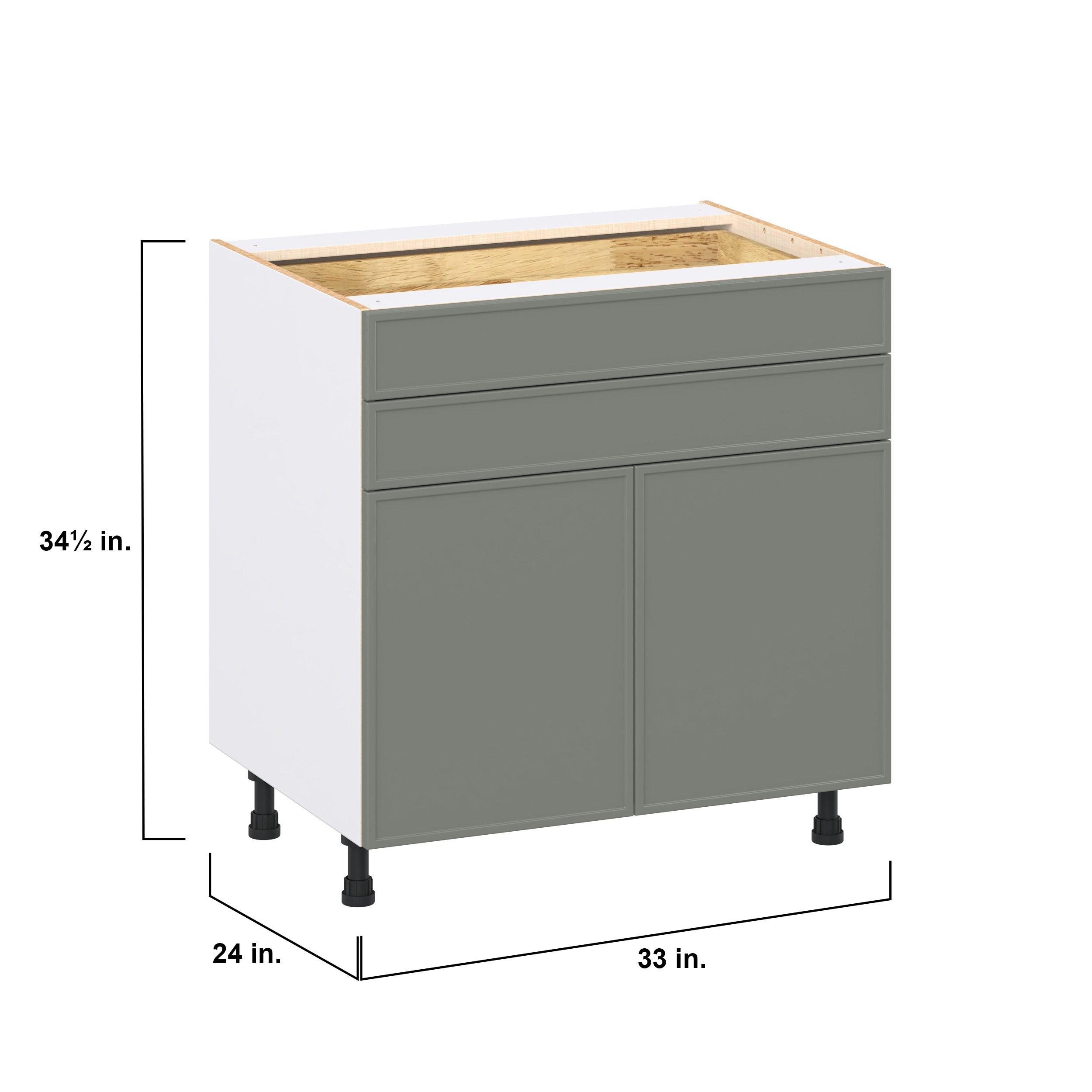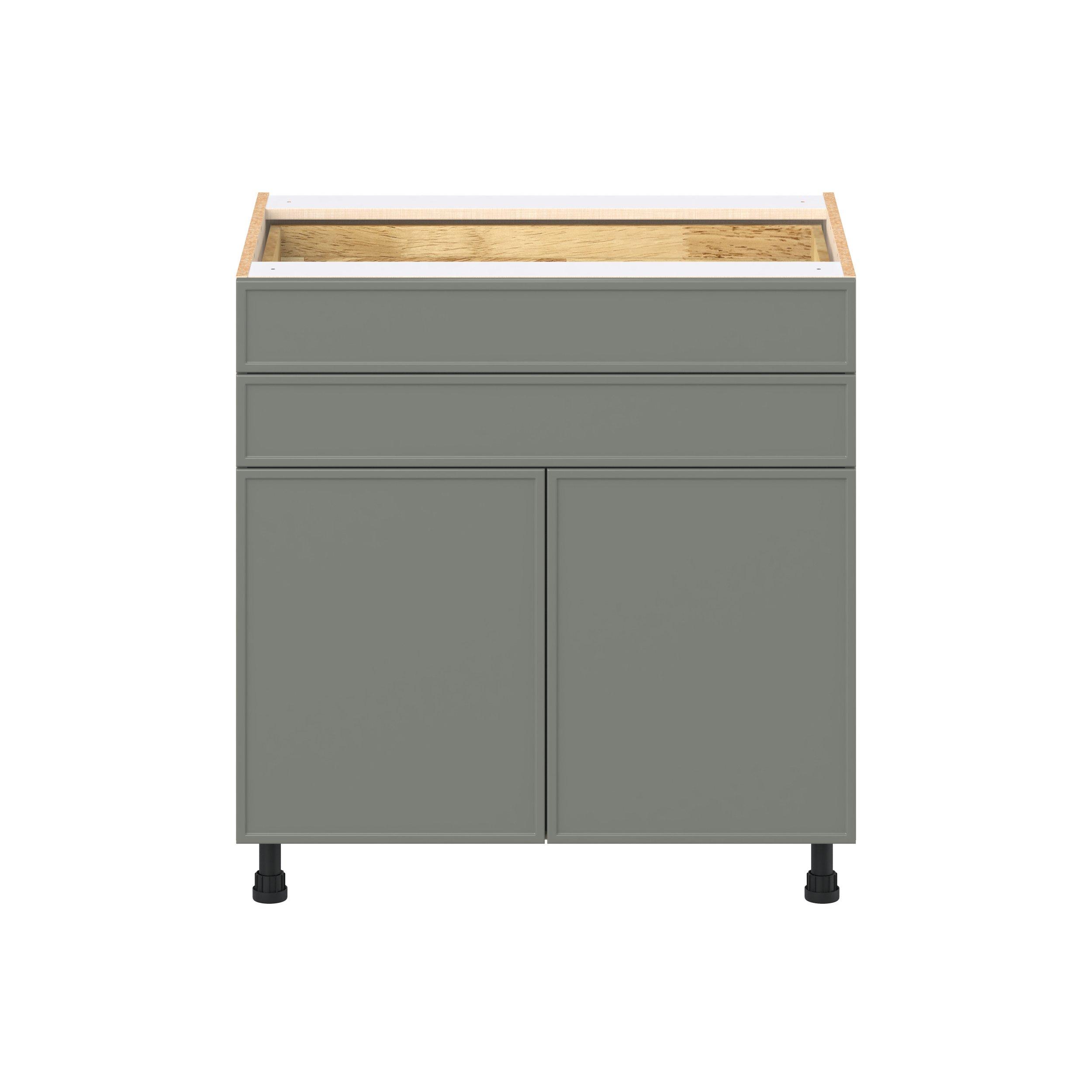 Linden 33 in. Painted Moss Green Door and Drawer Base Cabinet