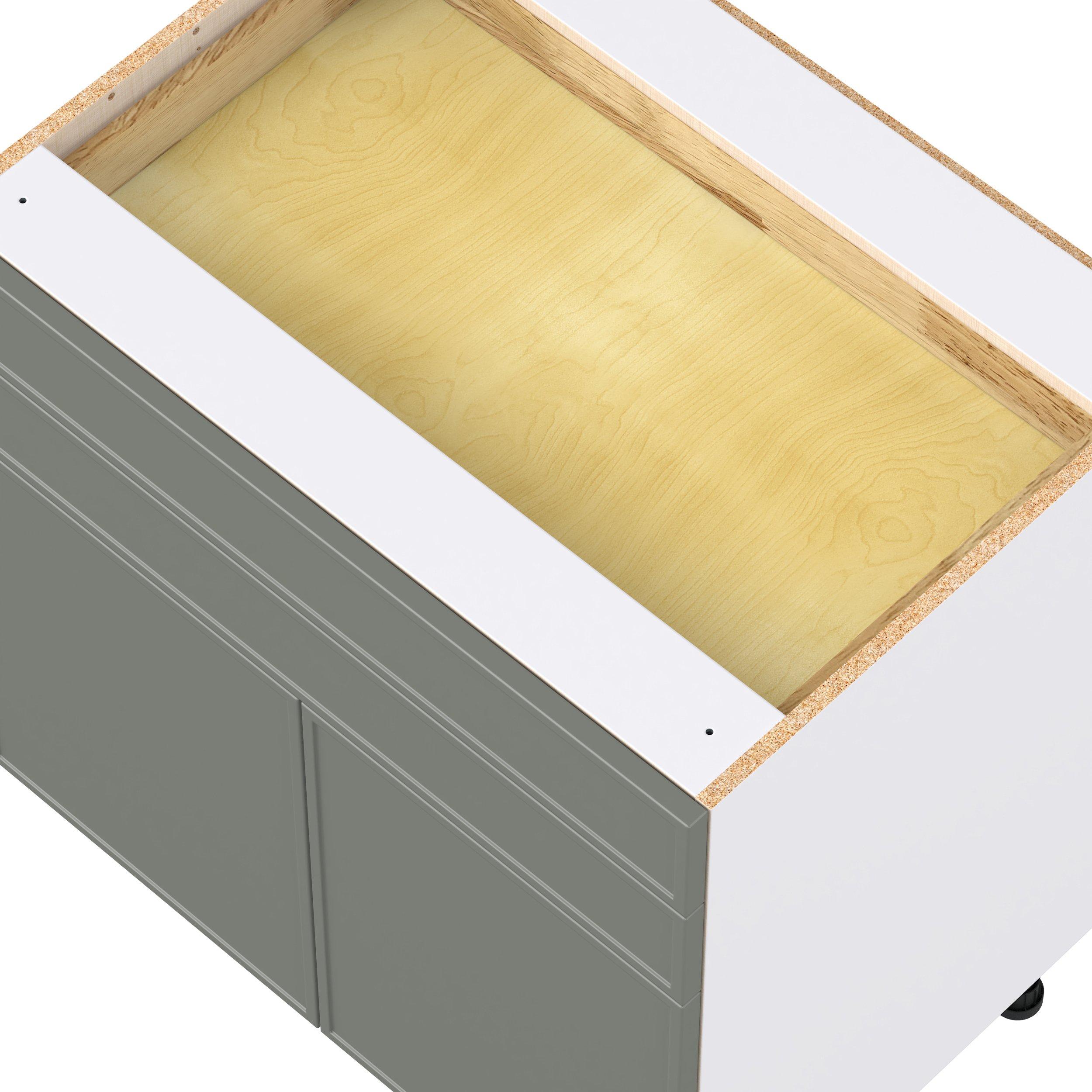 Enjoy a modern twist on a classic with Linden slim shaker cabinets. Available in premium-painted fresh washed linen and earthy moss green finishes, this collection exudes warmth and creates an inviting atmosphere Crafted from one-piece MDF Studio Design Collection Linden 33 in. Painted Moss Green Door and Drawer Base Cabinet is designed to resist hairline cracks while the easy-to-clean finish stands up to stains and moisture. Featuring 5-piece doors and dovetail drawer joints, these cabinets offer durability and elegance. This collection combines style with everyday storage solutions.