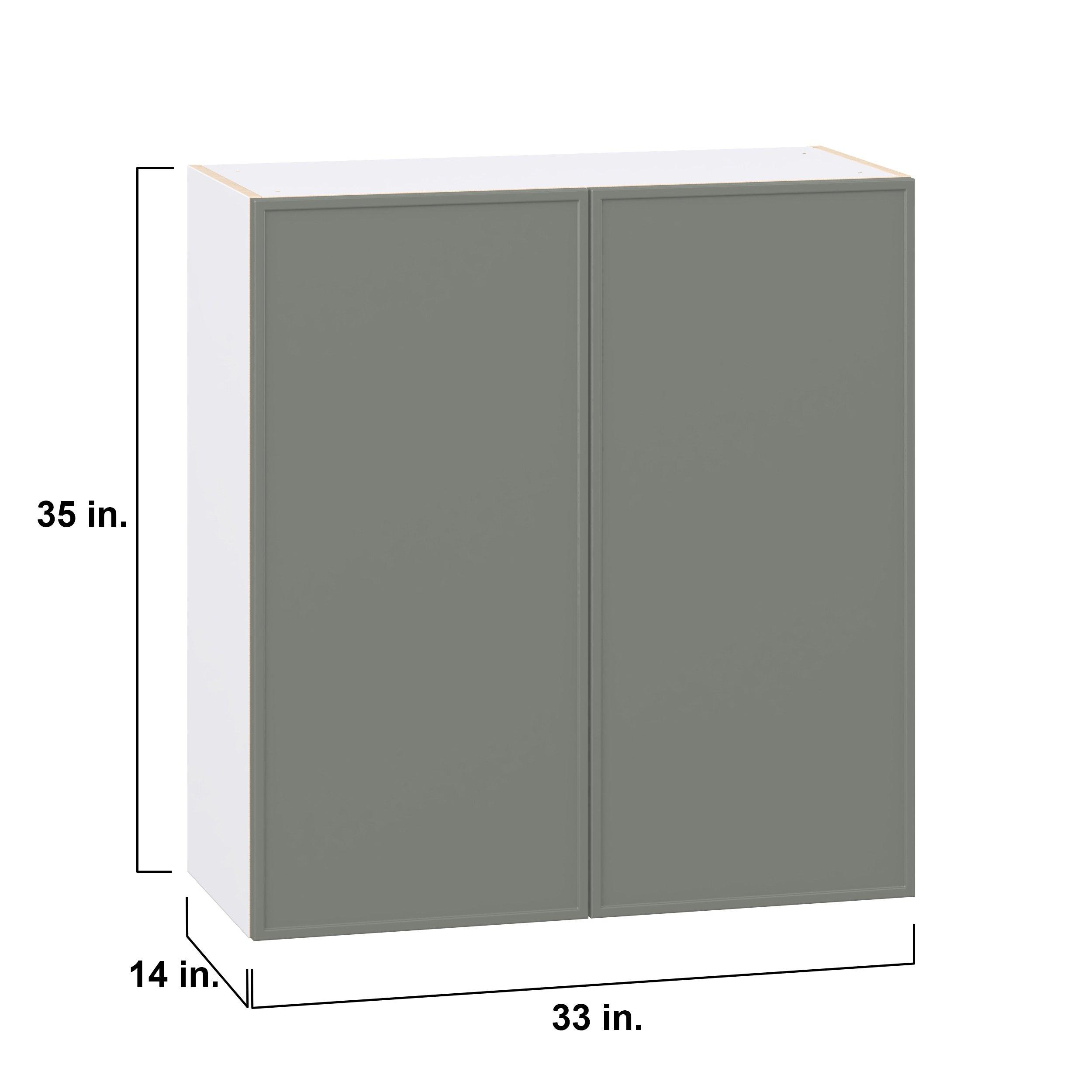 Enjoy a modern twist on a classic with Linden slim shaker cabinets. Available in premium-painted fresh washed linen and earthy moss green finishes, this collection exudes warmth and creates an inviting atmosphere Crafted from one-piece MDF Studio Design Collection Linden 33 in. Painted Moss Green Door Wall Cabinet is designed to resist hairline cracks while the easy-to-clean finish stands up to stains and moisture. Featuring 5-piece doors and dovetail drawer joints, these cabinets offer durability and elegance. This collection combines style with everyday storage solutions.