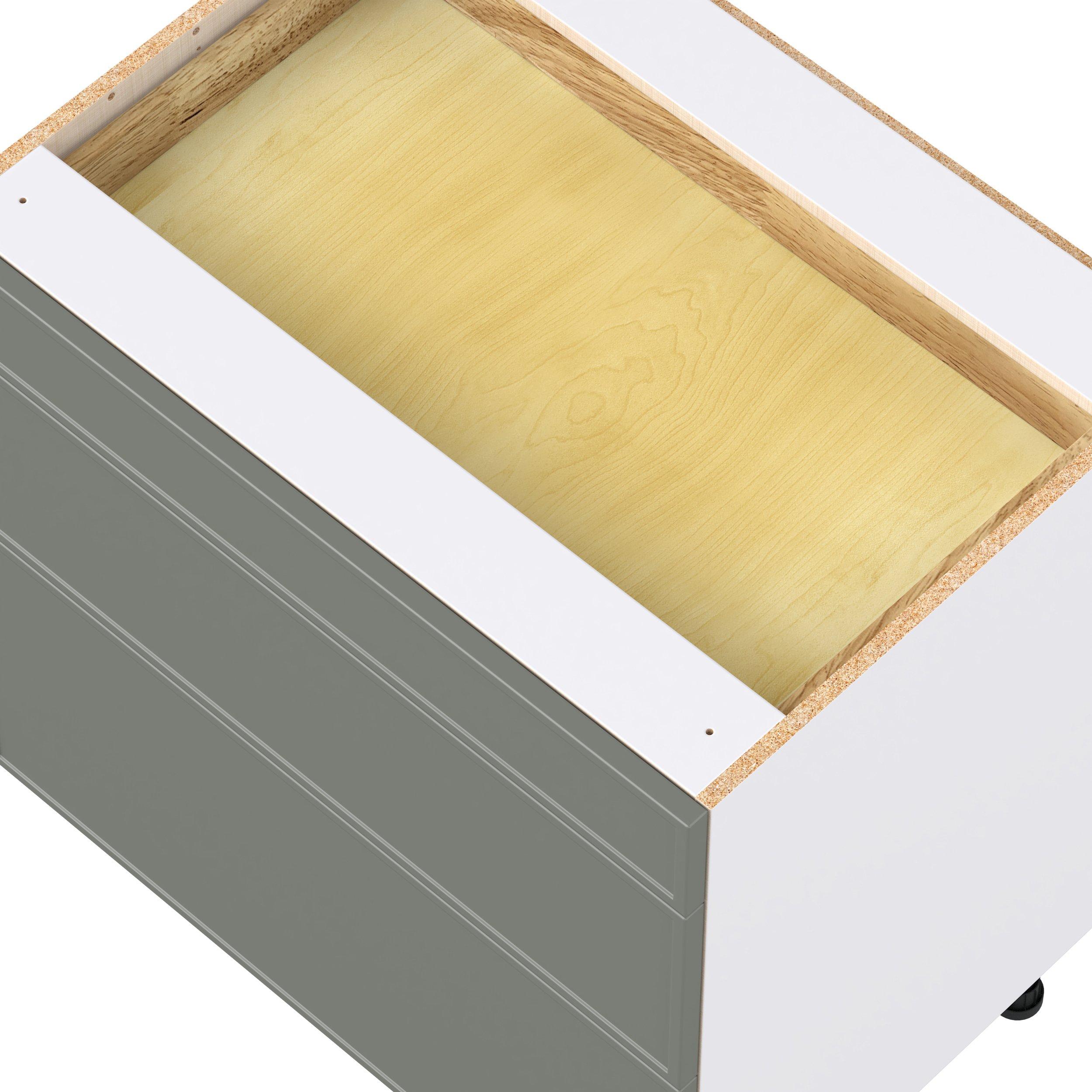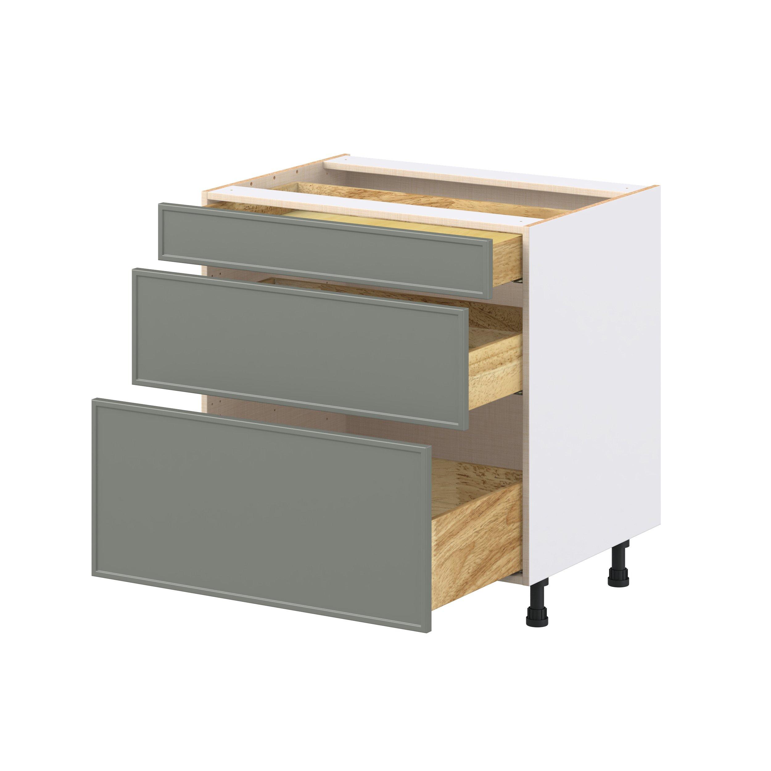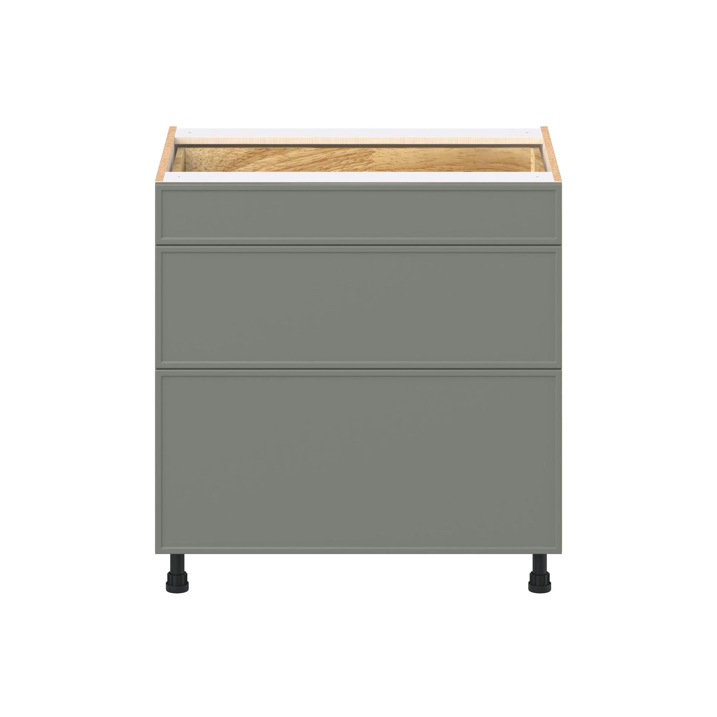 Enjoy a modern twist on a classic with Linden slim shaker cabinets. Available in premium-painted fresh washed linen and earthy moss green finishes, this collection exudes warmth and creates an inviting atmosphere Crafted from one-piece MDF Studio Design Collection Linden 33 in. Painted Moss Green Drawer Base Cabinet is designed to resist hairline cracks while the easy-to-clean finish stands up to stains and moisture. Featuring 5-piece doors and dovetail drawer joints, these cabinets offer durability and elegance. This collection combines style with everyday storage solutions.