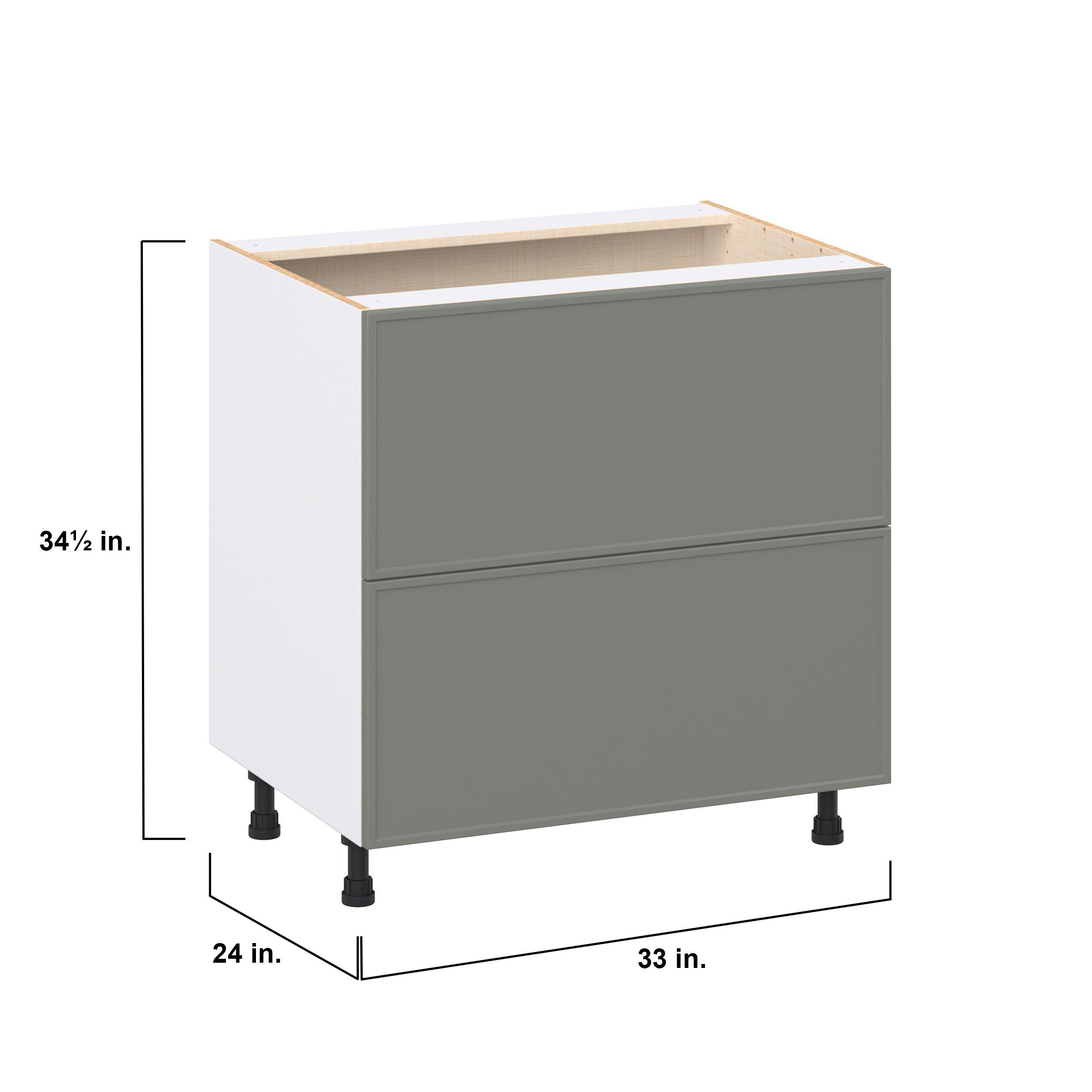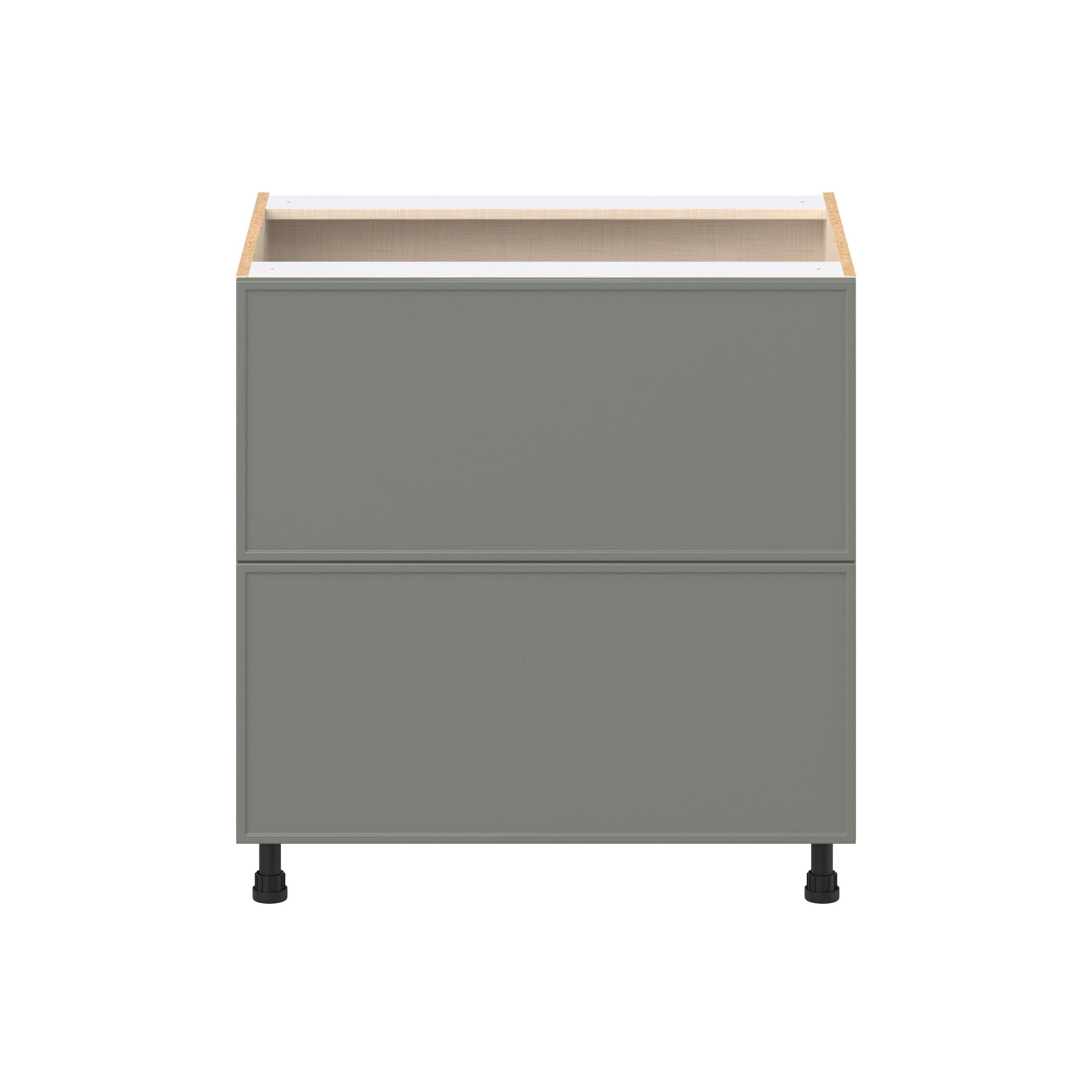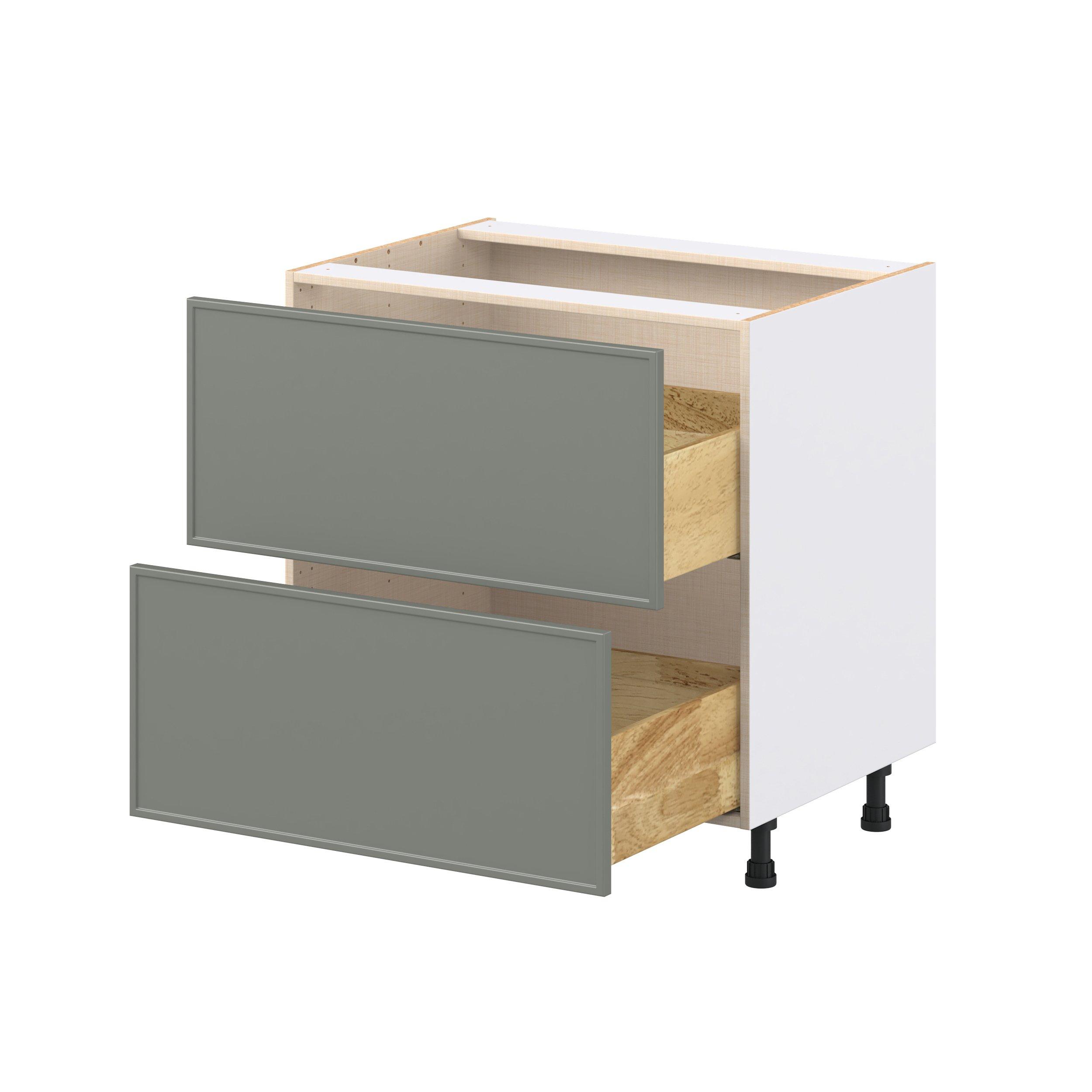 Enjoy a modern twist on a classic with Linden slim shaker cabinets. Available in premium-painted fresh washed linen and earthy moss green finishes, this collection exudes warmth and creates an inviting atmosphere Crafted from one-piece MDF Studio Design Collection Linden 33 in. Painted Moss Green Drawer Base Cabinet is designed to resist hairline cracks while the easy-to-clean finish stands up to stains and moisture. Featuring 5-piece doors and dovetail drawer joints, these cabinets offer durability and elegance. This collection combines style with everyday storage solutions.