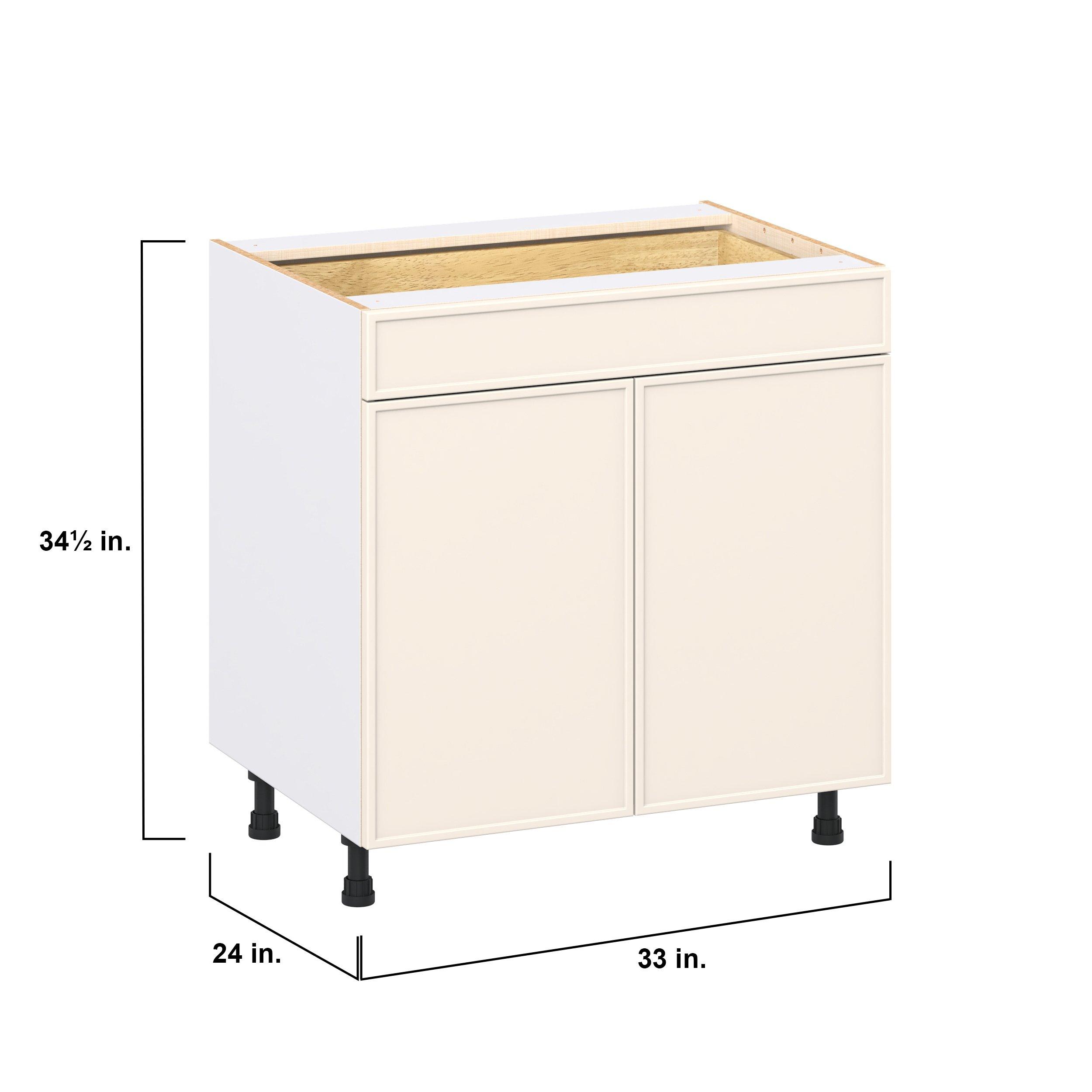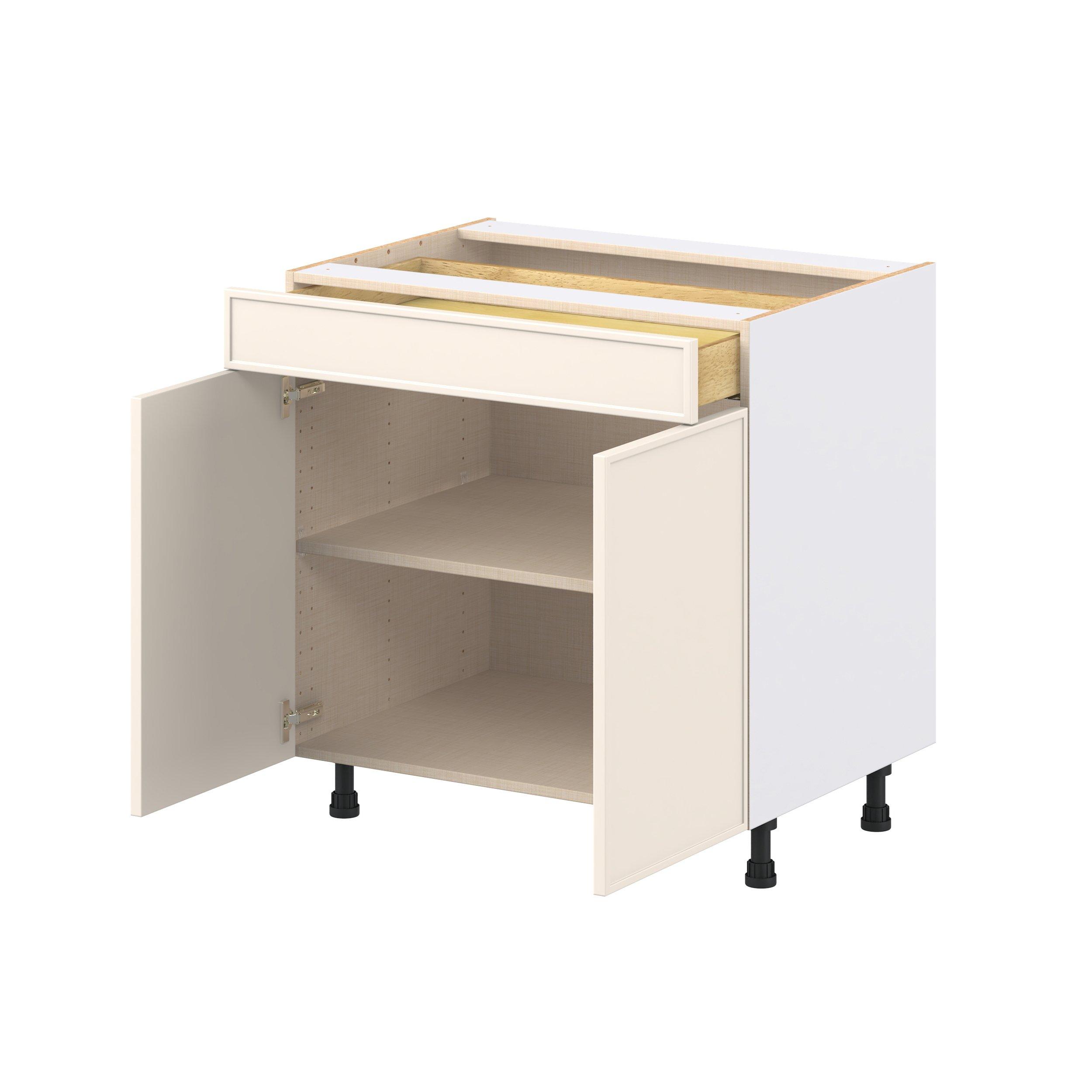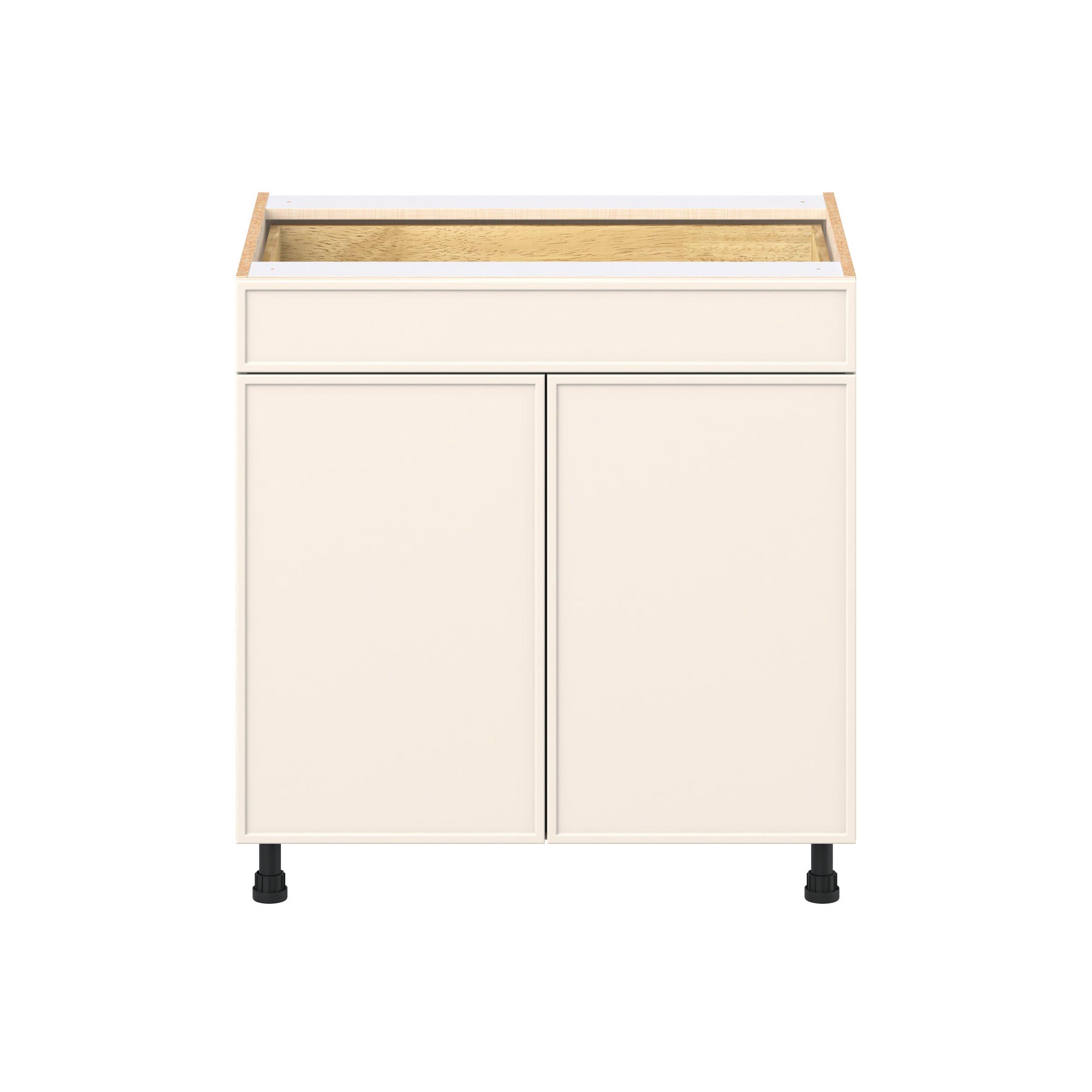 Enjoy a modern twist on a classic with Linden slim shaker cabinets. Available in premium-painted fresh washed linen and earthy moss green finishes, this collection exudes warmth and creates an inviting atmosphere Crafted from one-piece MDF Studio Design Collection Linden 33 in. Painted Washed Linen Door and Drawer Base Cabinet is designed to resist hairline cracks while the easy-to-clean finish stands up to stains and moisture. Featuring 5-piece doors and dovetail drawer joints, these cabinets offer durability and elegance. This collection combines style with everyday storage solutions.