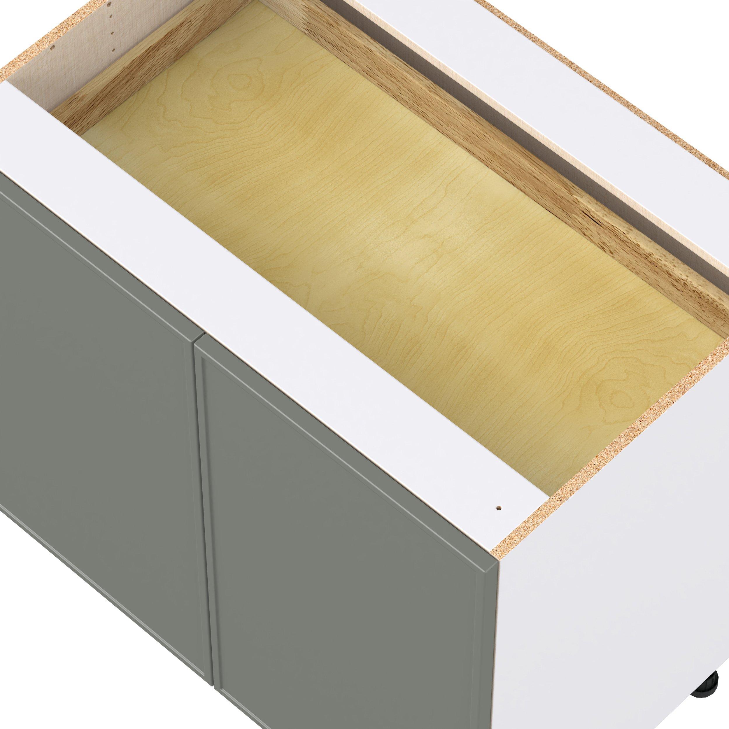Enjoy a modern twist on a classic with Linden slim shaker cabinets. Available in premium-painted fresh washed linen and earthy moss green finishes, this collection exudes warmth and creates an inviting atmosphere Crafted from one-piece MDF Studio Design Collection Linden 36 in. Painted Moss Green Base Cabinet with Inner Pull-Out Drawer is designed to resist hairline cracks while the easy-to-clean finish stands up to stains and moisture. Featuring 5-piece doors and dovetail drawer joints, these cabinets offer durability and elegance. This collection combines style with everyday storage solutions.