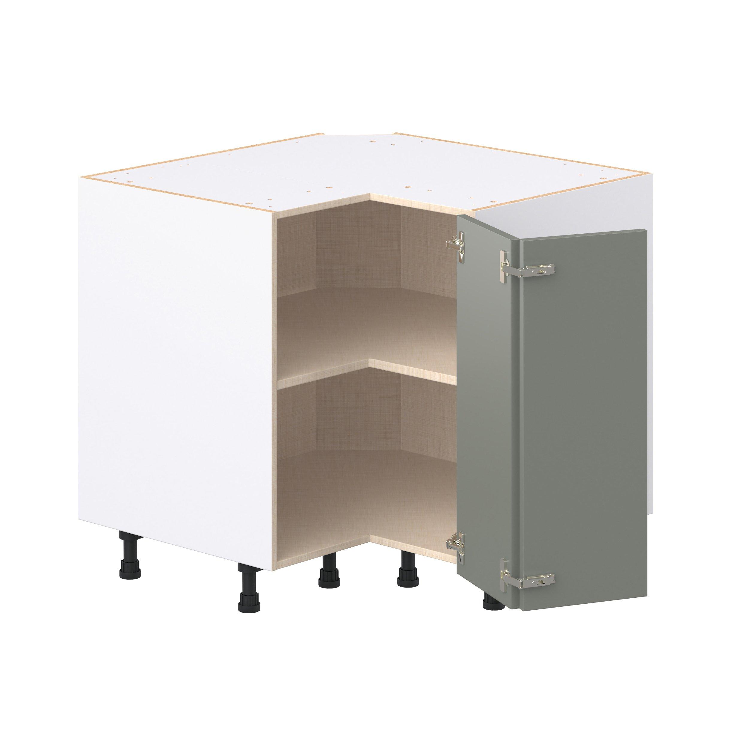 Enjoy a modern twist on a classic with Linden slim shaker cabinets. Available in premium-painted fresh washed linen and earthy moss green finishes, this collection exudes warmth and creates an inviting atmosphere Crafted from one-piece MDF Studio Design Collection Linden 36 in. Painted Moss Green Corner Base Cabinet is designed to resist hairline cracks while the easy-to-clean finish stands up to stains and moisture. Featuring 5-piece doors and dovetail drawer joints, these cabinets offer durability and elegance. This collection combines style with everyday storage solutions.