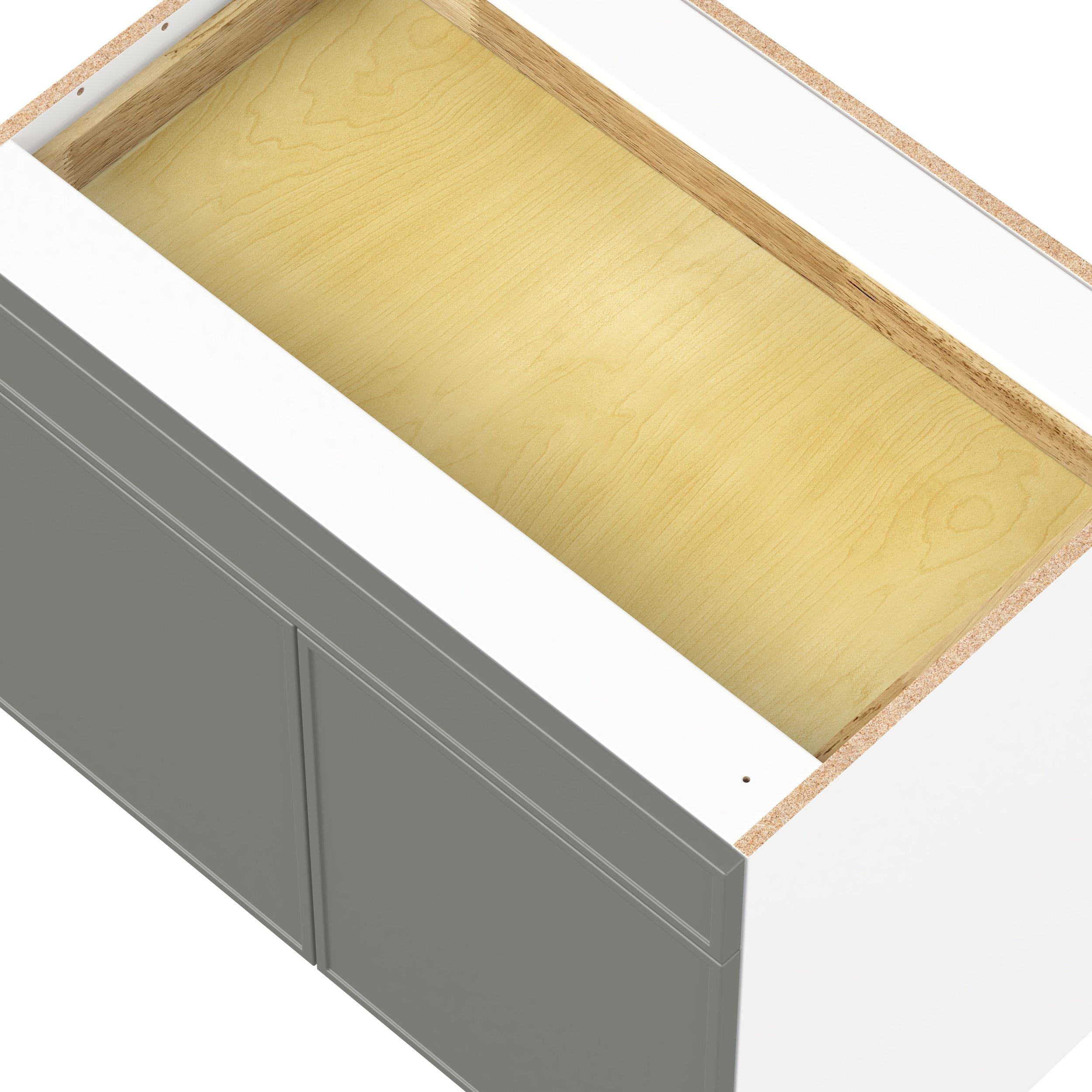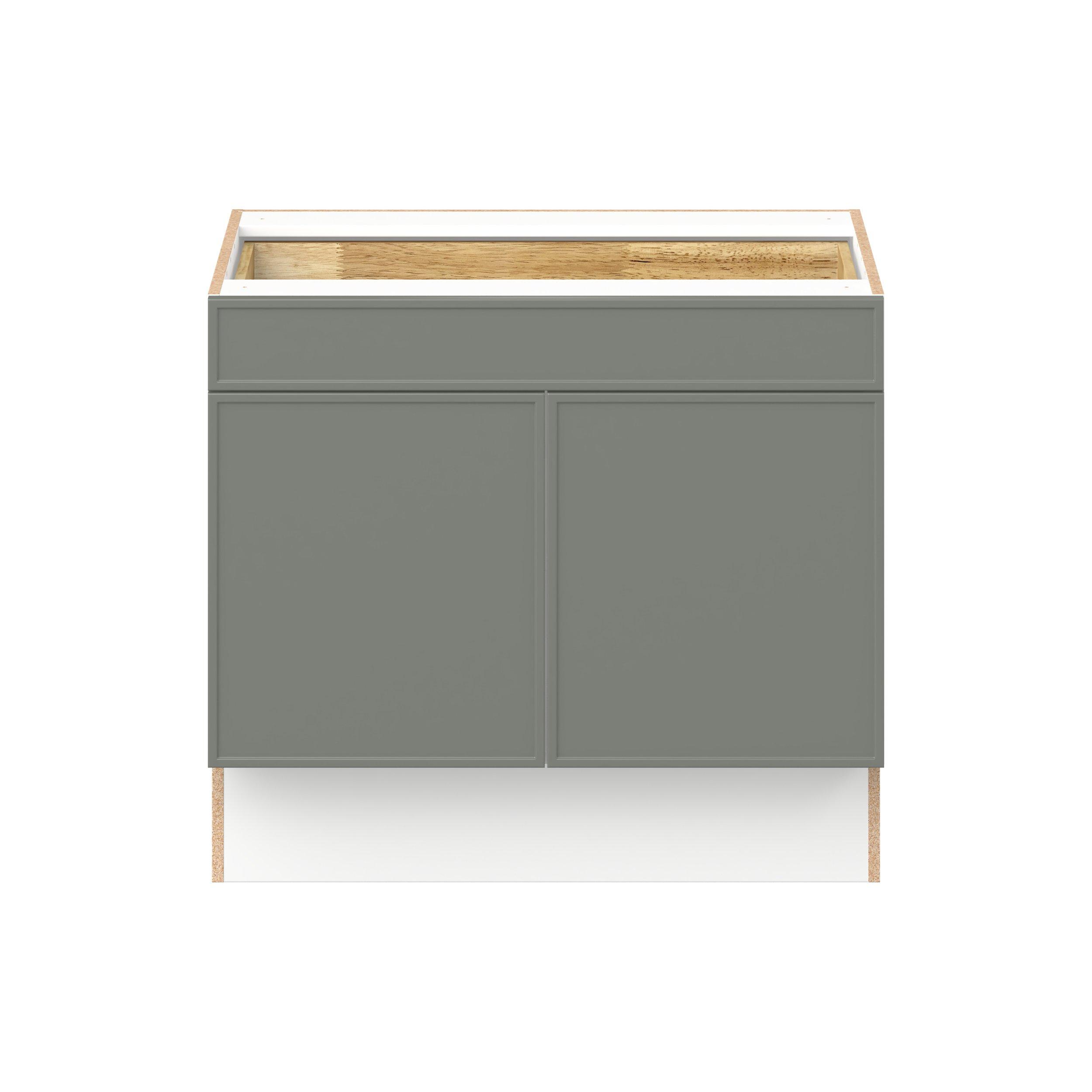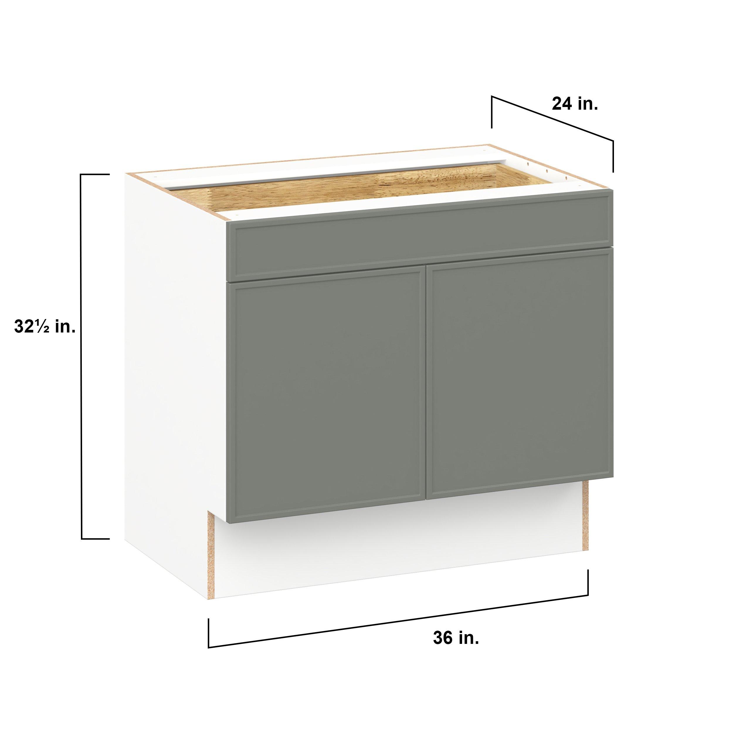 Enjoy a modern twist on a classic with Linden slim shaker cabinets. Available in premium-painted fresh washed linen and earthy moss green finishes, this collection exudes warmth and creates an inviting atmosphere Crafted from one-piece MDF Studio Design Collection Linden 36 in. Painted Moss Green Door and Drawer Base Cabinet is designed to resist hairline cracks while the easy-to-clean finish stands up to stains and moisture. Featuring 5-piece doors and dovetail drawer joints, these cabinets offer durability and elegance. This collection combines style with everyday storage solutions.