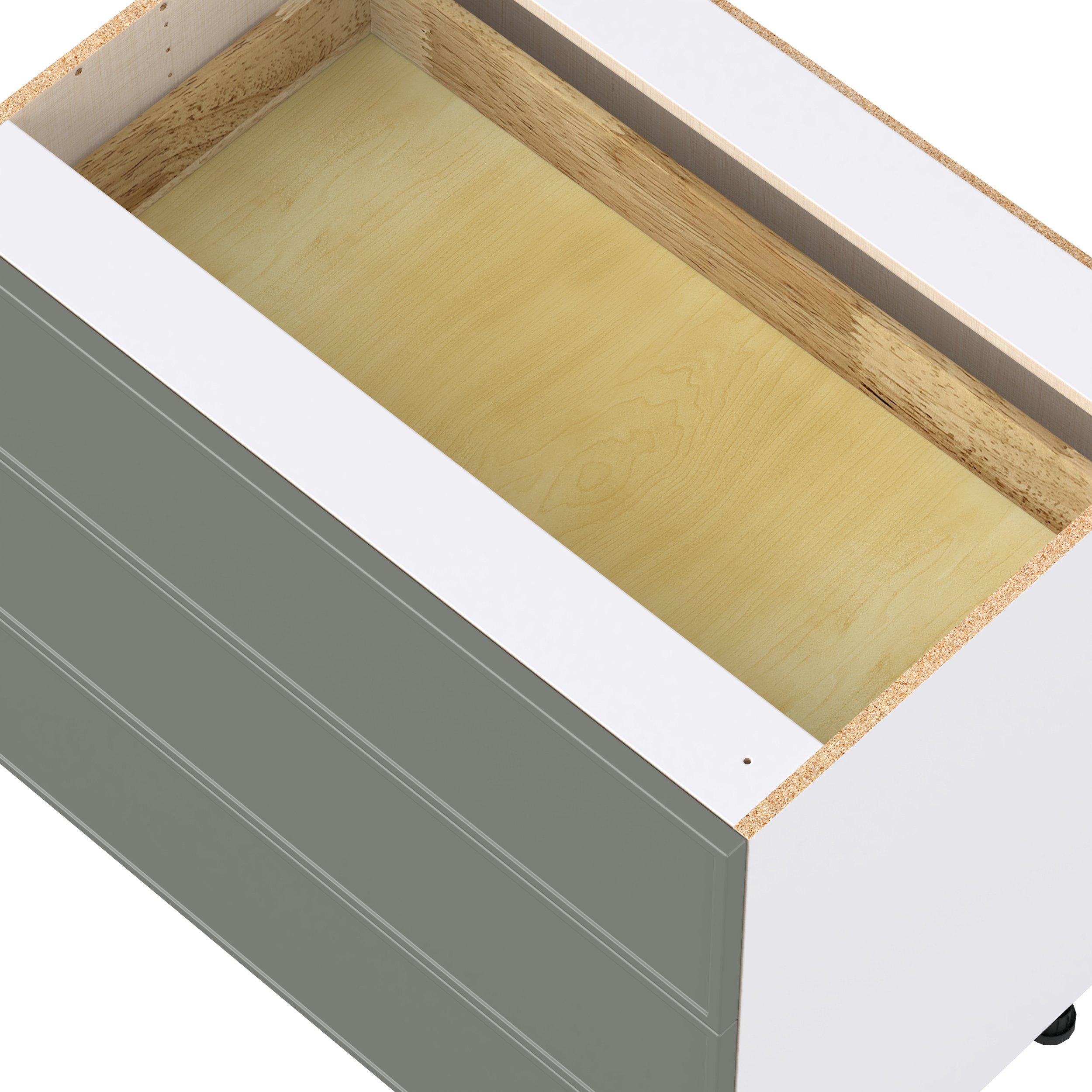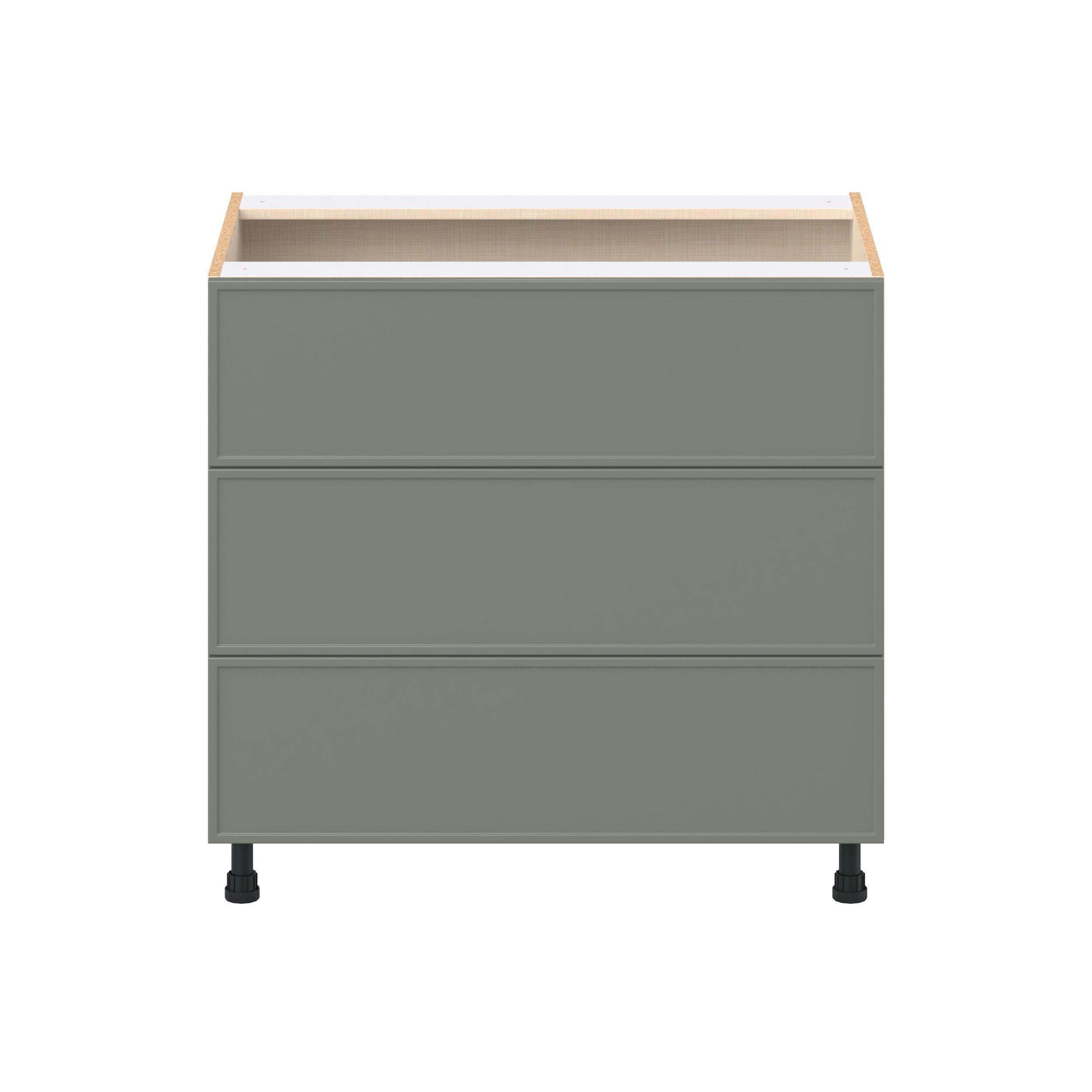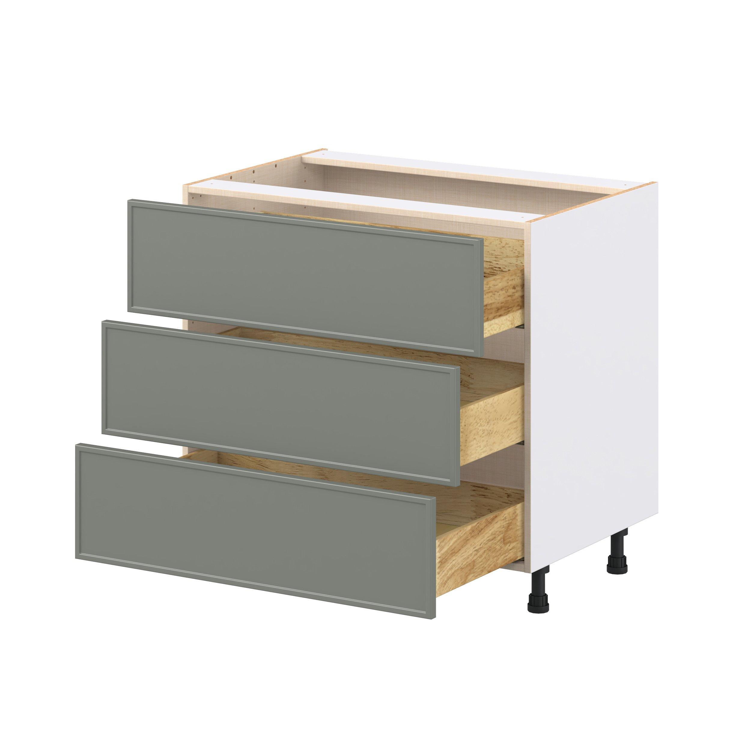Enjoy a modern twist on a classic with Linden slim shaker cabinets. Available in premium-painted fresh washed linen and earthy moss green finishes, this collection exudes warmth and creates an inviting atmosphere Crafted from one-piece MDF Studio Design Collection Linden 36 in. Painted Moss Green Drawer Base Cabinet is designed to resist hairline cracks while the easy-to-clean finish stands up to stains and moisture. Featuring 5-piece doors and dovetail drawer joints, these cabinets offer durability and elegance. This collection combines style with everyday storage solutions.