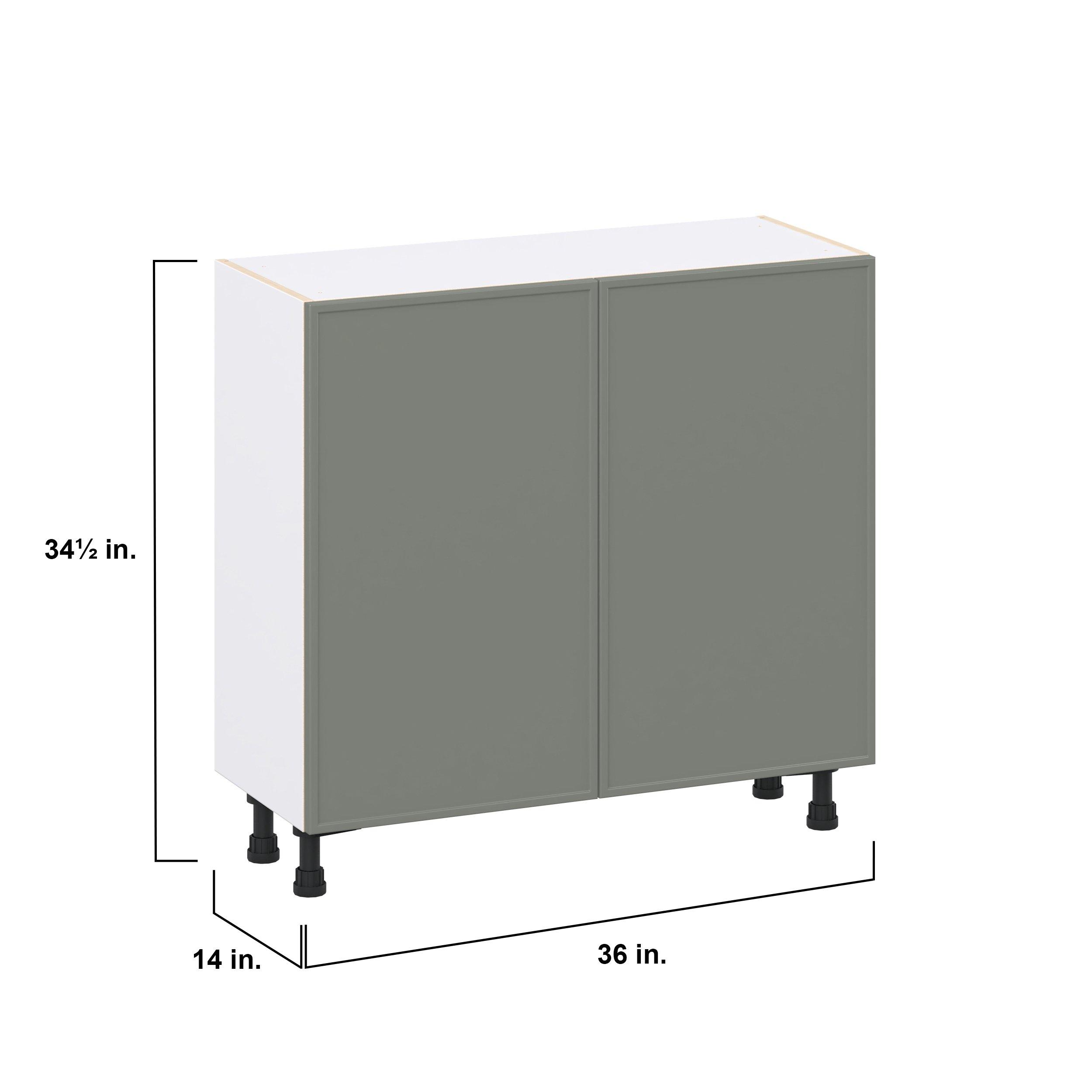 Enjoy a modern twist on a classic with Linden slim shaker cabinets. Available in premium-painted fresh washed linen and earthy moss green finishes, this collection exudes warmth and creates an inviting atmosphere Crafted from one-piece MDF Studio Design Collection Linden 36 in. Painted Moss Green Shallow Base Cabinet is designed to resist hairline cracks while the easy-to-clean finish stands up to stains and moisture. Featuring 5-piece doors and dovetail drawer joints, these cabinets offer durability and elegance. This collection combines style with everyday storage solutions.