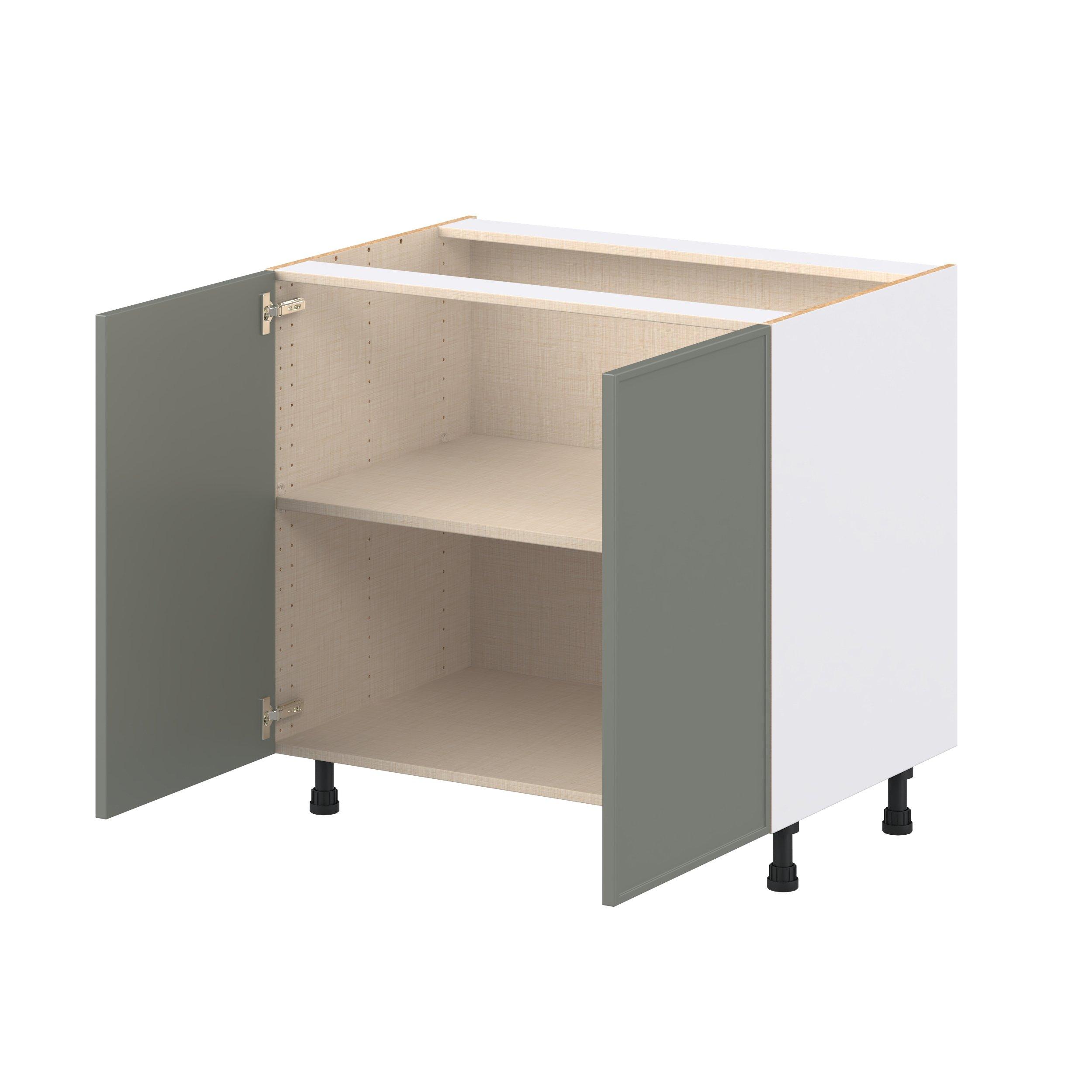 Enjoy a modern twist on a classic with Linden slim shaker cabinets. Available in premium-painted fresh washed linen and earthy moss green finishes, this collection exudes warmth and creates an inviting atmosphere Crafted from one-piece MDF Studio Design Collection Linden 36 in. Painted Moss Green Shallow Base Cabinet is designed to resist hairline cracks while the easy-to-clean finish stands up to stains and moisture. Featuring 5-piece doors and dovetail drawer joints, these cabinets offer durability and elegance. This collection combines style with everyday storage solutions.
