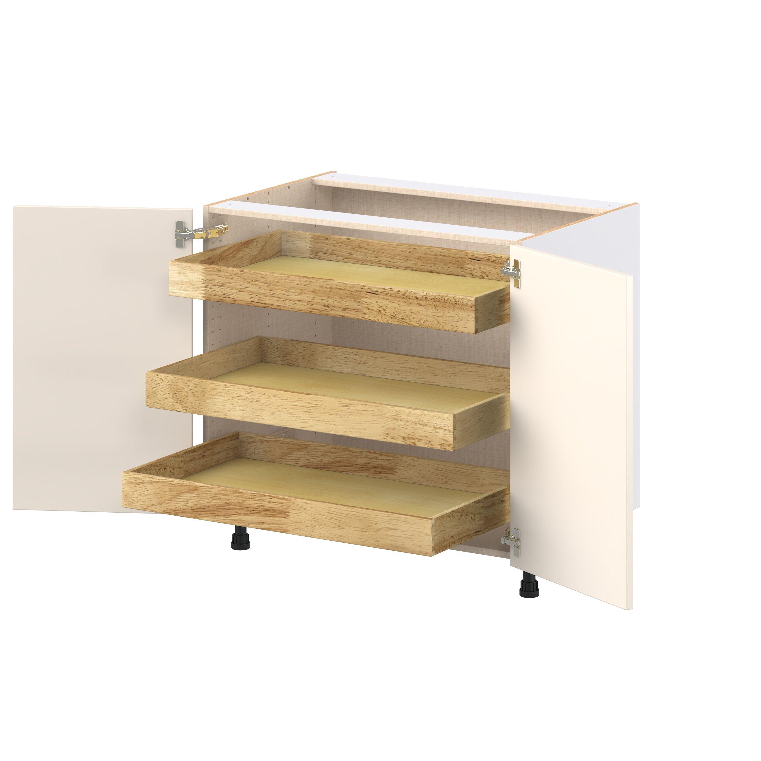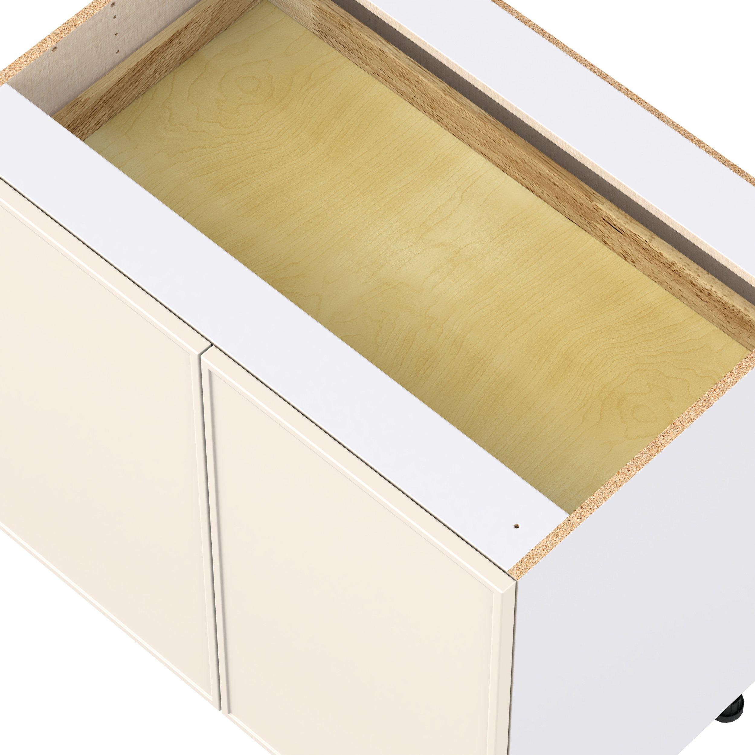 Enjoy a modern twist on a classic with Linden slim shaker cabinets. Available in premium-painted fresh washed linen and earthy moss green finishes, this collection exudes warmth and creates an inviting atmosphere Crafted from one-piece MDF Studio Design Collection Linden 36 in. Painted Washed Linen Base Cabinet with Inner Pull-Out Drawer is designed to resist hairline cracks while the easy-to-clean finish stands up to stains and moisture. Featuring 5-piece doors and dovetail drawer joints, these cabinets offer durability and elegance. This collection combines style with everyday storage solutions.