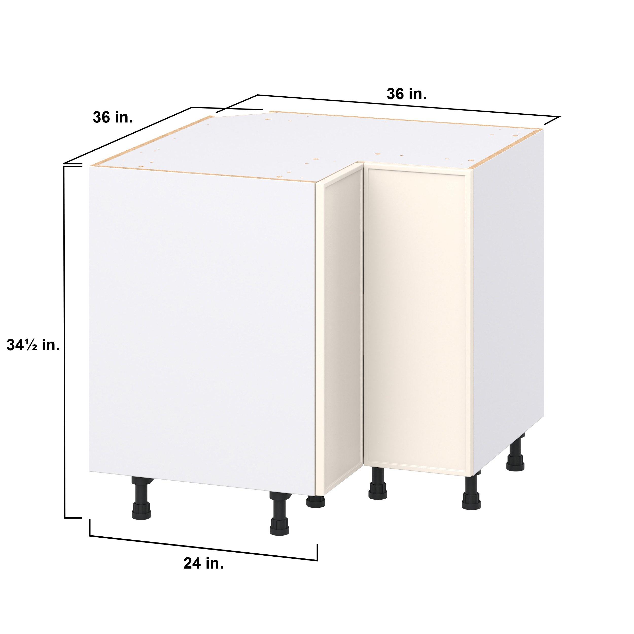 Enjoy a modern twist on a classic with Linden slim shaker cabinets. Available in premium-painted fresh washed linen and earthy moss green finishes, this collection exudes warmth and creates an inviting atmosphere Crafted from one-piece MDF Studio Design Collection Linden 36 in. Painted Washed Linen Lazy Susan Corner Base Cabinet is designed to resist hairline cracks while the easy-to-clean finish stands up to stains and moisture. Featuring 5-piece doors and dovetail drawer joints, these cabinets offer durability and elegance. This collection combines style with everyday storage solutions.