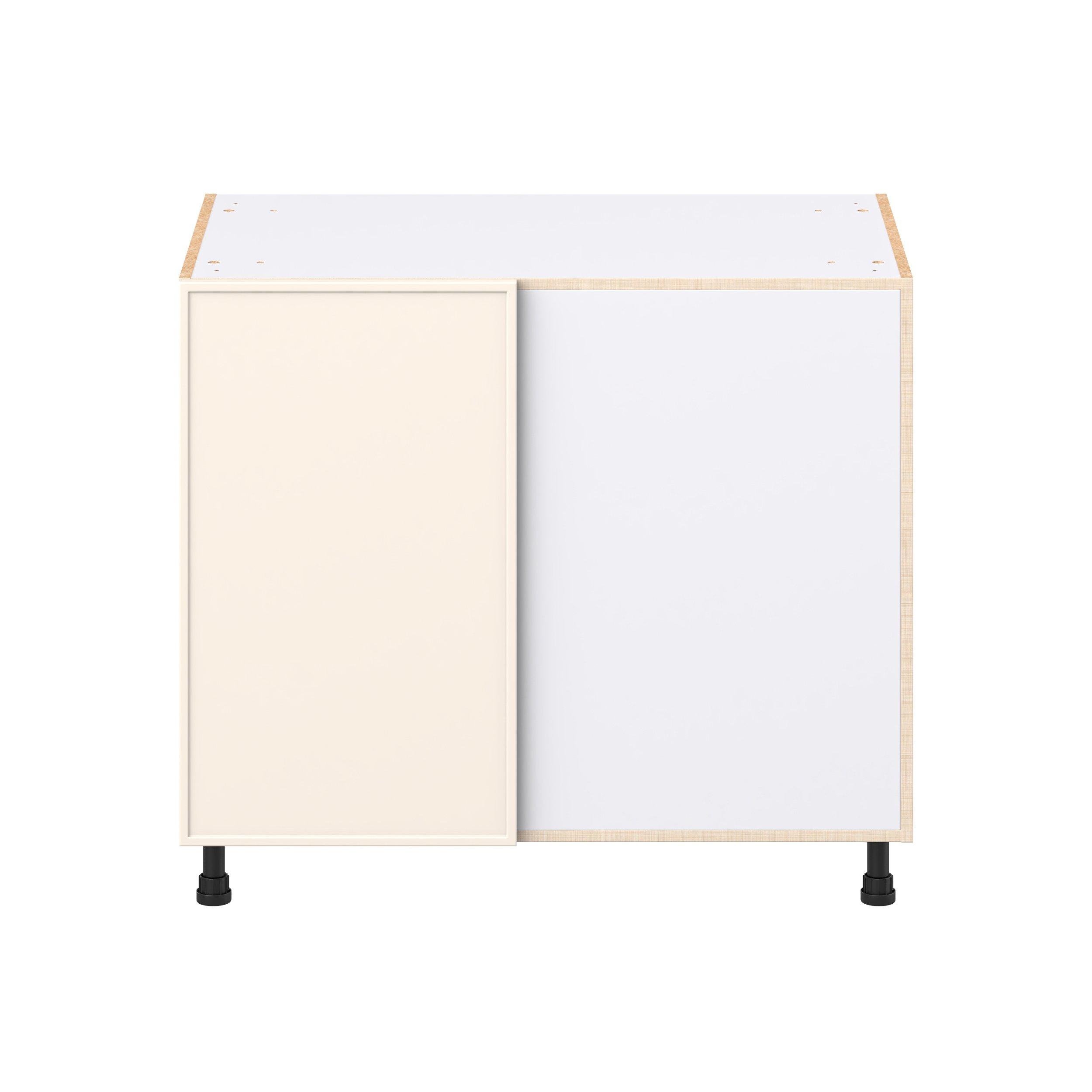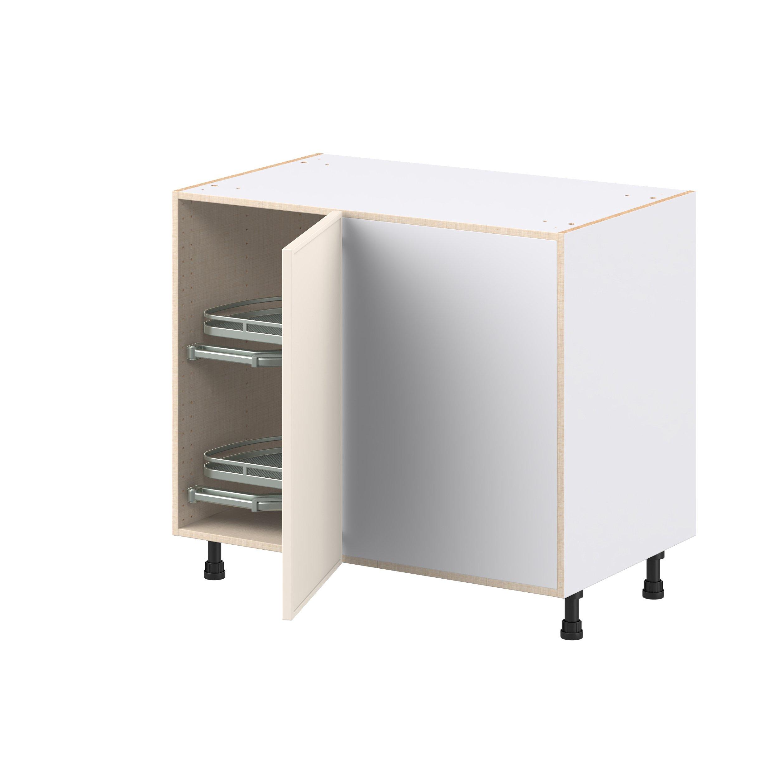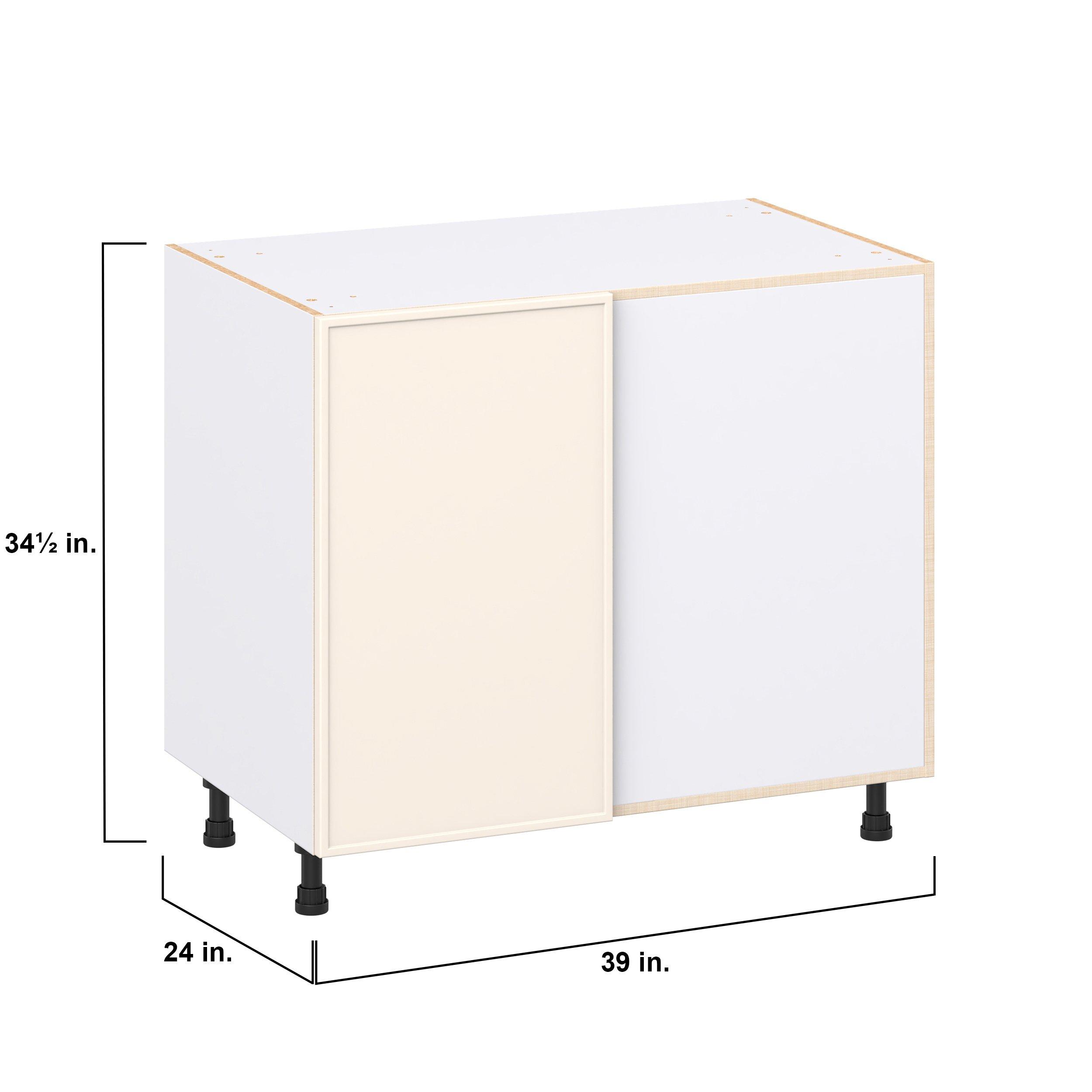Enjoy a modern twist on a classic with Linden slim shaker cabinets. Available in premium-painted fresh washed linen and earthy moss green finishes, this collection exudes warmth and creates an inviting atmosphere Crafted from one-piece MDF Studio Design Collection Linden 39 in. Painted Washed Linen Lemans Swing Out Blind Corner Base Cabinet is designed to resist hairline cracks while the easy-to-clean finish stands up to stains and moisture. Featuring 5-piece doors and dovetail drawer joints, these cabinets offer durability and elegance. This collection combines style with everyday storage solutions.