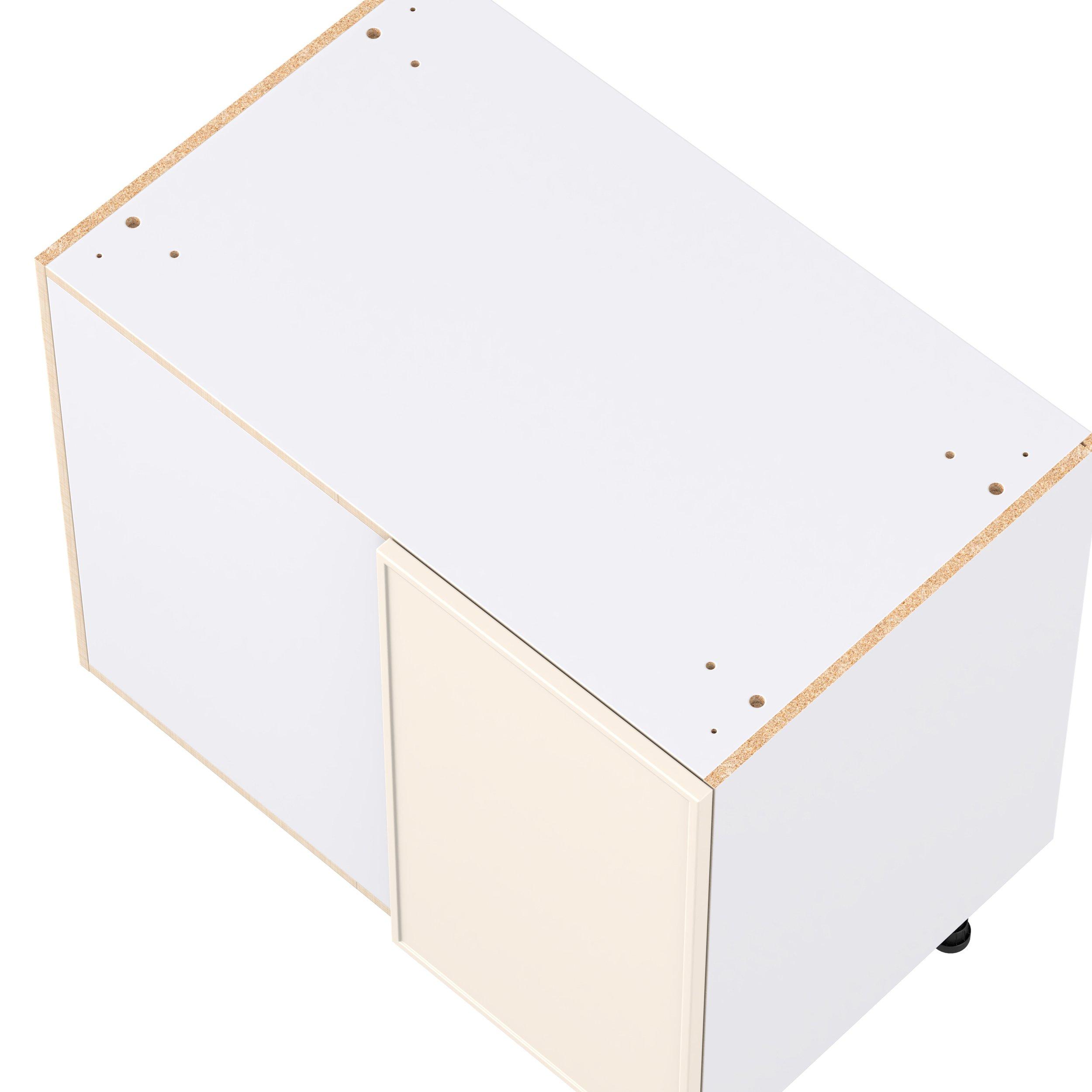 Enjoy a modern twist on a classic with Linden slim shaker cabinets. Available in premium-painted fresh washed linen and earthy moss green finishes, this collection exudes warmth and creates an inviting atmosphere Crafted from one-piece MDF Studio Design Collection Linden 39 in. Painted Washed Linen Lemans Swing Out Blind Corner Base Cabinet is designed to resist hairline cracks while the easy-to-clean finish stands up to stains and moisture. Featuring 5-piece doors and dovetail drawer joints, these cabinets offer durability and elegance. This collection combines style with everyday storage solutions.