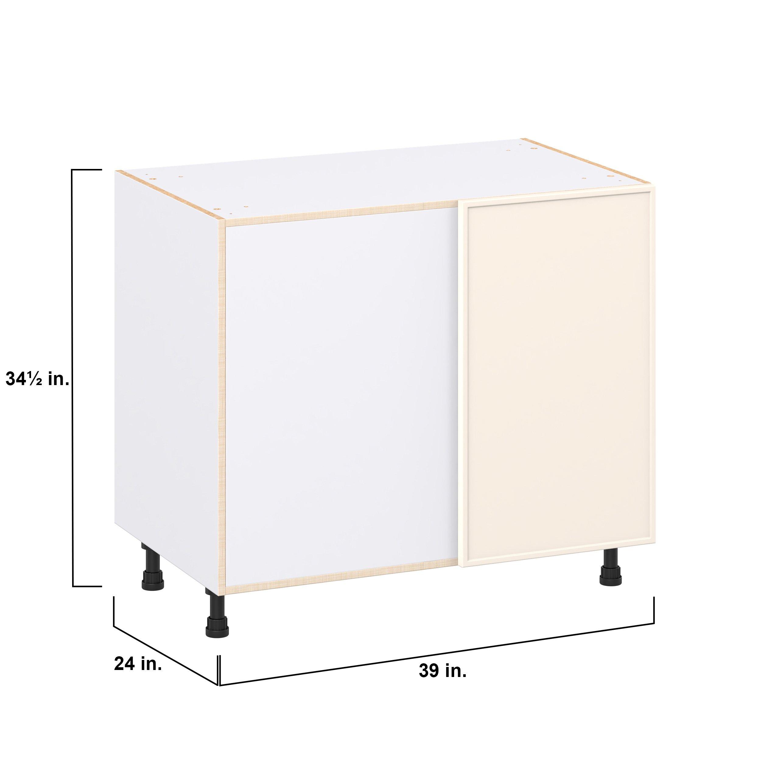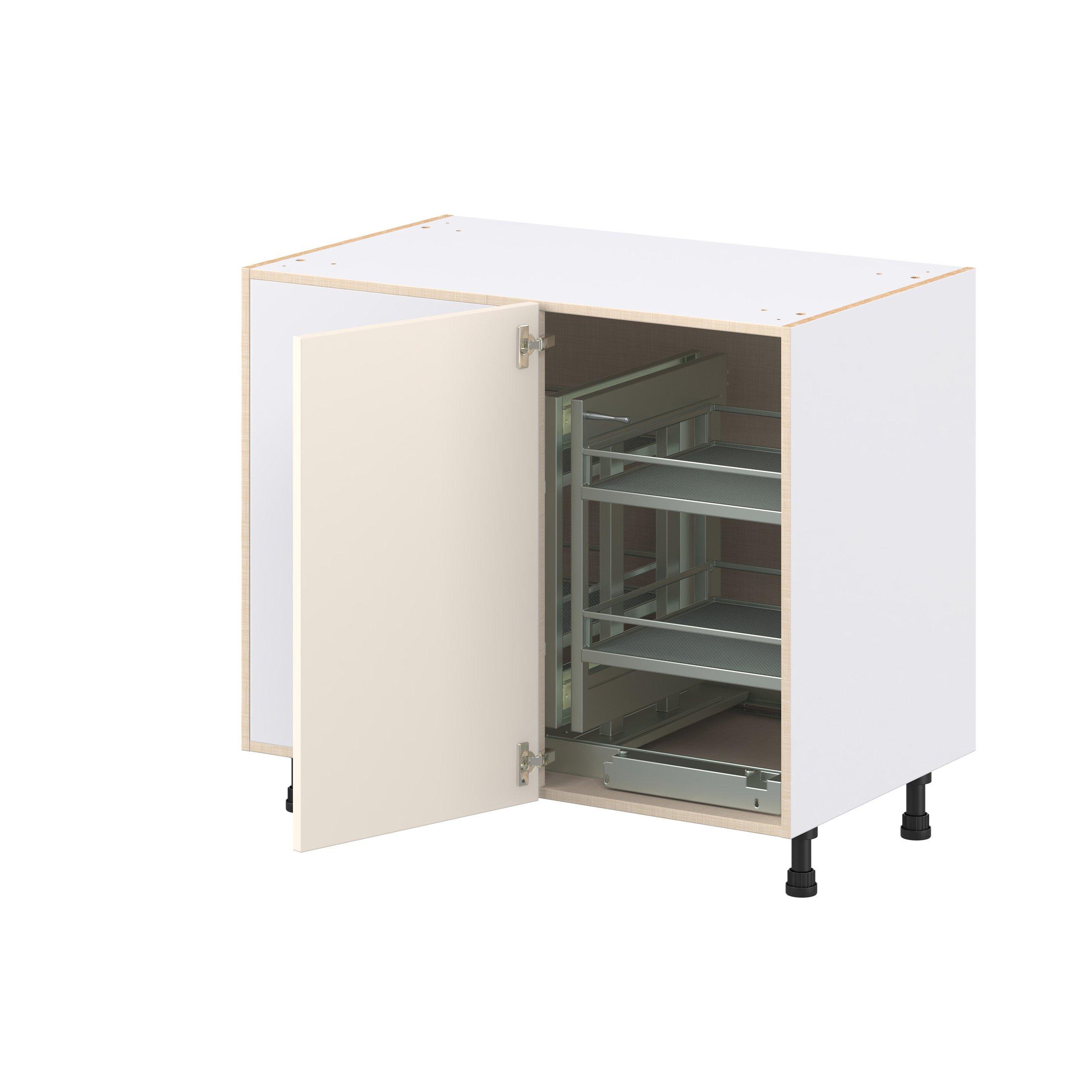 Enjoy a modern twist on a classic with Linden slim shaker cabinets. Available in premium-painted fresh washed linen and earthy moss green finishes, this collection exudes warmth and creates an inviting atmosphere Crafted from one-piece MDF Studio Design Collection Linden 39 in. Painted Washed Linen Swing Out Blind Corner Base Cabinet is designed to resist hairline cracks while the easy-to-clean finish stands up to stains and moisture. Featuring 5-piece doors and dovetail drawer joints, these cabinets offer durability and elegance. This collection combines style with everyday storage solutions.