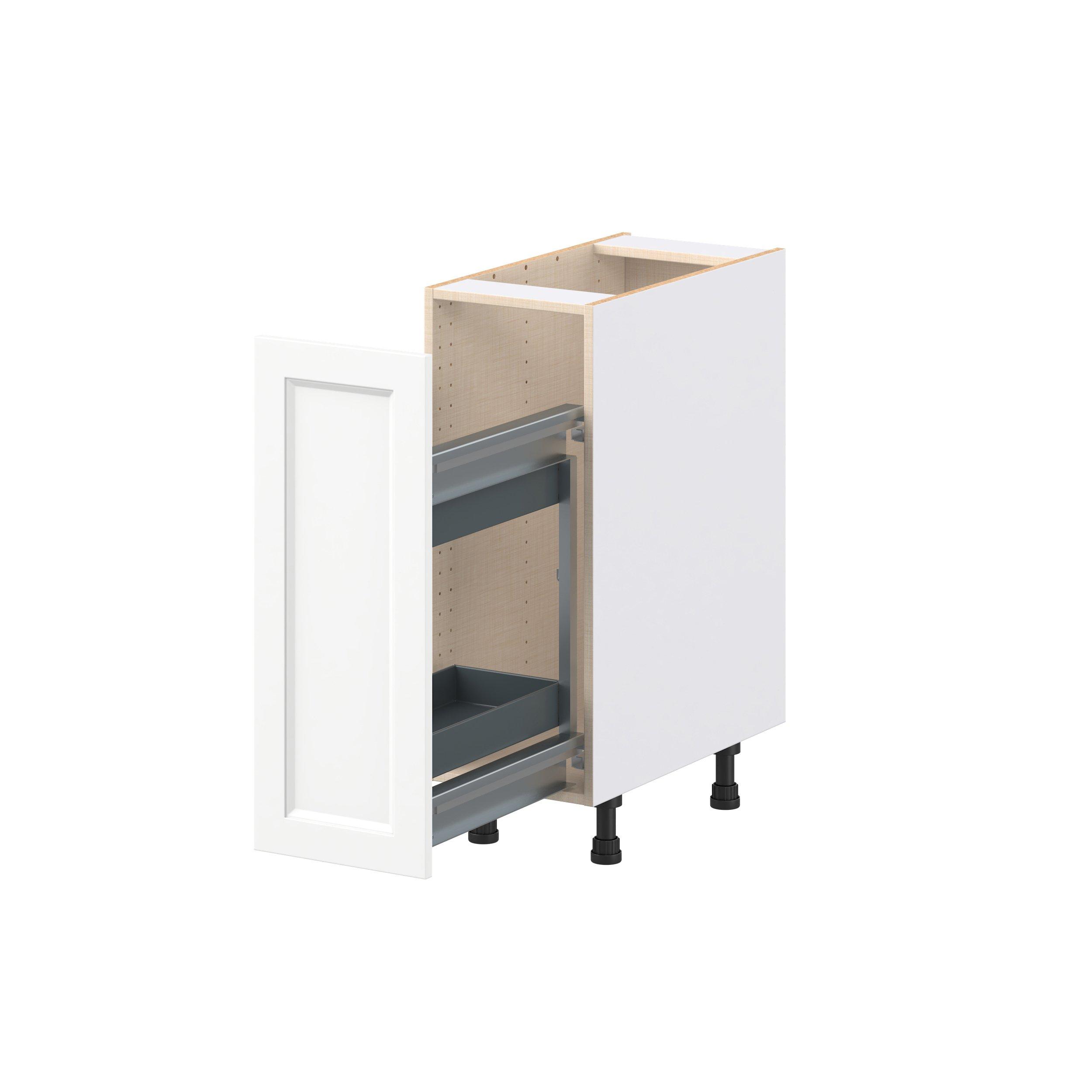 Make a statement with Peachtree premium painted shaker-inspired cabinets, offering both style and durability for years to come. Available in classic bright white and rich midnight blue, this collection is designed to fit seamlessly into both modern and transitional interiors. Crafted from one-piece MDF Studio Design Collection Peachtree 12 in. Painted Bright White Spice Rack Pull-Out Base Cabinet is designed to resist hairline cracks while the easy-to-clean finish stands up to stains and moisture. Featuring 5-piece doors and dovetail drawer joints, these cabinets offer durability and elegance. This collection combines style with everyday storage solutions.