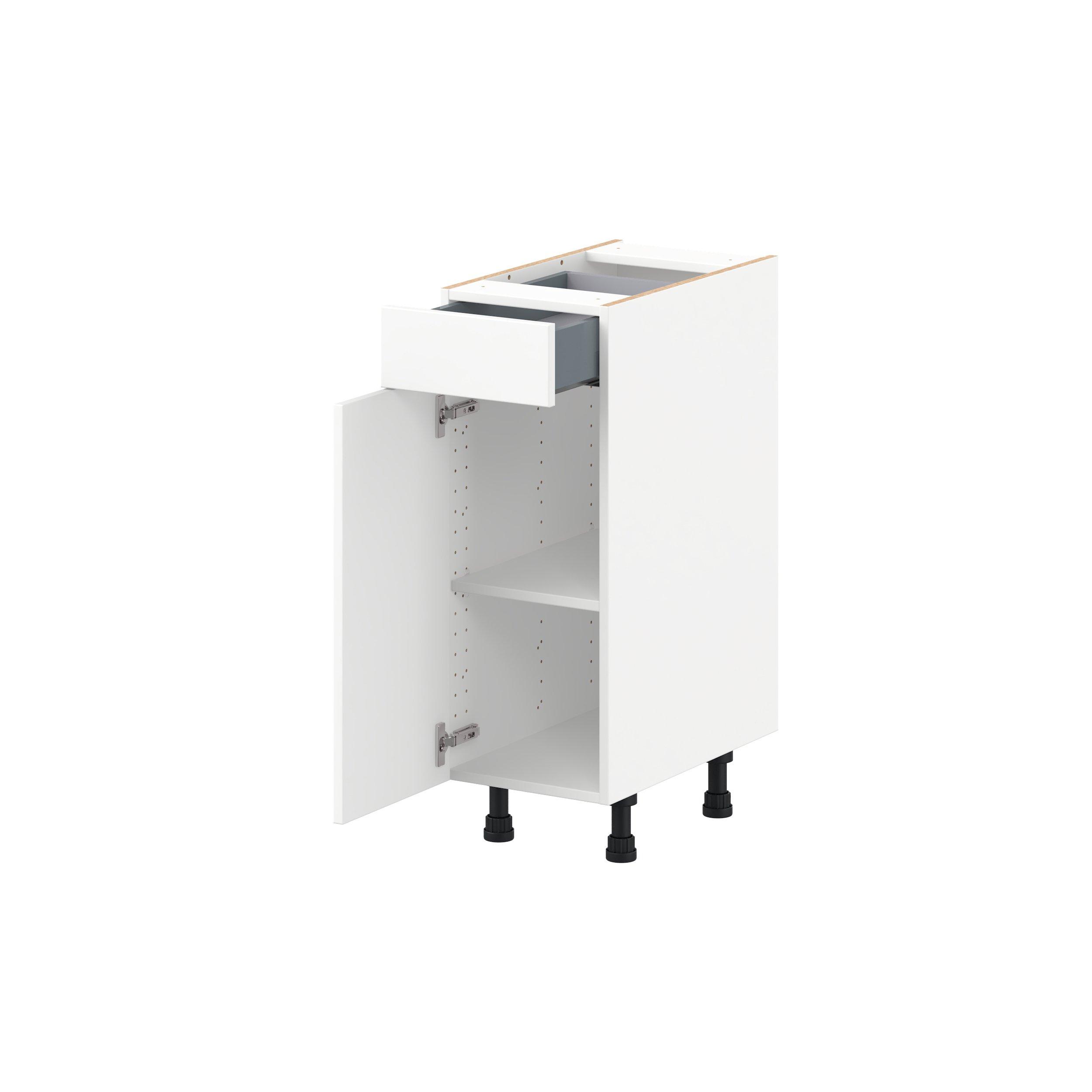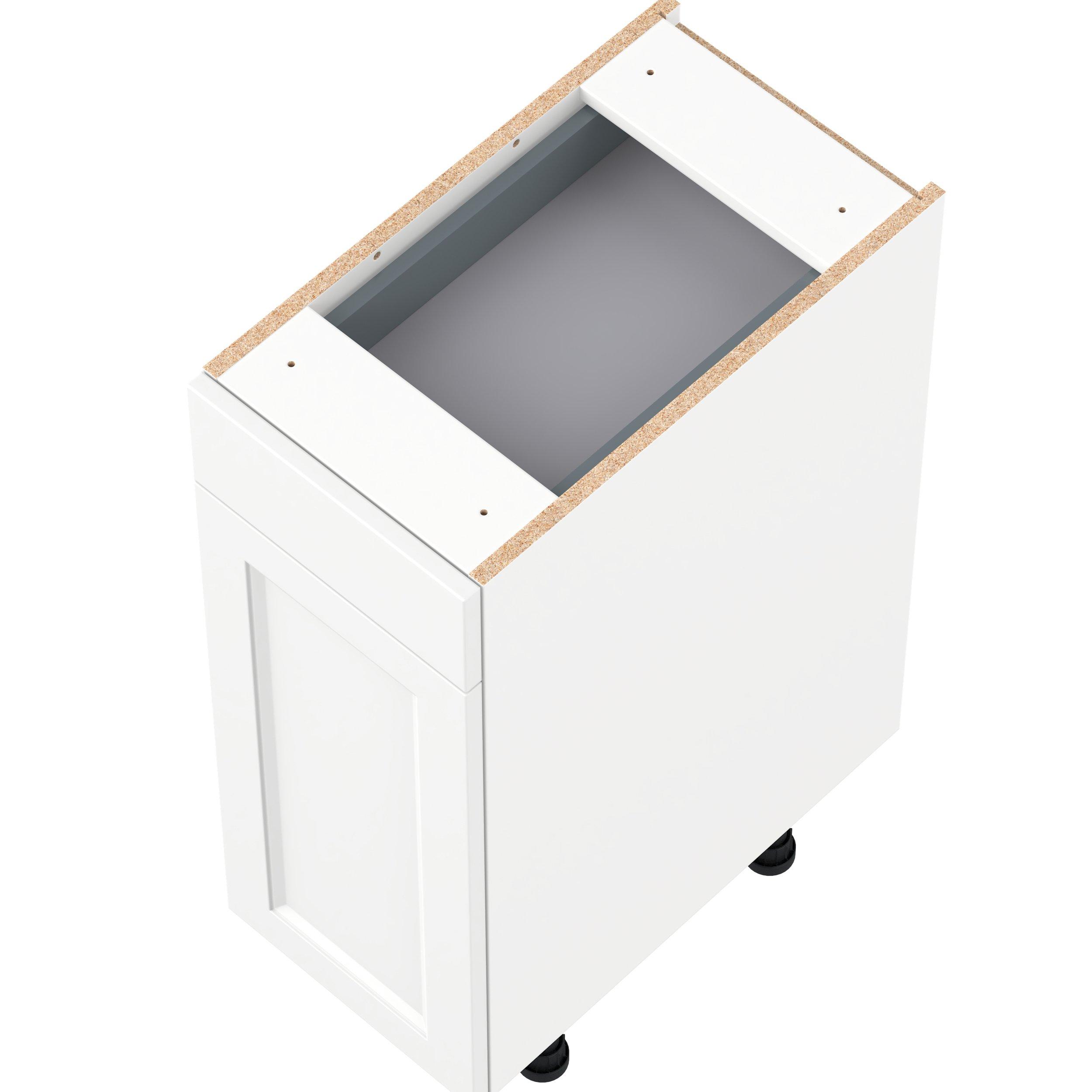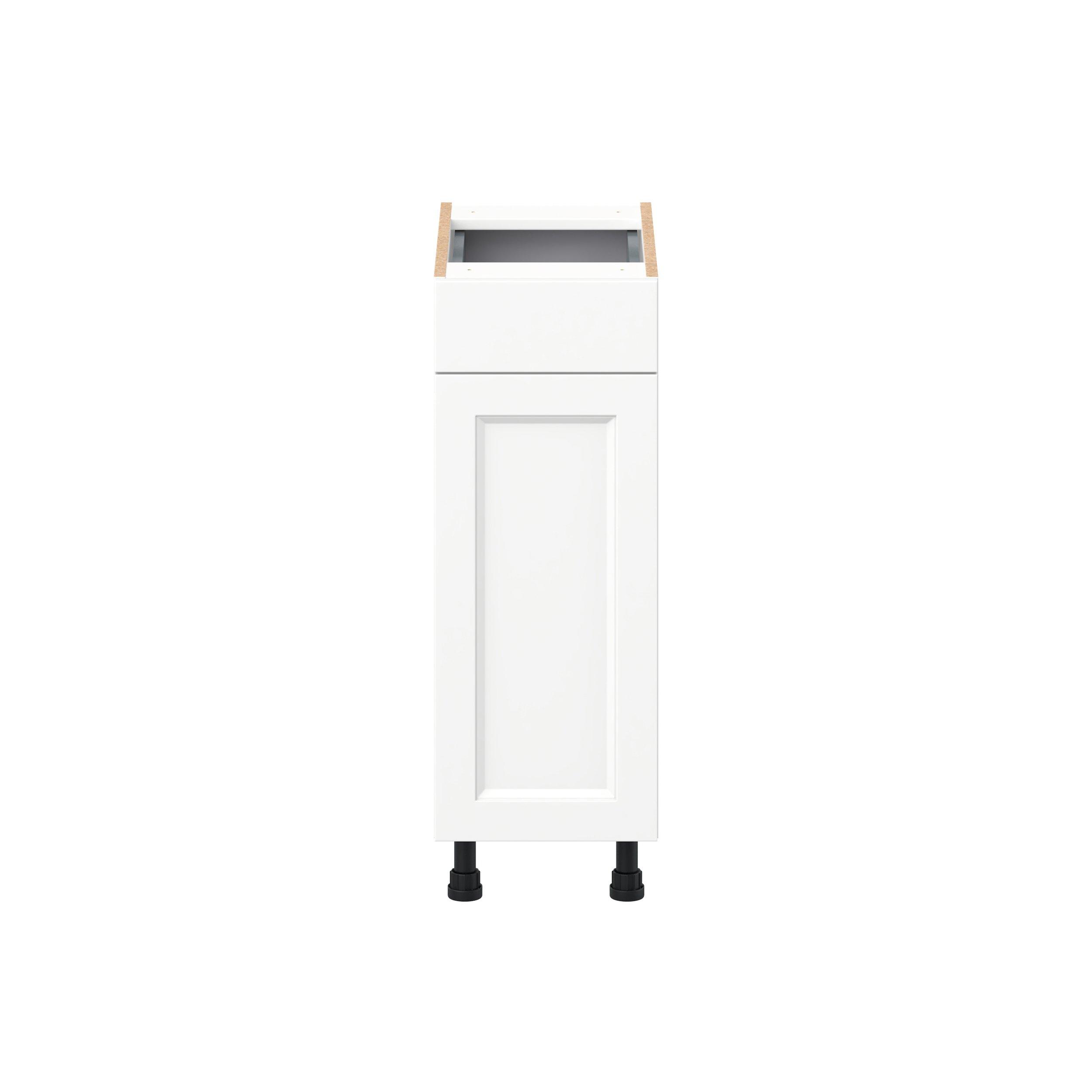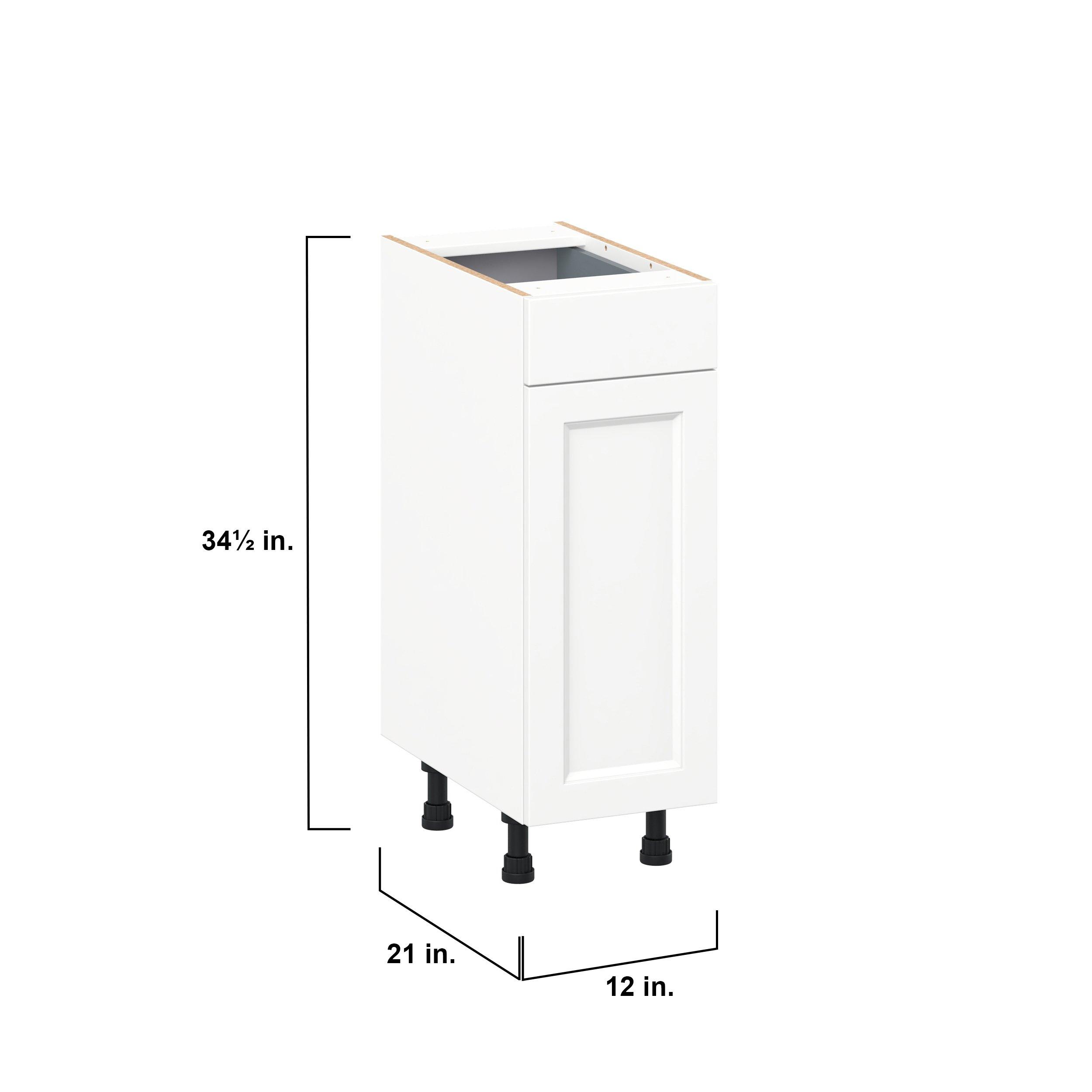 Make a statement with Peachtree premium painted shaker-inspired cabinets, offering both style and durability for years to come. Available in classic bright white and rich midnight blue, this collection is designed to fit seamlessly into both modern and transitional interiors. Crafted from one-piece MDF Studio Design Collection Peachtree 12 in. Painted Bright White Vanity Door and Drawer Base Cabinet is designed to resist hairline cracks while the easy-to-clean finish stands up to stains and moisture. Featuring 5-piece doors and dovetail drawer joints, these cabinets offer durability and elegance. This collection combines style with everyday storage solutions.