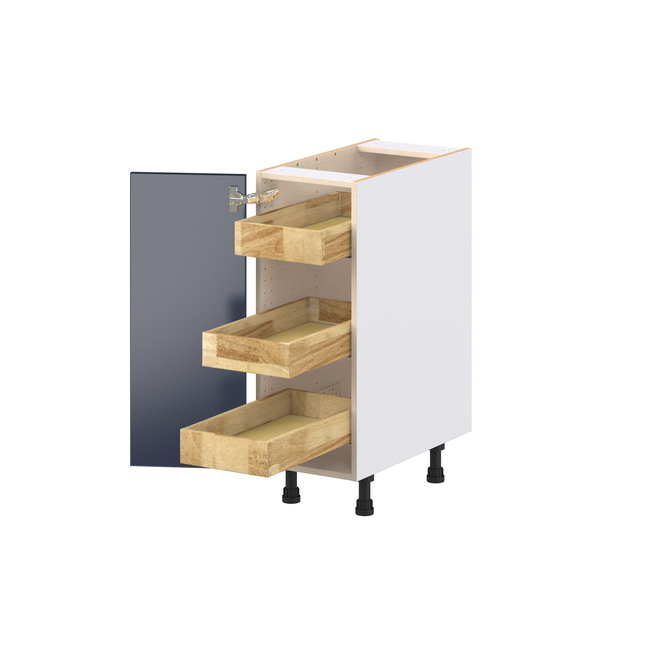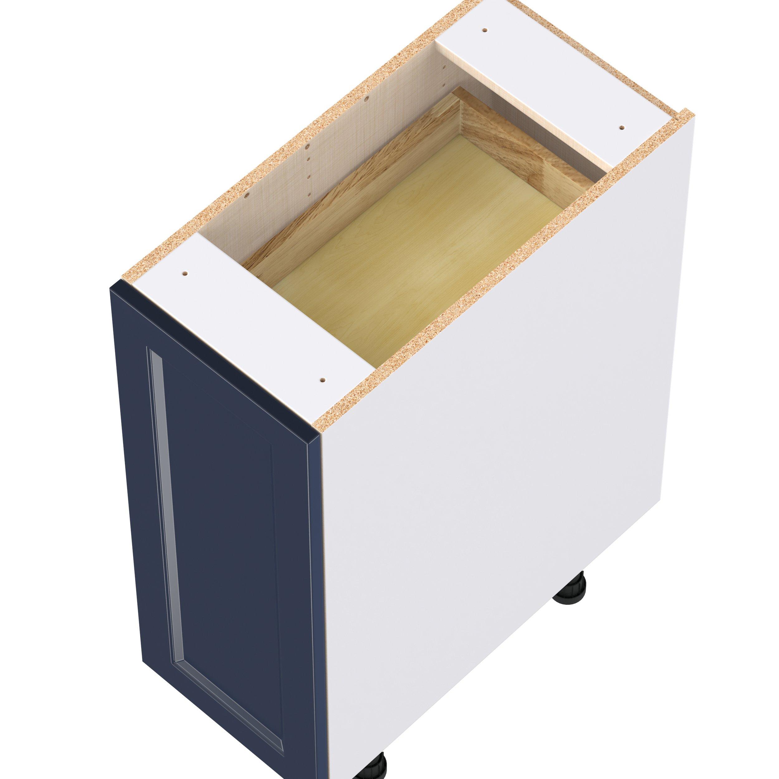 Make a statement with Peachtree premium painted shaker-inspired cabinets, offering both style and durability for years to come. Available in classic bright white and rich midnight blue, this collection is designed to fit seamlessly into both modern and transitional interiors. Crafted from one-piece MDF Studio Design Collection Peachtree 12 in. Painted Midnight Blue Base Cabinet with Inner Pull-Out Drawer is designed to resist hairline cracks while the easy-to-clean finish stands up to stains and moisture. Featuring 5-piece doors and dovetail drawer joints, these cabinets offer durability and elegance. This collection combines style with everyday storage solutions.