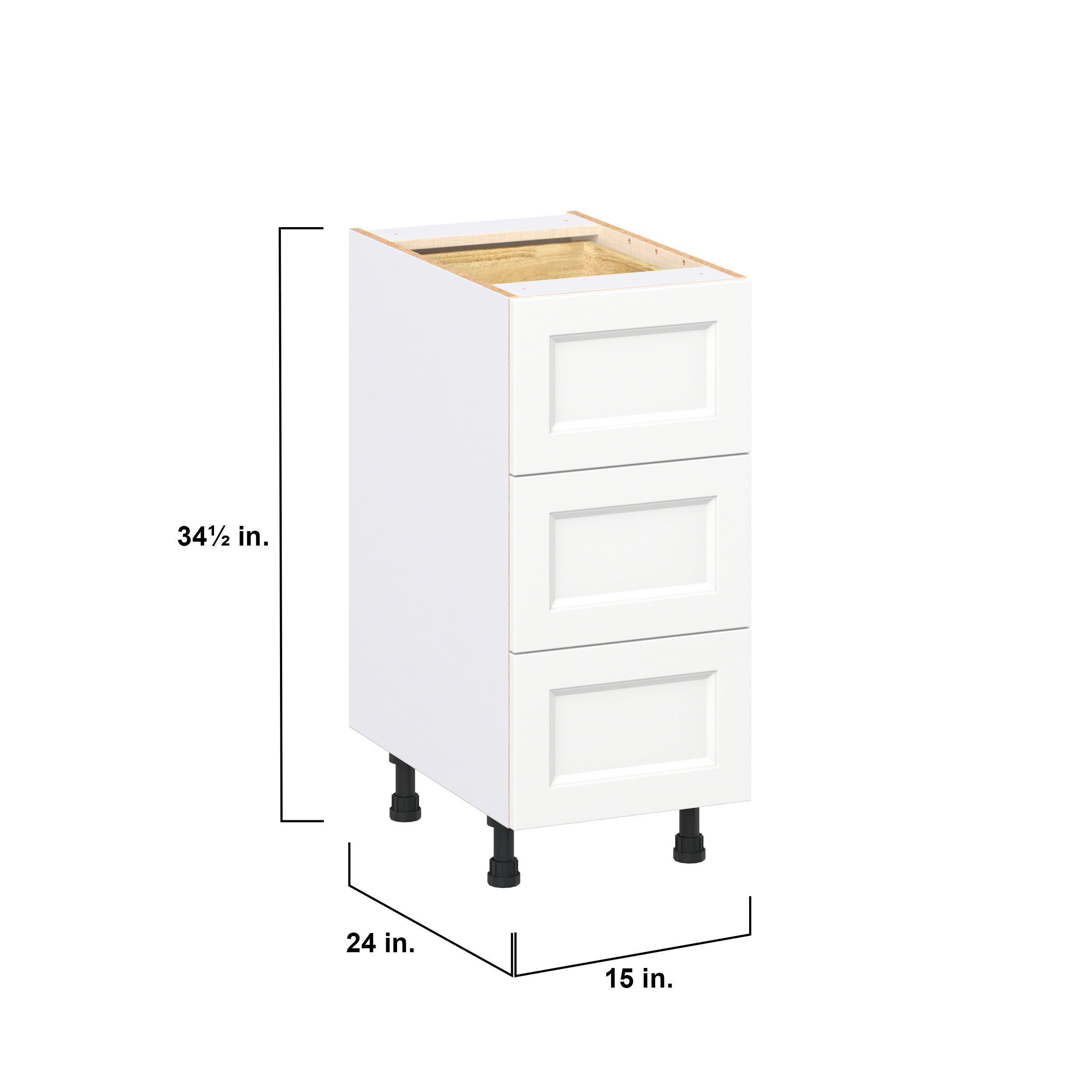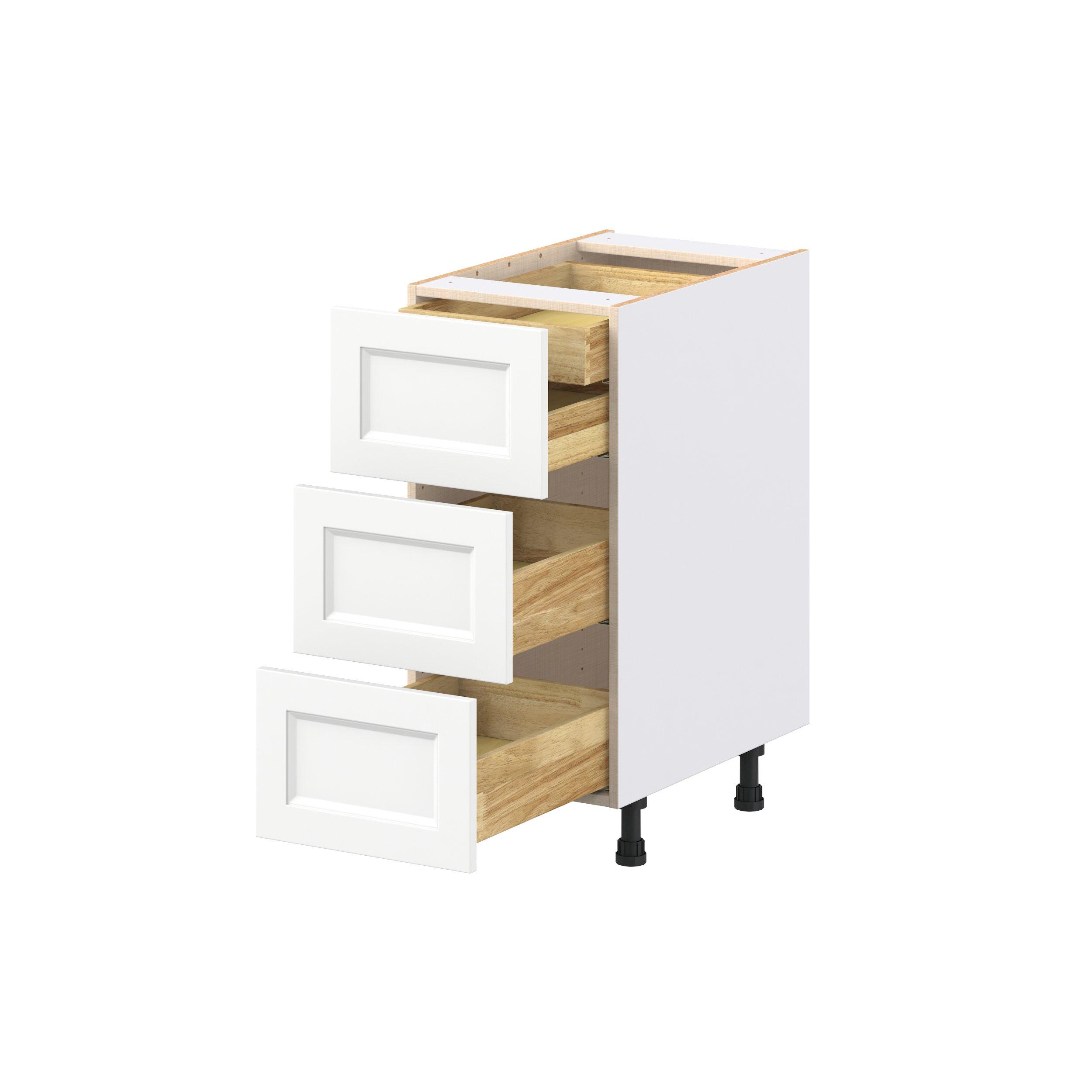 Make a statement with Peachtree premium painted shaker-inspired cabinets, offering both style and durability for years to come. Available in classic bright white and rich midnight blue, this collection is designed to fit seamlessly into both modern and transitional interiors. Crafted from one-piece MDF Studio Design Collection Peachtree 15 in. Painted Bright White Base Cabinet with Inner Pull-Out Drawer is designed to resist hairline cracks while the easy-to-clean finish stands up to stains and moisture. Featuring 5-piece doors and dovetail drawer joints, these cabinets offer durability and elegance. This collection combines style with everyday storage solutions.