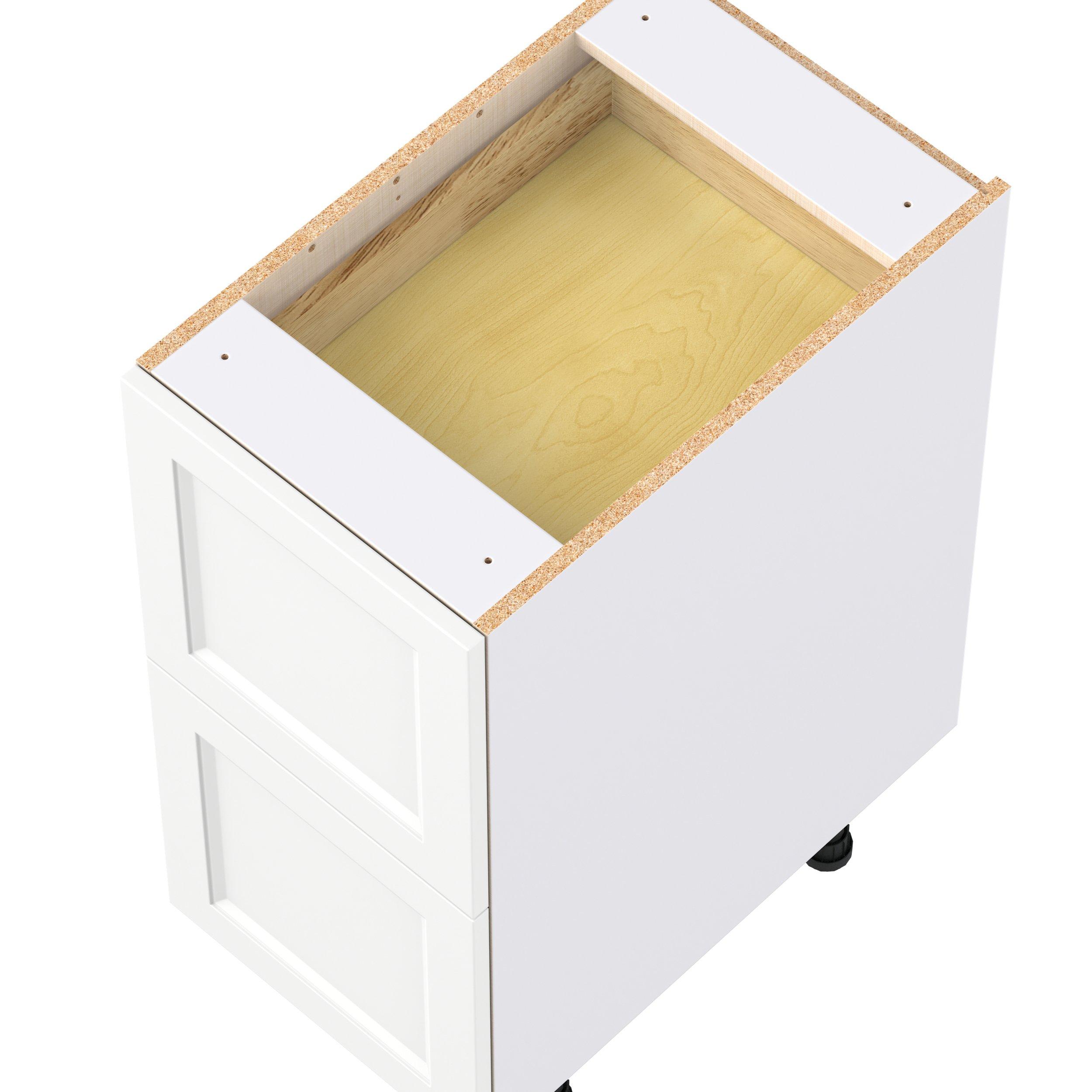 Make a statement with Peachtree premium painted shaker-inspired cabinets, offering both style and durability for years to come. Available in classic bright white and rich midnight blue, this collection is designed to fit seamlessly into both modern and transitional interiors. Crafted from one-piece MDF Studio Design Collection Peachtree 15 in. Painted Bright White Base Cabinet with Inner Pull-Out Drawer is designed to resist hairline cracks while the easy-to-clean finish stands up to stains and moisture. Featuring 5-piece doors and dovetail drawer joints, these cabinets offer durability and elegance. This collection combines style with everyday storage solutions.