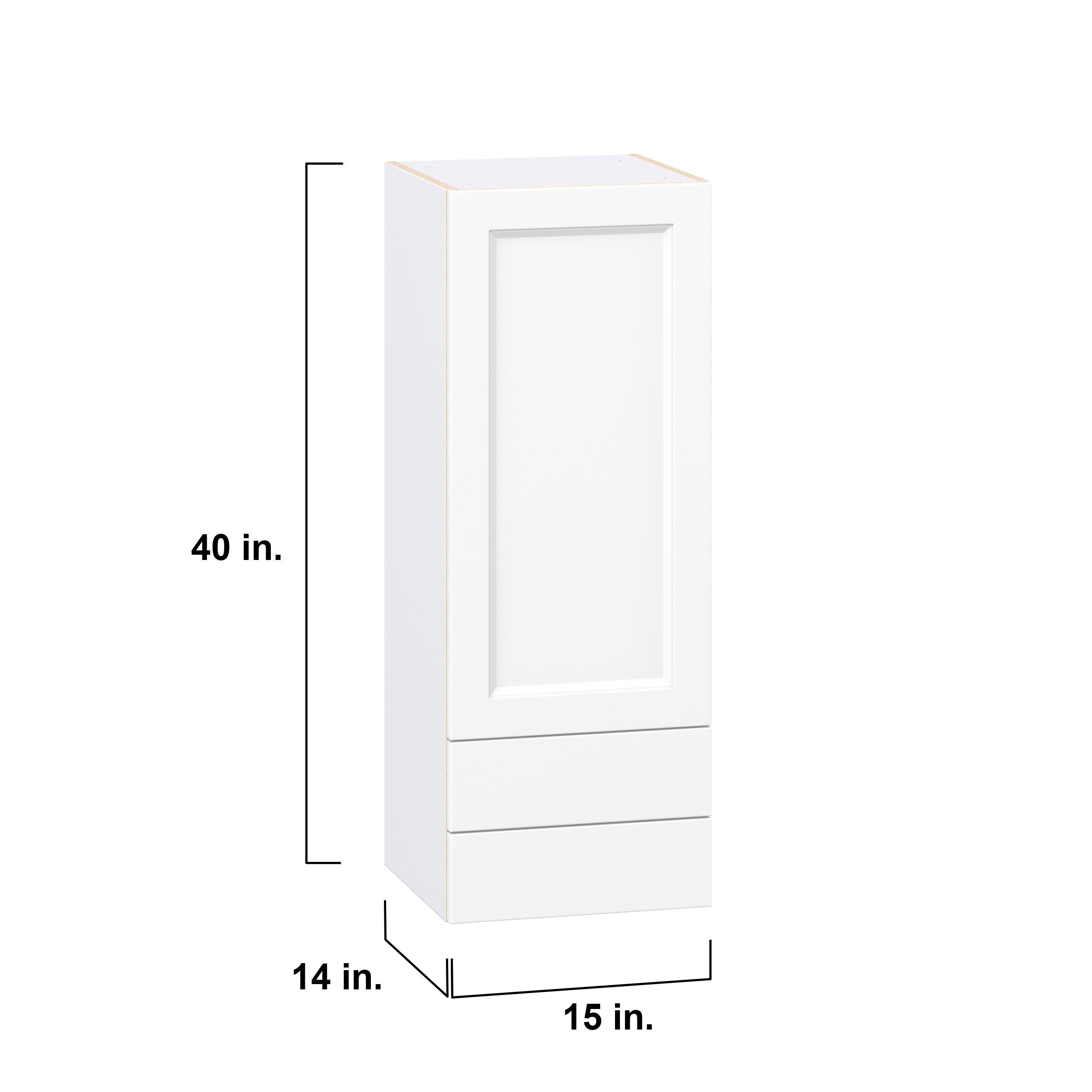 Make a statement with Peachtree premium painted shaker-inspired cabinets, offering both style and durability for years to come. Available in classic bright white and rich midnight blue, this collection is designed to fit seamlessly into both modern and transitional interiors. Crafted from one-piece MDF Studio Design Collection Peachtree 15 in. Painted Bright White Door and Drawer Wall Cabinet is designed to resist hairline cracks while the easy-to-clean finish stands up to stains and moisture. Featuring 5-piece doors and dovetail drawer joints, these cabinets offer durability and elegance. This collection combines style with everyday storage solutions.