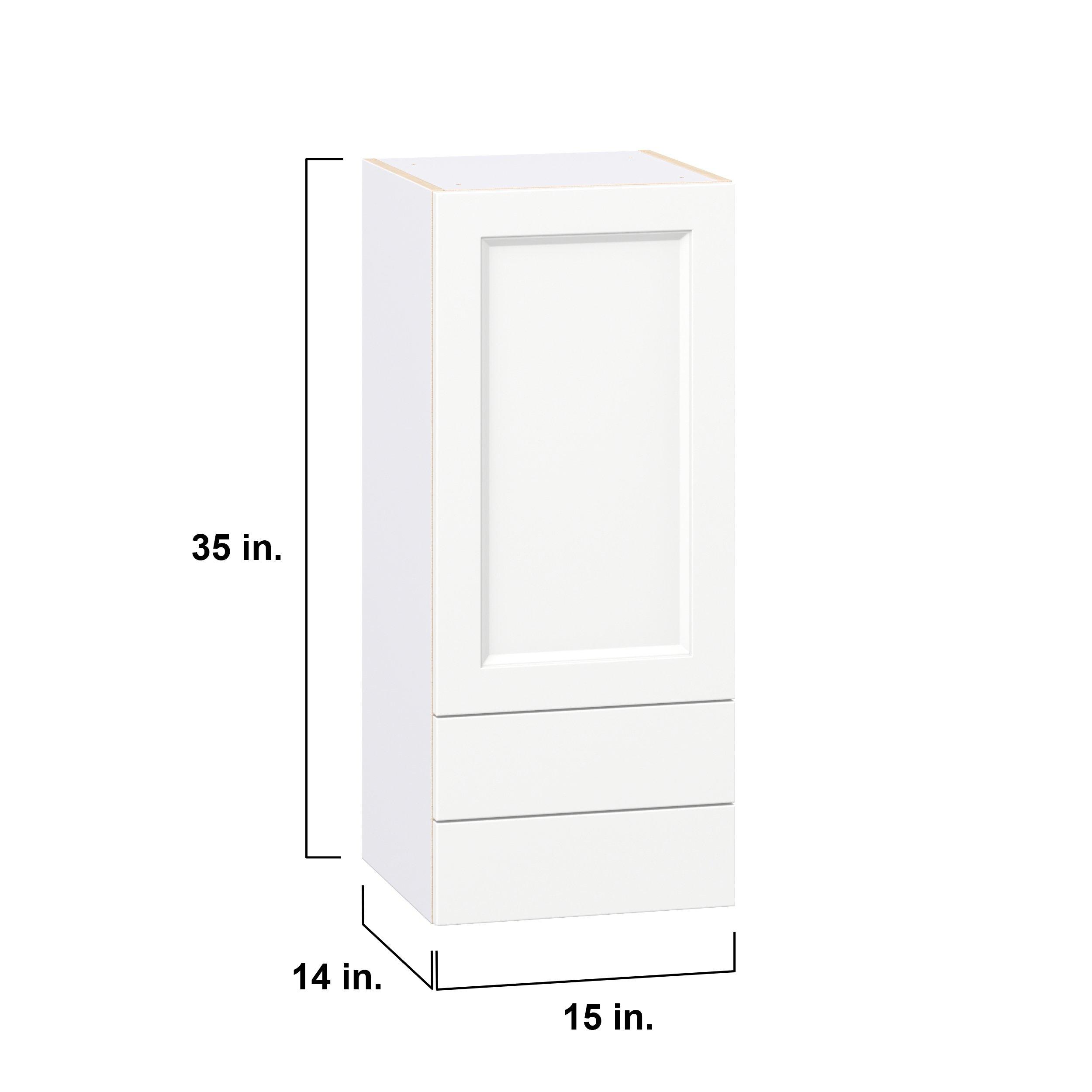 Make a statement with Peachtree premium painted shaker-inspired cabinets, offering both style and durability for years to come. Available in classic bright white and rich midnight blue, this collection is designed to fit seamlessly into both modern and transitional interiors. Crafted from one-piece MDF Studio Design Collection Peachtree 15 in. Painted Bright White Door and Drawer Wall Cabinet is designed to resist hairline cracks while the easy-to-clean finish stands up to stains and moisture. Featuring 5-piece doors and dovetail drawer joints, these cabinets offer durability and elegance. This collection combines style with everyday storage solutions.