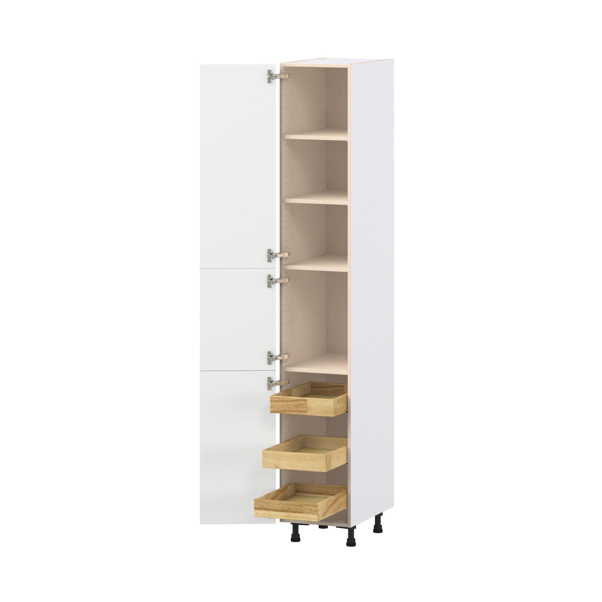 Make a statement with Peachtree premium painted shaker-inspired cabinets, offering both style and durability for years to come. Available in classic bright white and rich midnight blue, this collection is designed to fit seamlessly into both modern and transitional interiors. Crafted from one-piece MDF Studio Design Collection Peachtree 15 in. Painted Bright White Pantry Cabinet with Inner Pull-Out Drawer is designed to resist hairline cracks while the easy-to-clean finish stands up to stains and moisture. Featuring 5-piece doors and dovetail drawer joints, these cabinets offer durability and elegance. This collection combines style with everyday storage solutions.