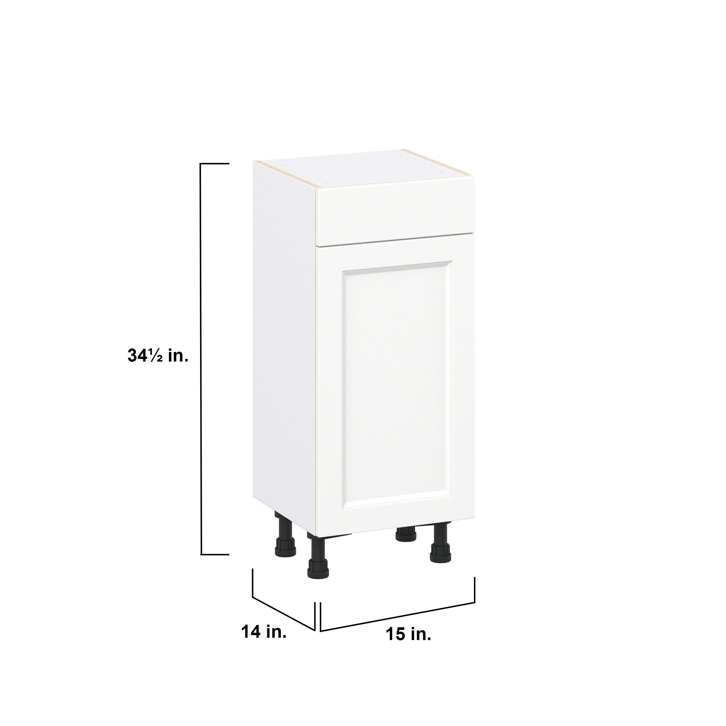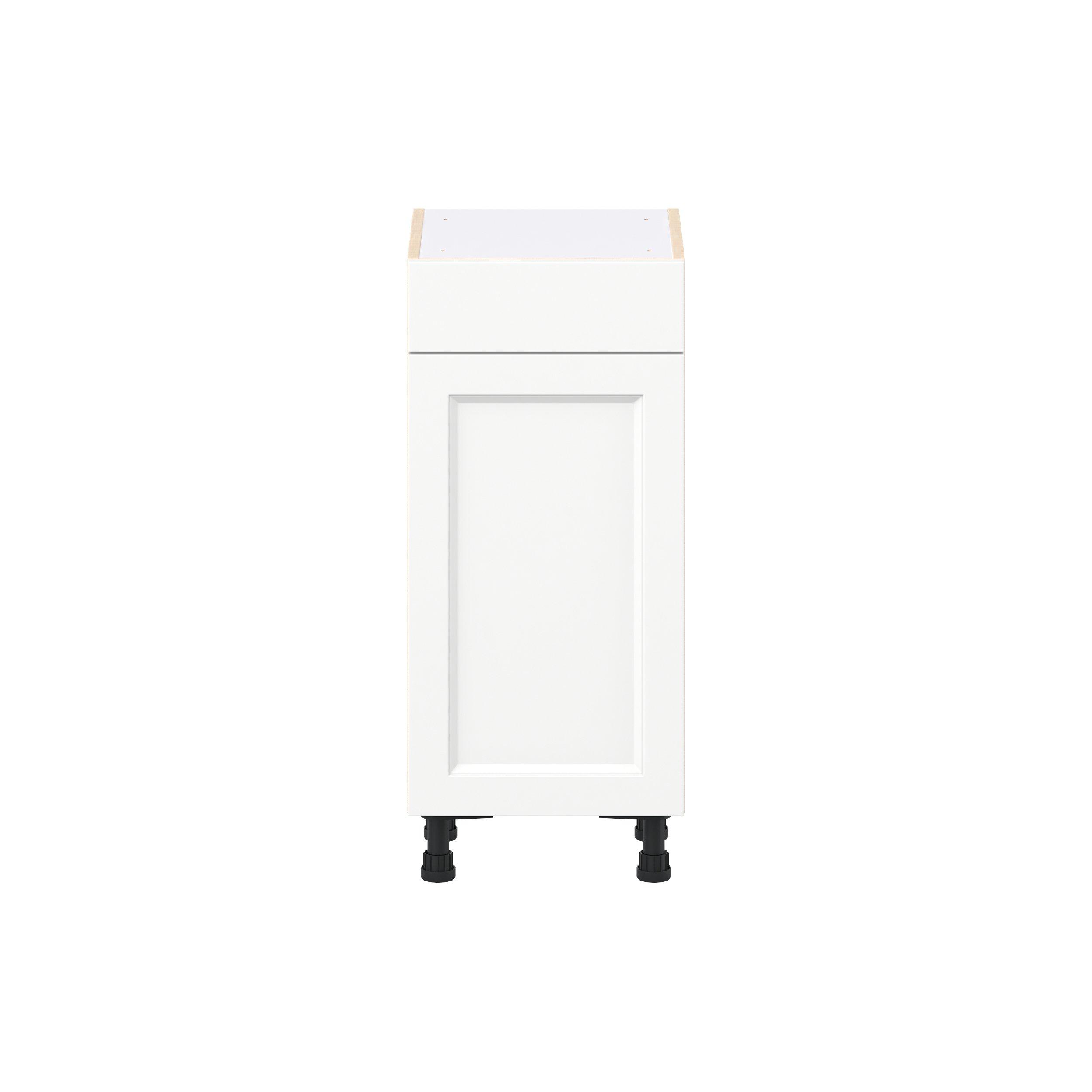 Make a statement with Peachtree premium painted shaker-inspired cabinets, offering both style and durability for years to come. Available in classic bright white and rich midnight blue, this collection is designed to fit seamlessly into both modern and transitional interiors. Crafted from one-piece MDF Studio Design Collection Peachtree 15 in. Painted Bright White Shallow Base Cabinet is designed to resist hairline cracks while the easy-to-clean finish stands up to stains and moisture. Featuring 5-piece doors and dovetail drawer joints, these cabinets offer durability and elegance. This collection combines style with everyday storage solutions.