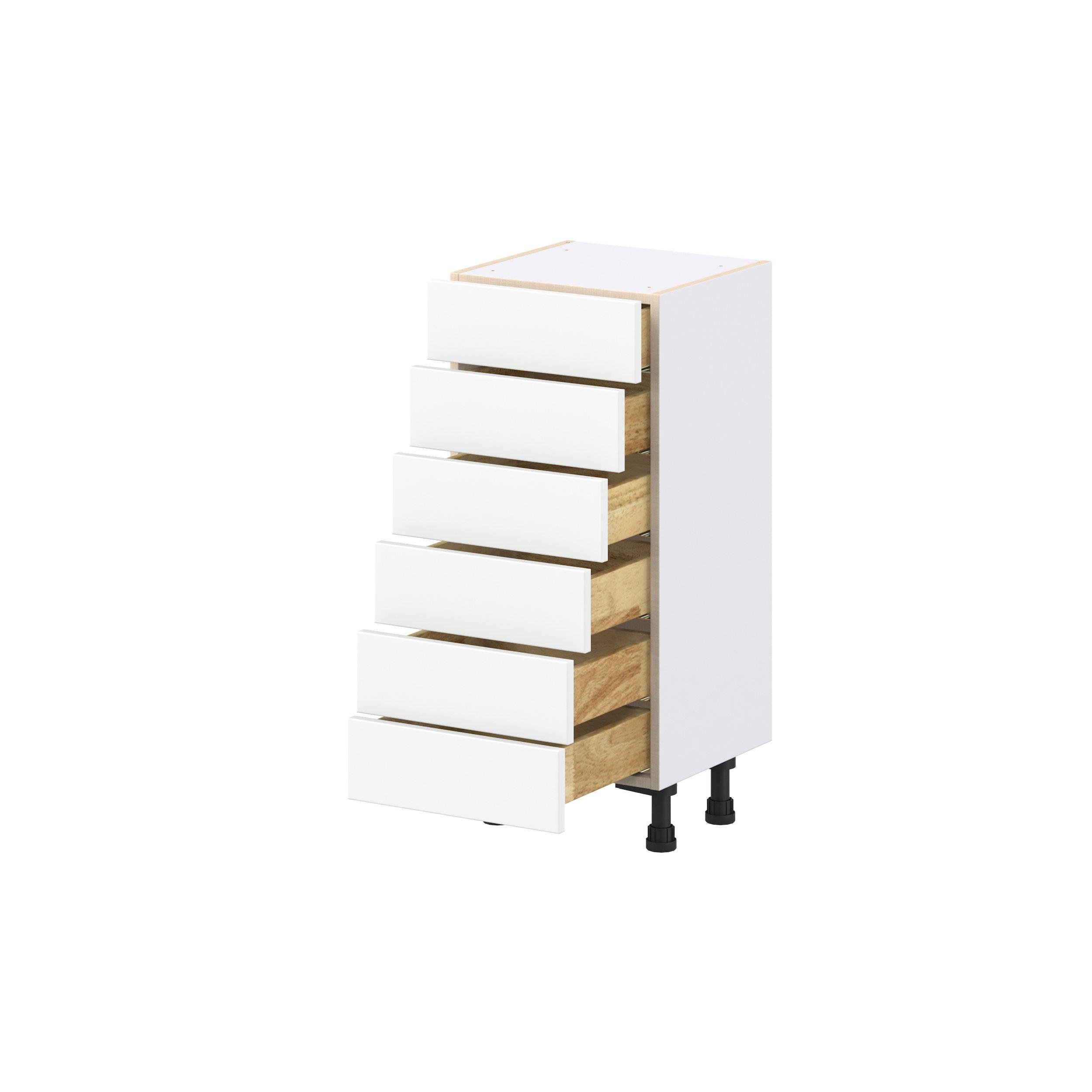 Make a statement with Peachtree premium painted shaker-inspired cabinets, offering both style and durability for years to come. Available in classic bright white and rich midnight blue, this collection is designed to fit seamlessly into both modern and transitional interiors. Crafted from one-piece MDF Studio Design Collection Peachtree 15 in. Painted Bright White Shallow Base Cabinet is designed to resist hairline cracks while the easy-to-clean finish stands up to stains and moisture. Featuring 5-piece doors and dovetail drawer joints, these cabinets offer durability and elegance. This collection combines style with everyday storage solutions.