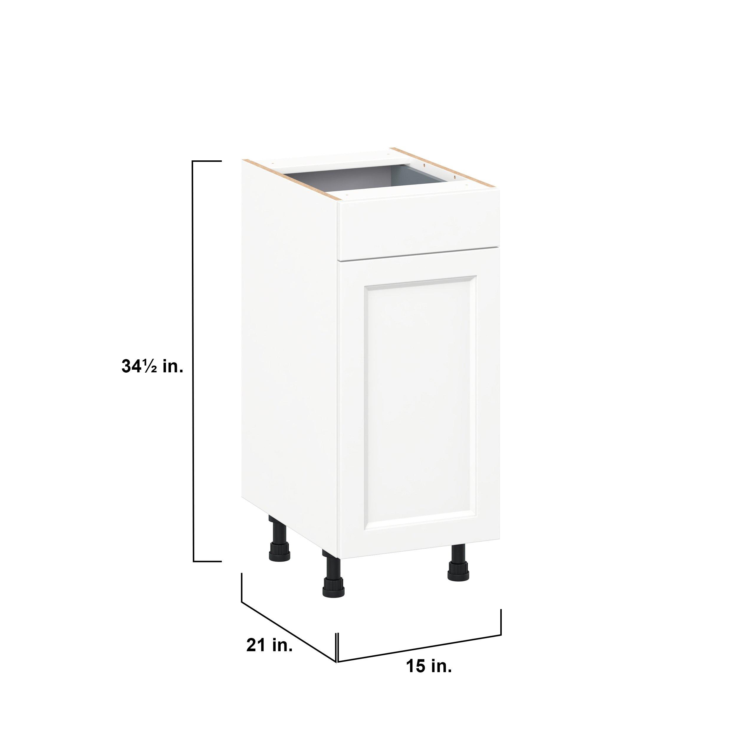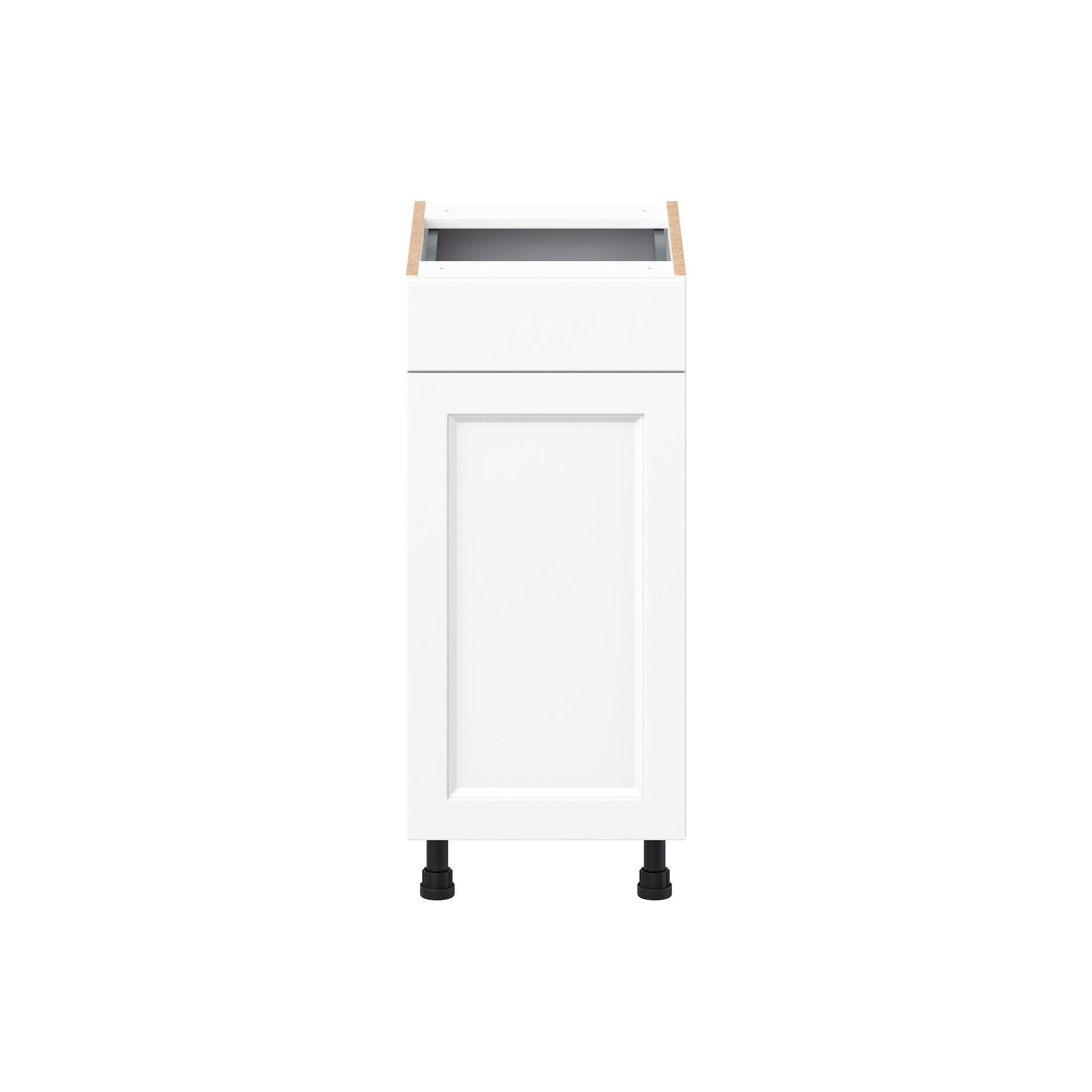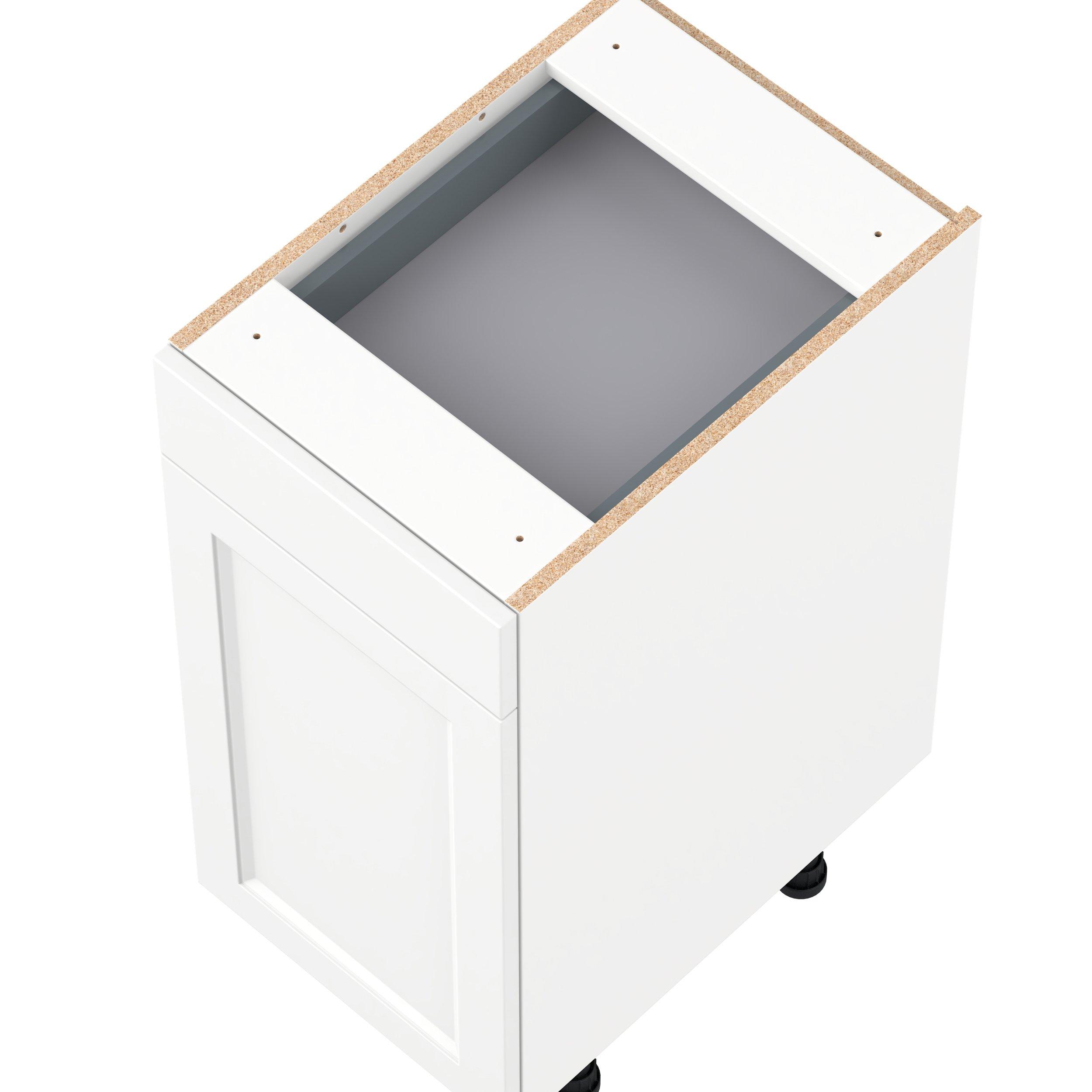 Make a statement with Peachtree premium painted shaker-inspired cabinets, offering both style and durability for years to come. Available in classic bright white and rich midnight blue, this collection is designed to fit seamlessly into both modern and transitional interiors. Crafted from one-piece MDF Studio Design Collection Peachtree 15 in. Painted Bright White Vanity Door and Drawer Base Cabinet is designed to resist hairline cracks while the easy-to-clean finish stands up to stains and moisture. Featuring 5-piece doors and dovetail drawer joints, these cabinets offer durability and elegance. This collection combines style with everyday storage solutions.