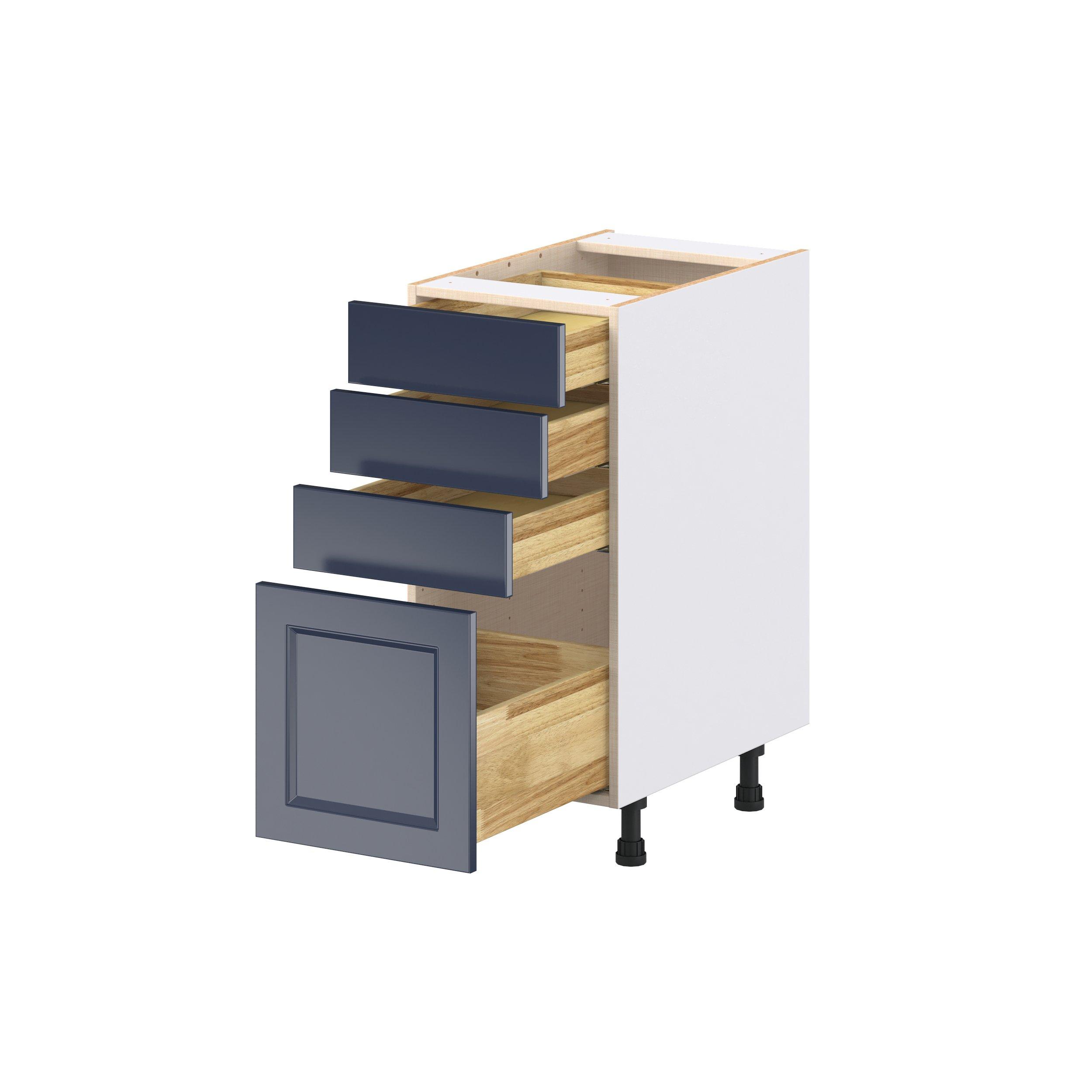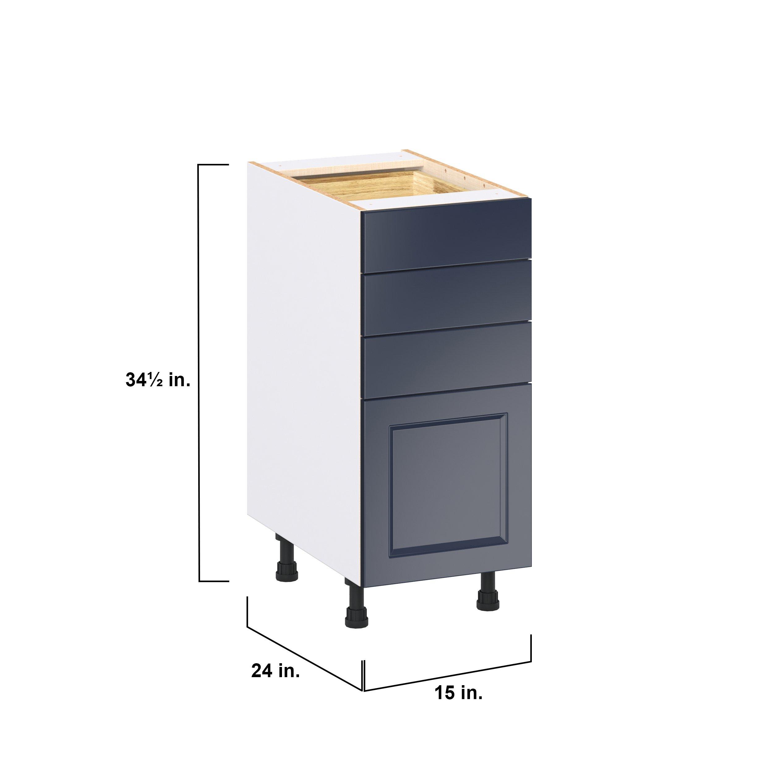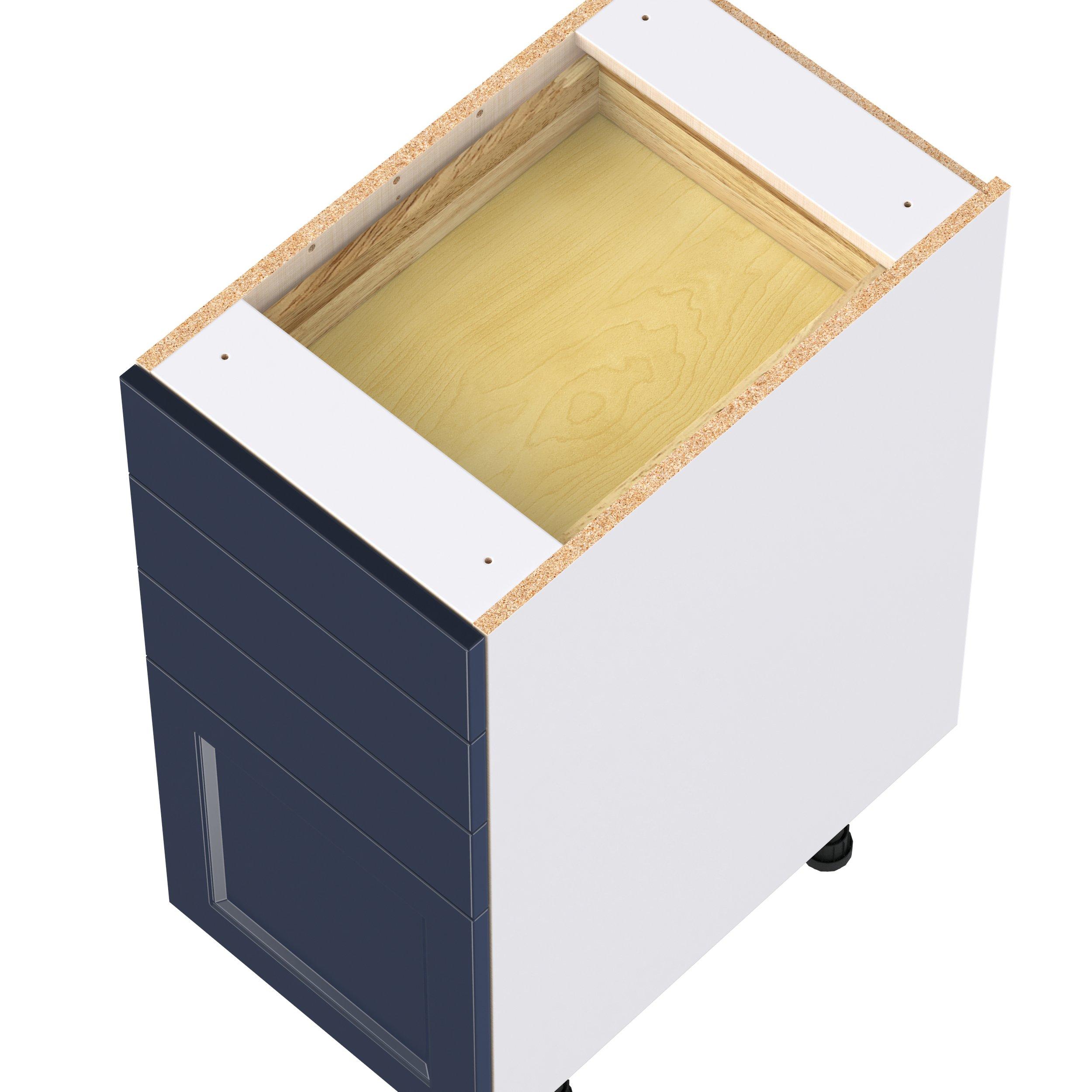 Make a statement with Peachtree premium painted shaker-inspired cabinets, offering both style and durability for years to come. Available in classic bright white and rich midnight blue, this collection is designed to fit seamlessly into both modern and transitional interiors. Crafted from one-piece MDF Studio Design Collection Peachtree 15 in. Painted Midnight Blue Drawer Base Cabinet is designed to resist hairline cracks while the easy-to-clean finish stands up to stains and moisture. Featuring 5-piece doors and dovetail drawer joints, these cabinets offer durability and elegance. This collection combines style with everyday storage solutions.