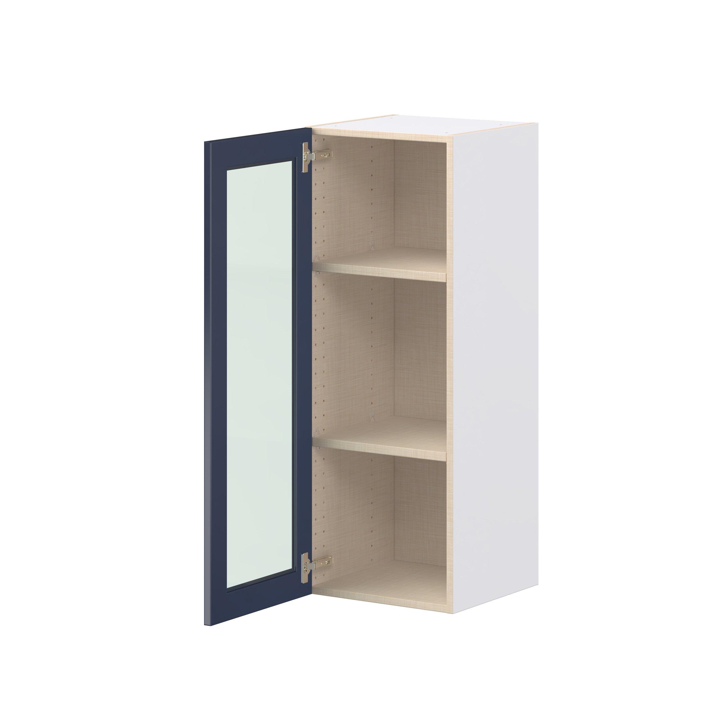 Make a statement with Peachtree premium painted shaker-inspired cabinets, offering both style and durability for years to come. Available in classic bright white and rich midnight blue, this collection is designed to fit seamlessly into both modern and transitional interiors. Crafted from one-piece MDF Studio Design Collection Peachtree 15 in. Painted Midnight Blue Wall Cabinet with Glass Door is designed to resist hairline cracks while the easy-to-clean finish stands up to stains and moisture. Featuring 5-piece doors and dovetail drawer joints, these cabinets offer durability and elegance. This collection combines style with everyday storage solutions.